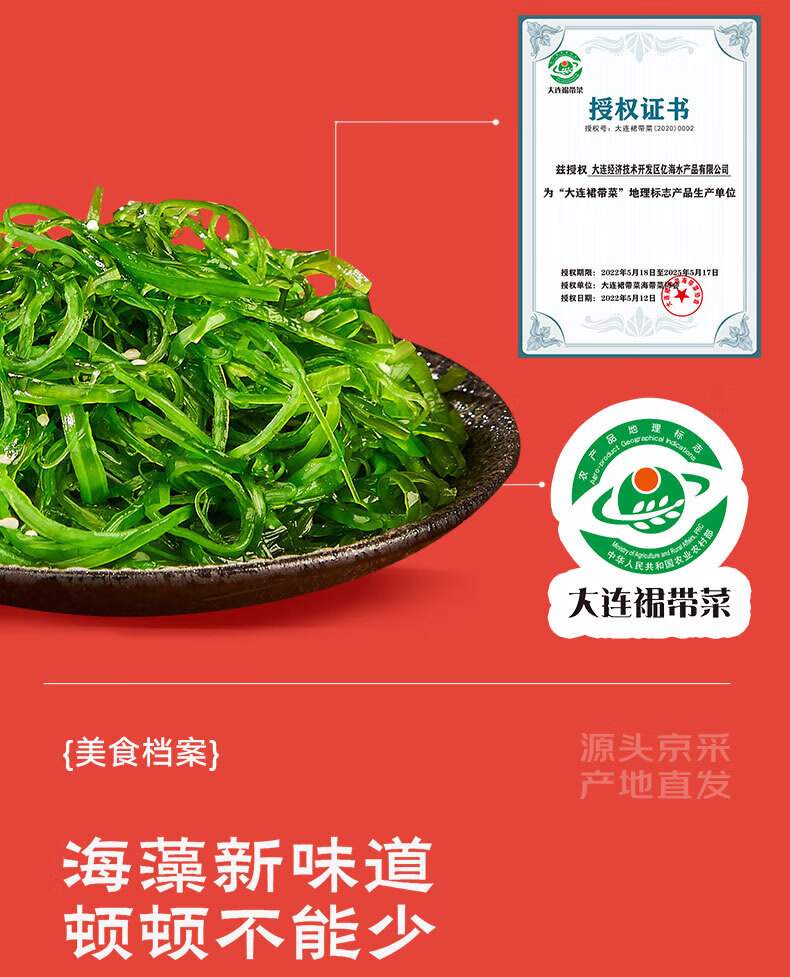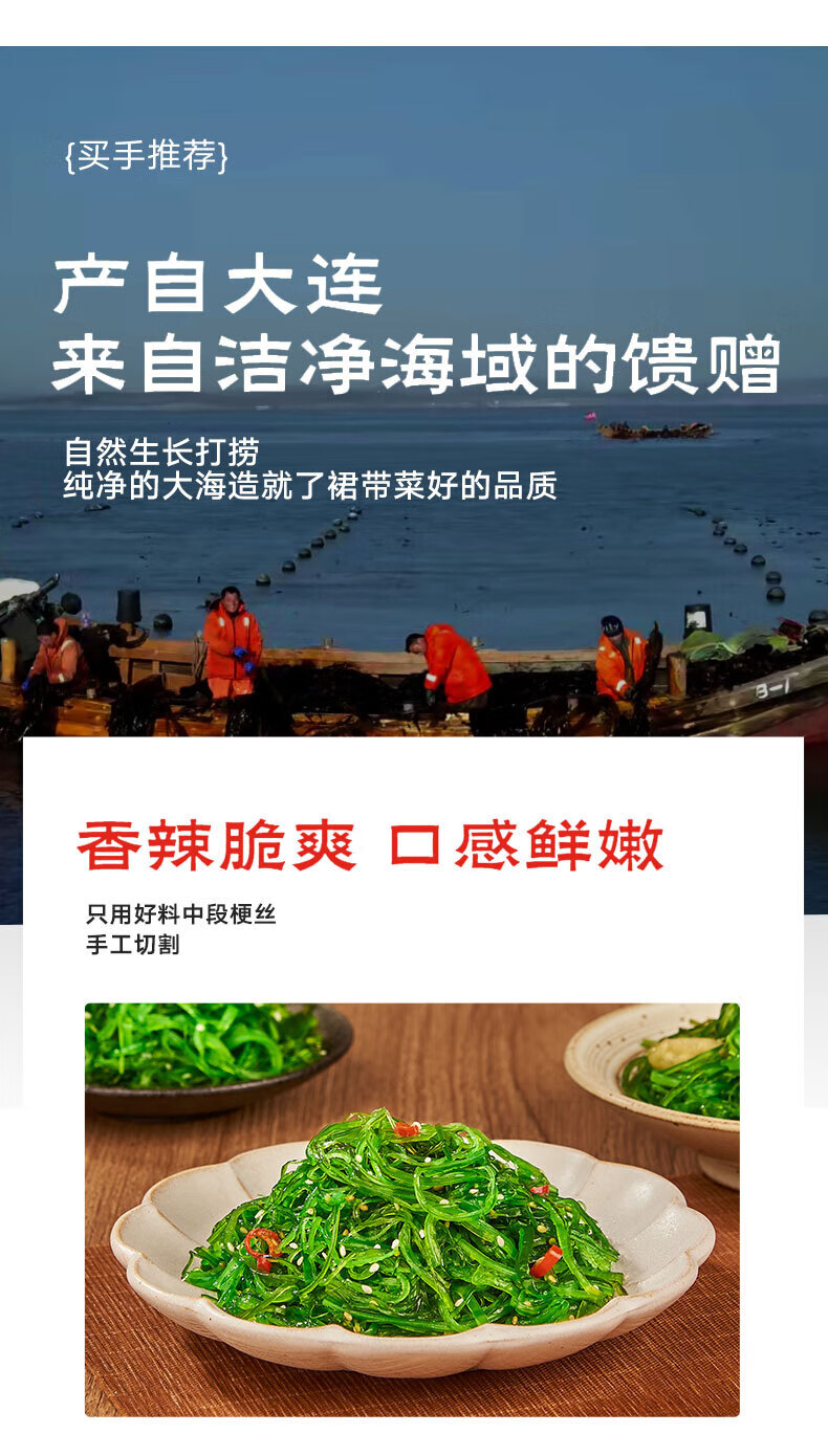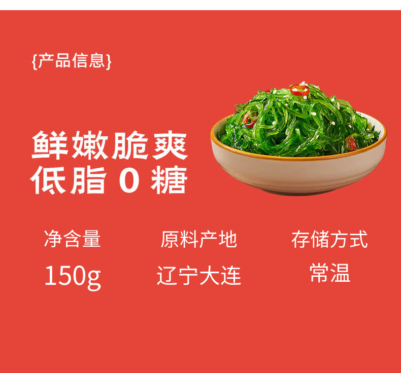 即食裙带菜 大连海藻沙拉海白菜海草 酸甜味裙带菜丝 150g*5袋