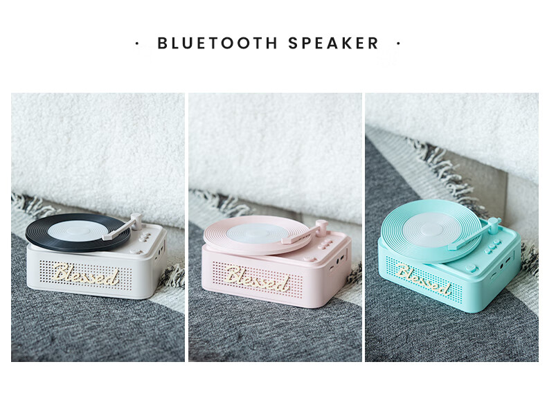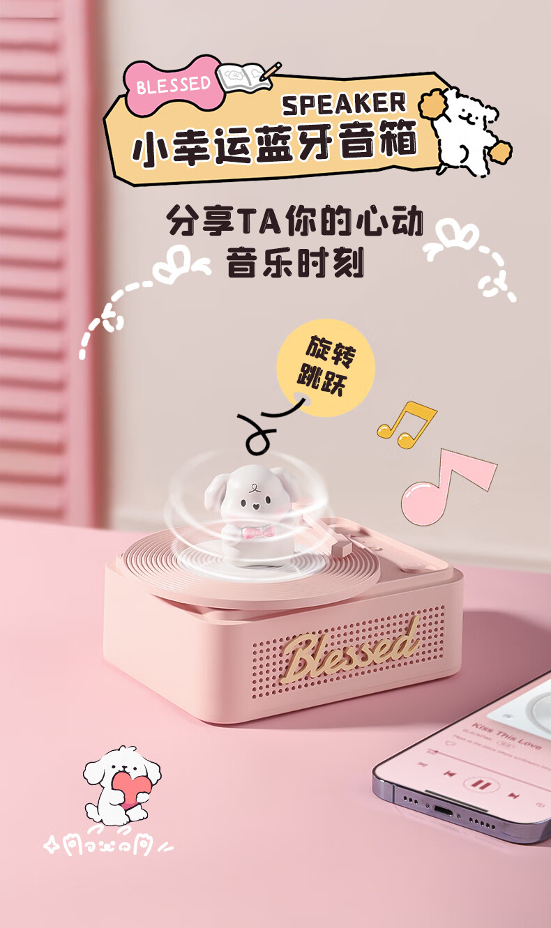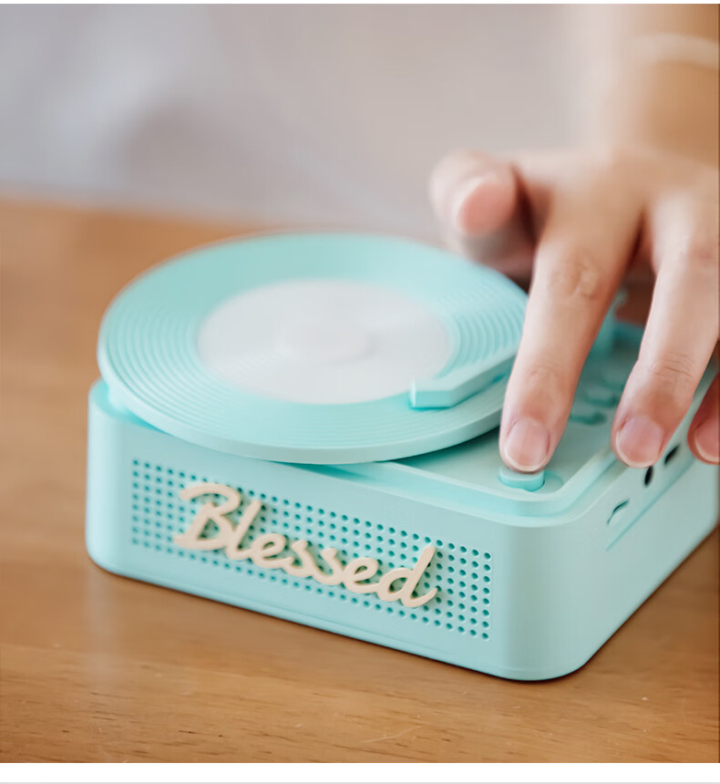参趣小幸运蓝牙音箱无线黑胶唱片机小音响蓝牙5.3家用桌面可插卡氛围灯音箱学生日圣诞礼物送男生女友 蓝音律【旋转碟盘+氛围灯光】