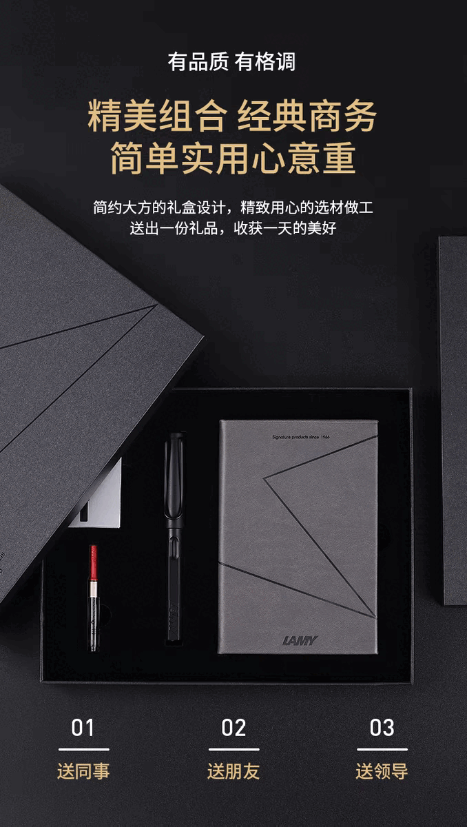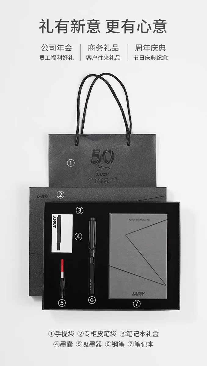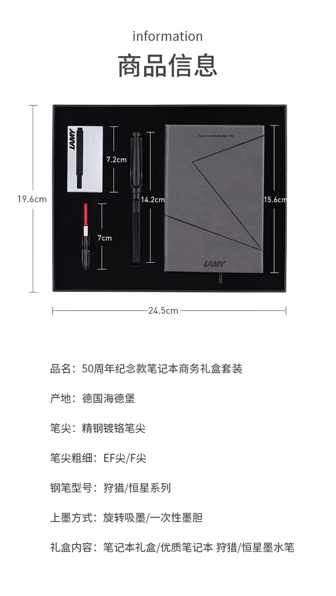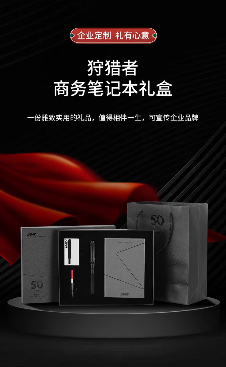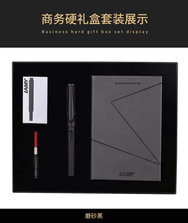 LAMY Deutscher echter Lingmei-Füllfederhalter Hunter Business-Notizbuch, High-End-Geschenkbox, Geschenk für Unternehmen, individuelles Geschenk, mattschwarz, EF-Spitze 0,5 mm – (High-End-Notizbuch-Geschenkbox)