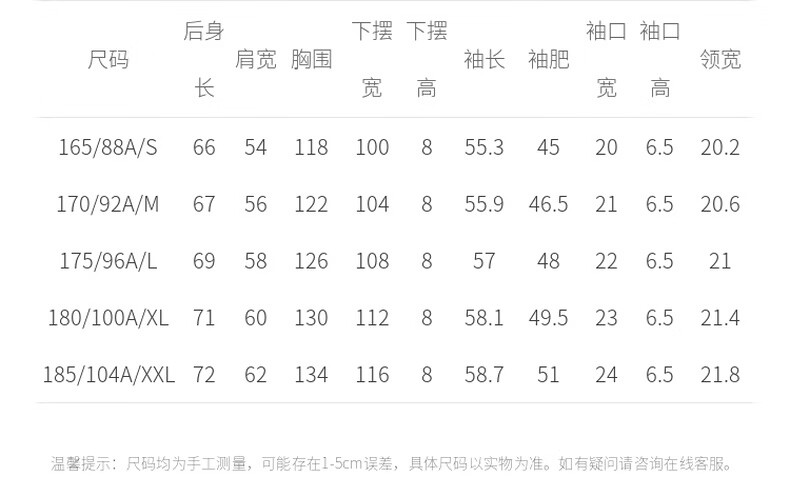 China (cm) 165 / 88-90 170 / 96-98 175 / 108-110 180 / 118-122 185 / 126-130