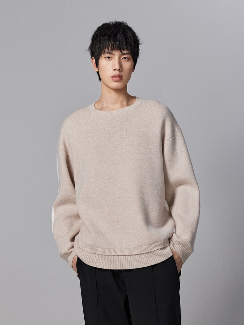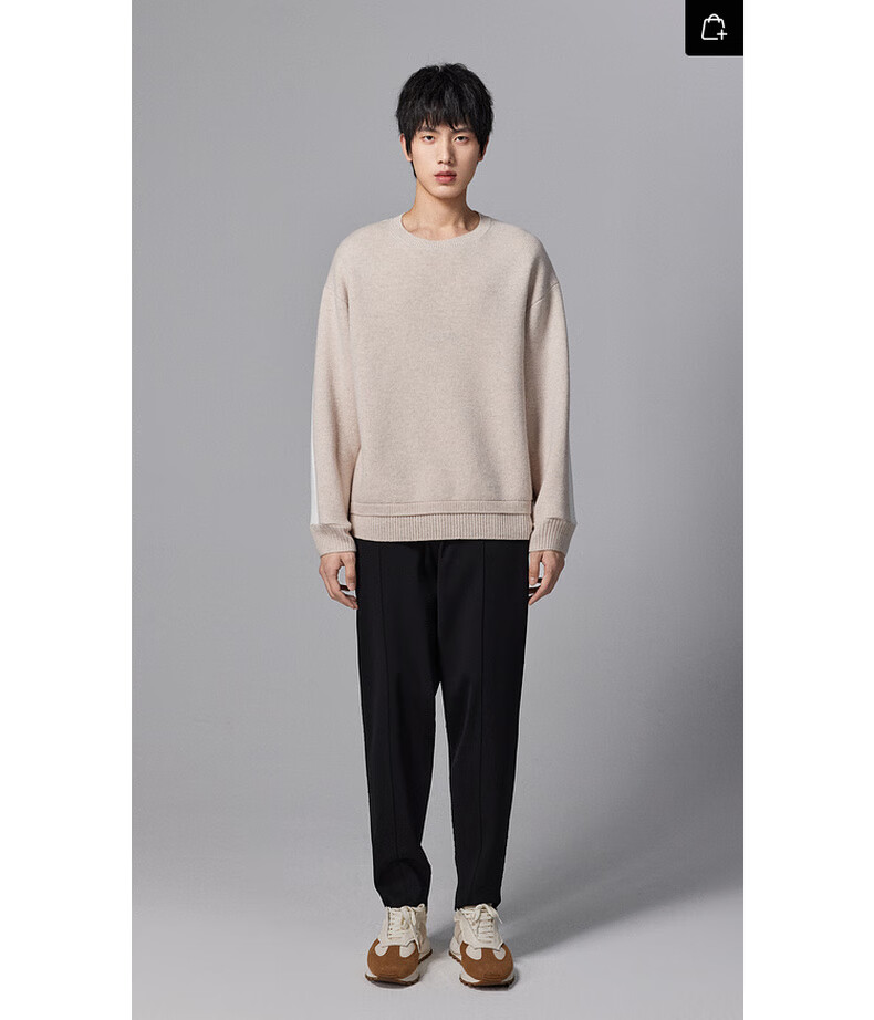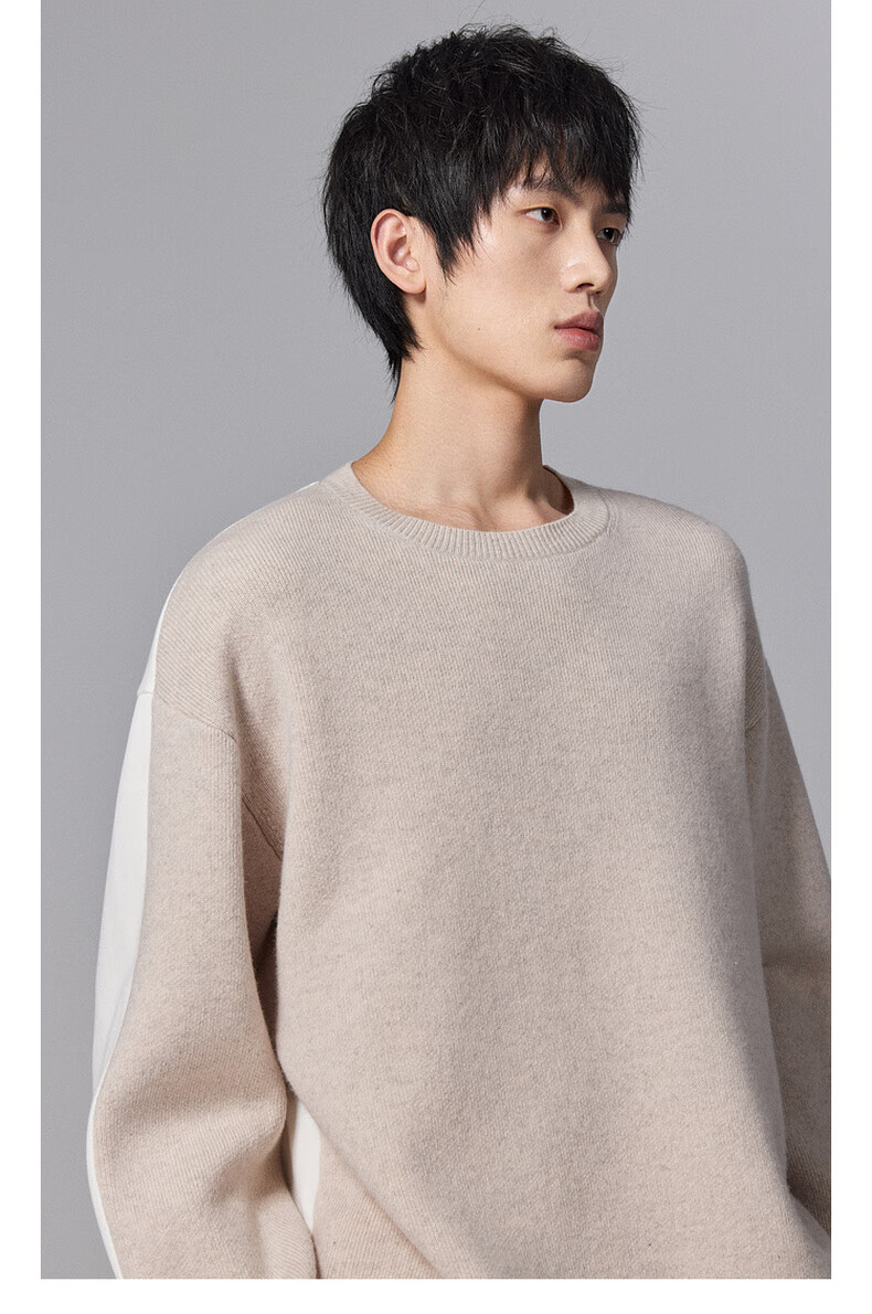 Mai Meng MM Mai Meng Men's Autumn and Winter New Sheep Wool Loose Round Neck Pullover Cardigan Sweater 9EA130392 Rice Camel M