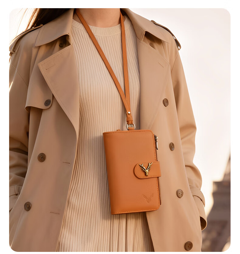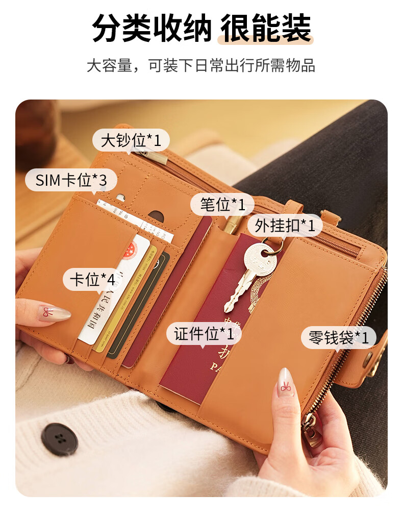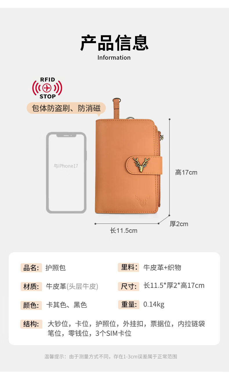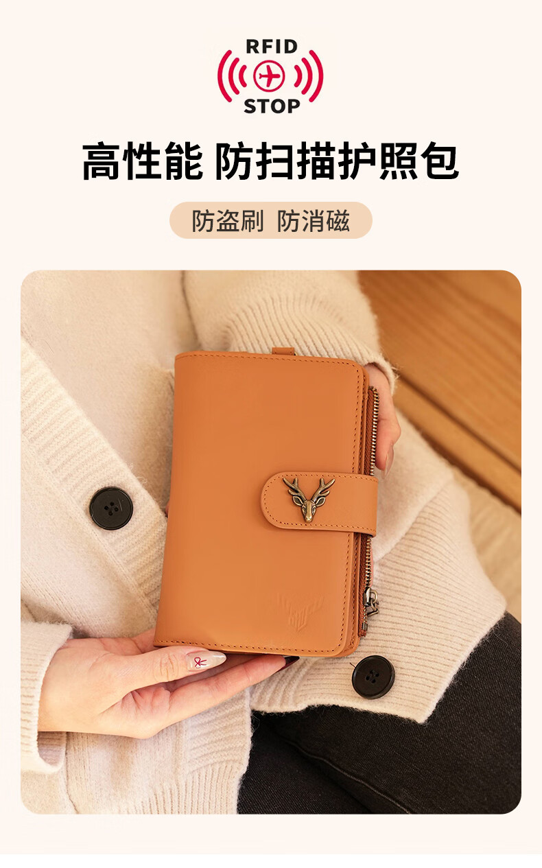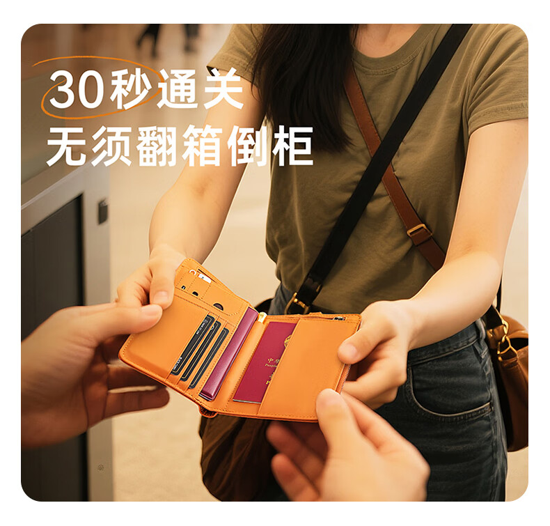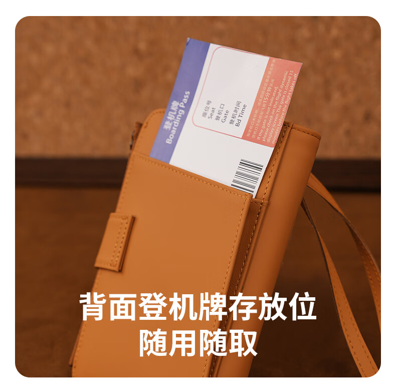OTA防盗刷护照包2025新款出国留学旅行便携机票夹证件钱包多功能卡包 日落黄-送挂绳【真皮护照包】