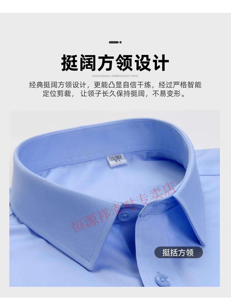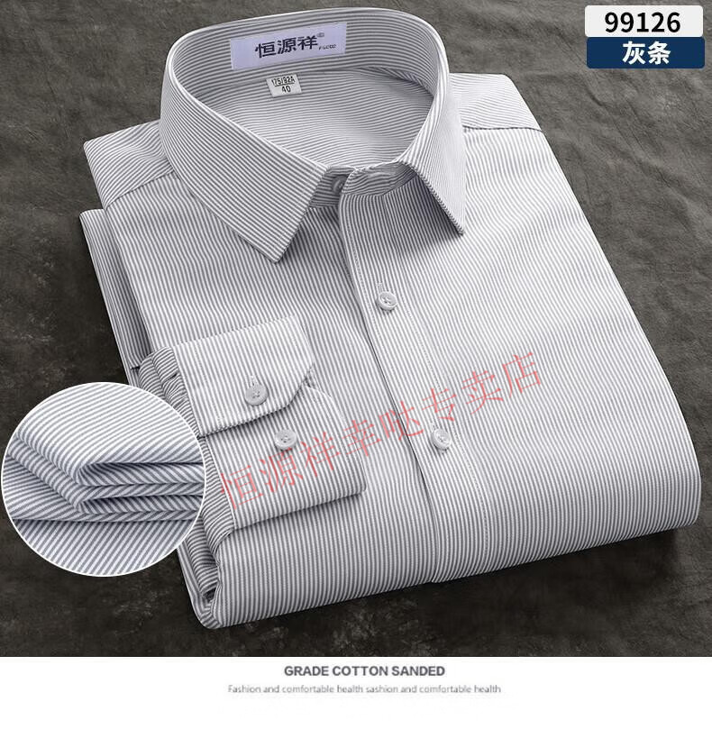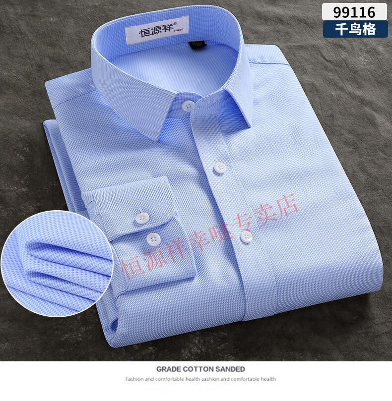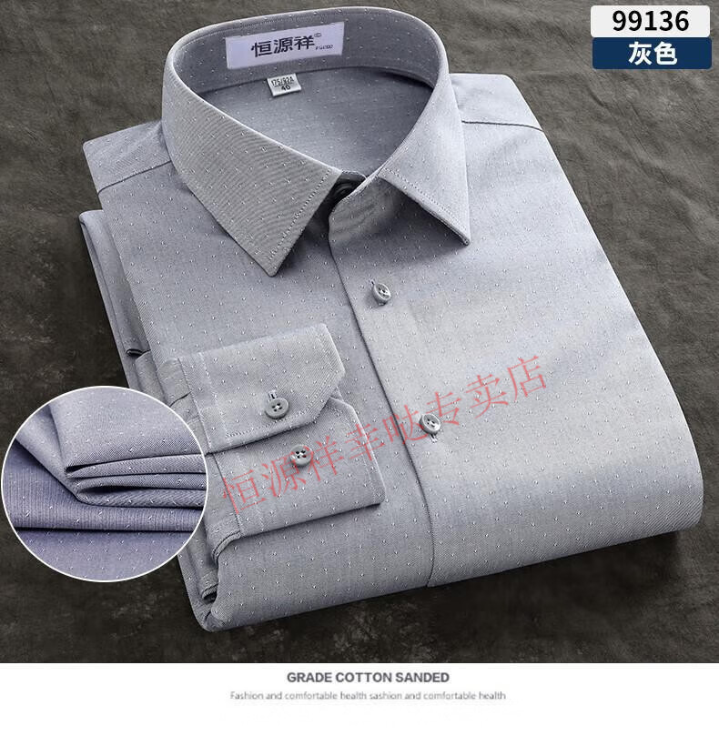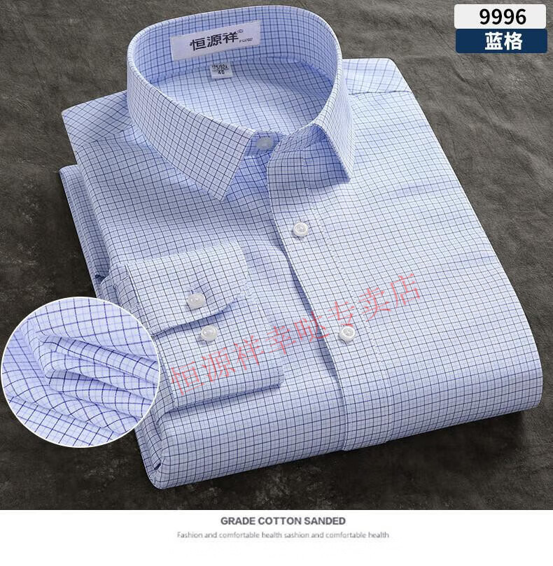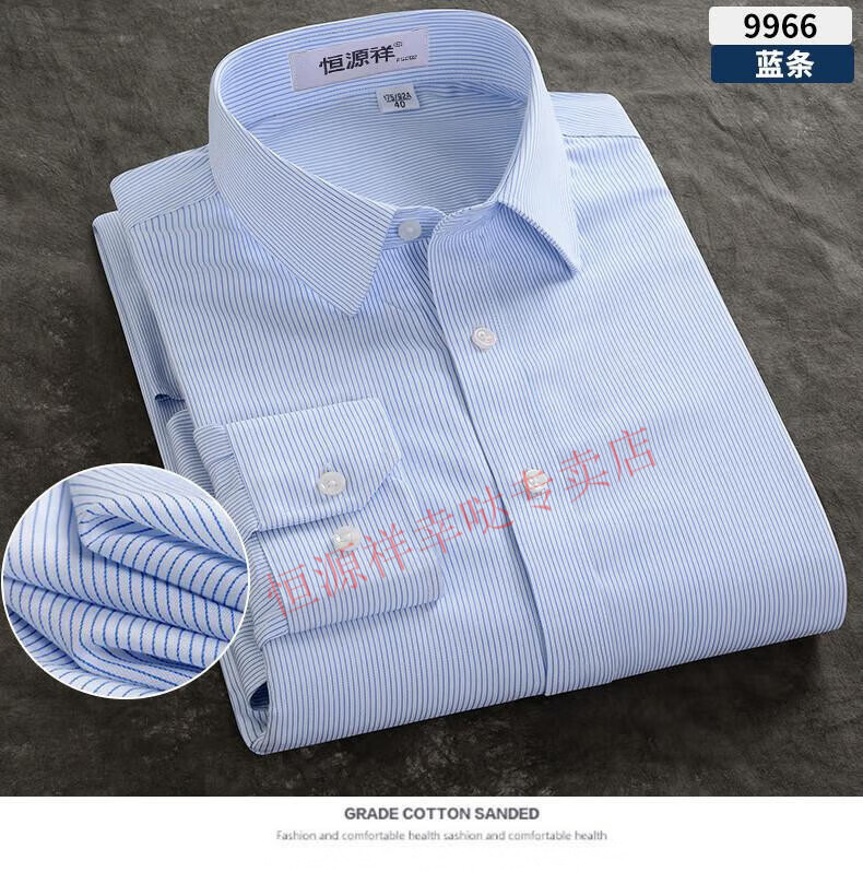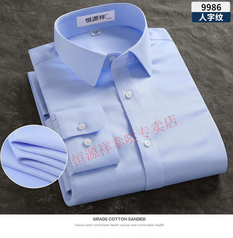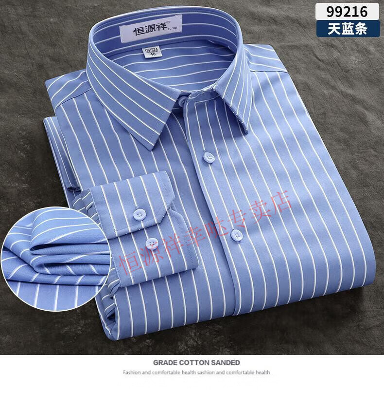 恒源祥DP成衣免烫男士长袖淡蓝色衬衫春秋季纯色棉长袖商务正装衬衣男装 【长 袖】6613 蓝色平纹 纯全新100% 40 高档品牌男装