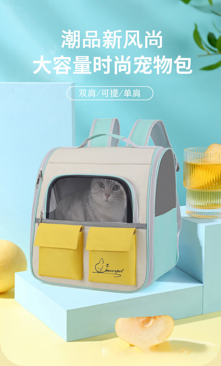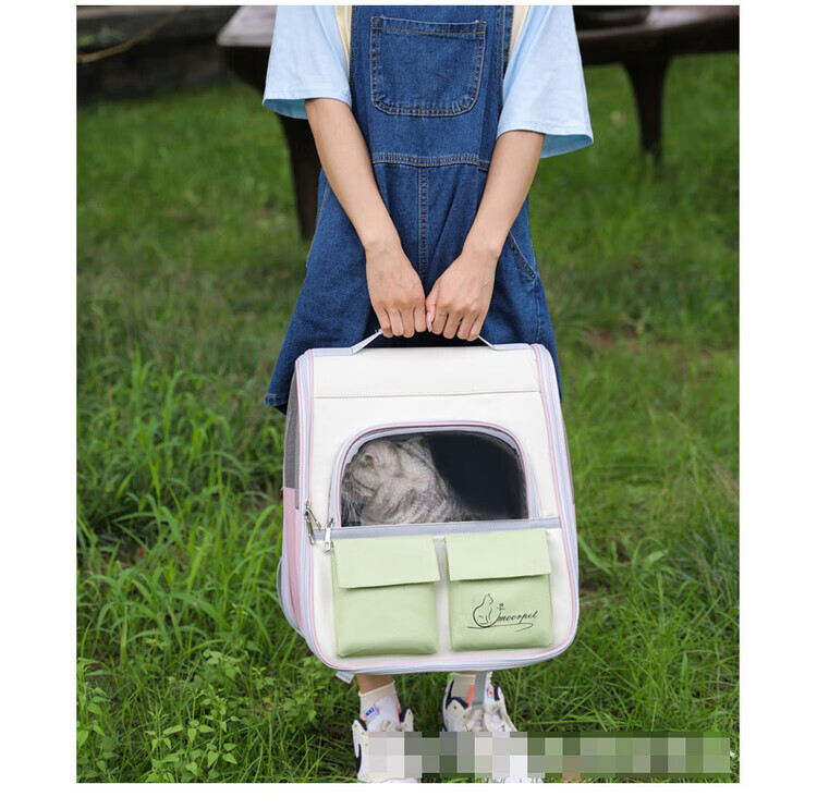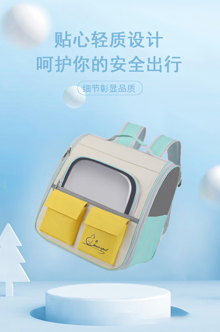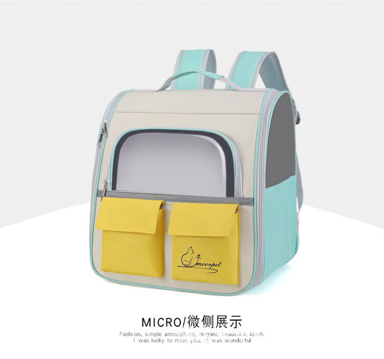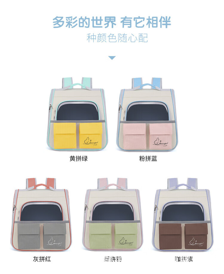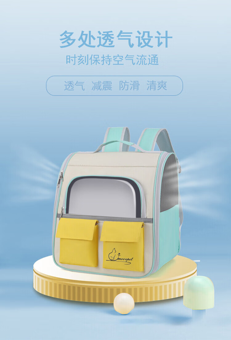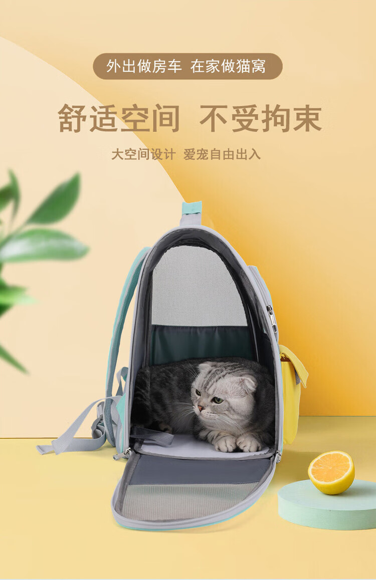 猫包双肩太空包外出便携背包高颜值手提小狗狗透气舒适猫咪宠物包 粉拼蓝