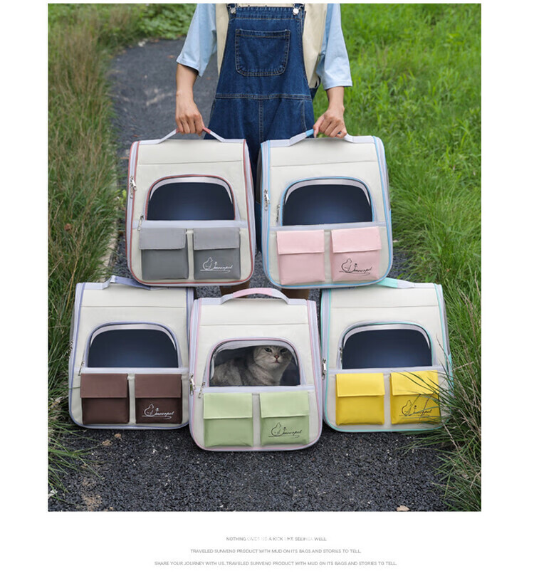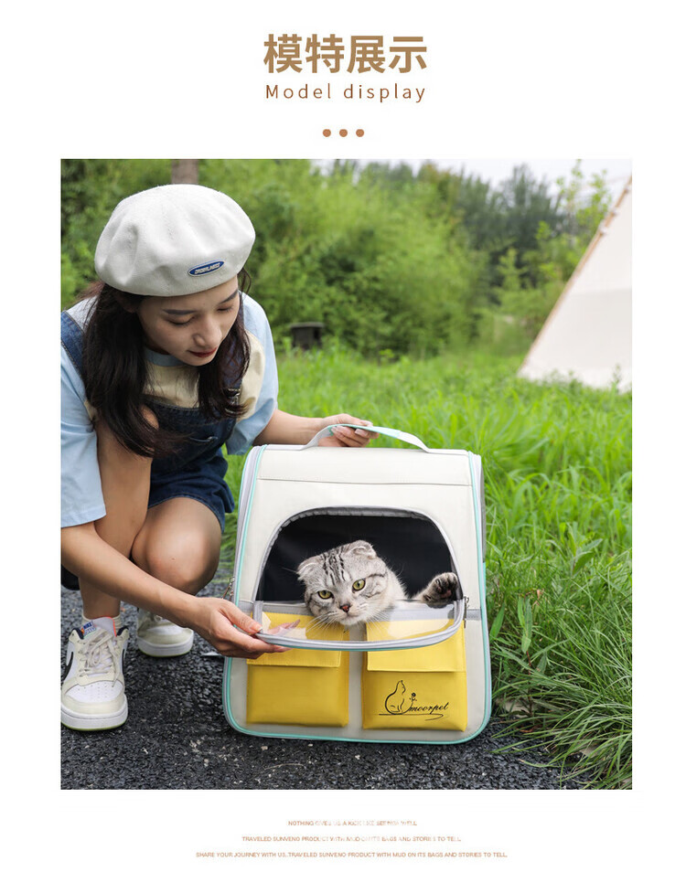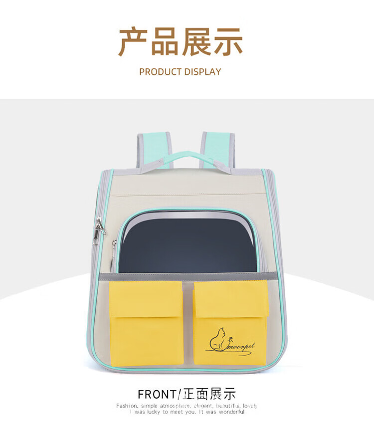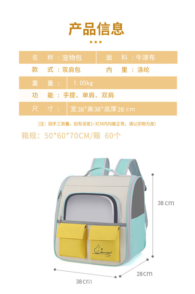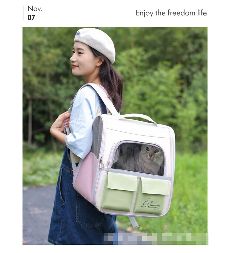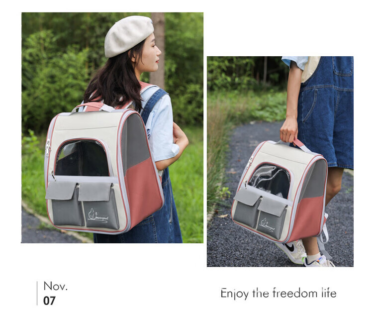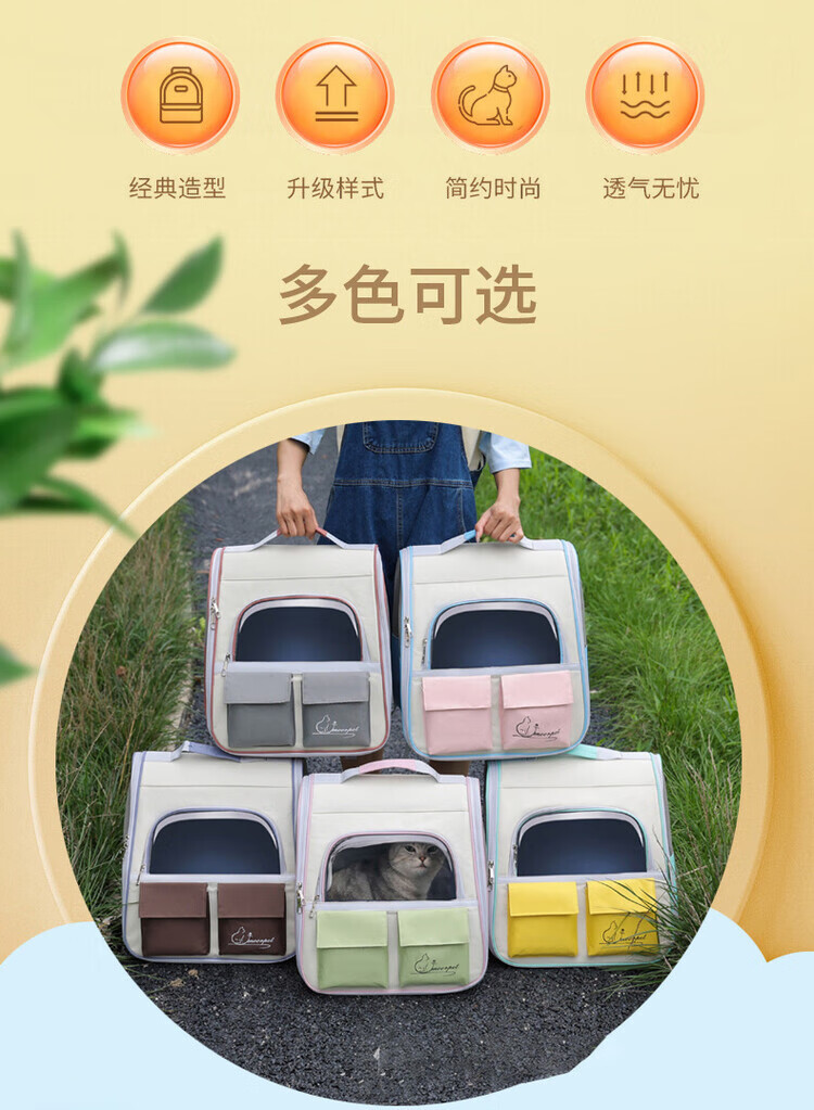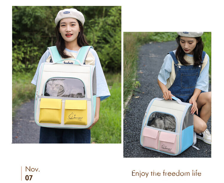 猫包双肩太空包外出便携背包高颜值手提小狗狗透气舒适猫咪宠物包 粉拼蓝