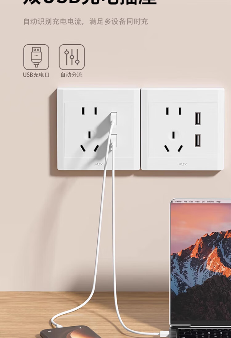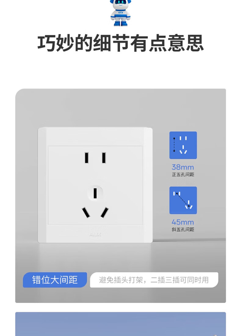 Oaks switch socket misaligned 5-hole socket panel wall two or three plug power supply household oblique five-hole 10A 86 type concealed positive five-hole socket white
