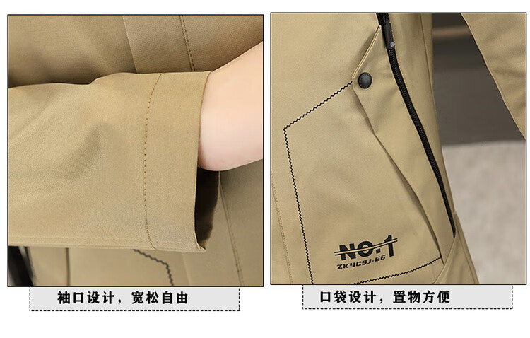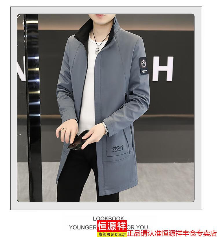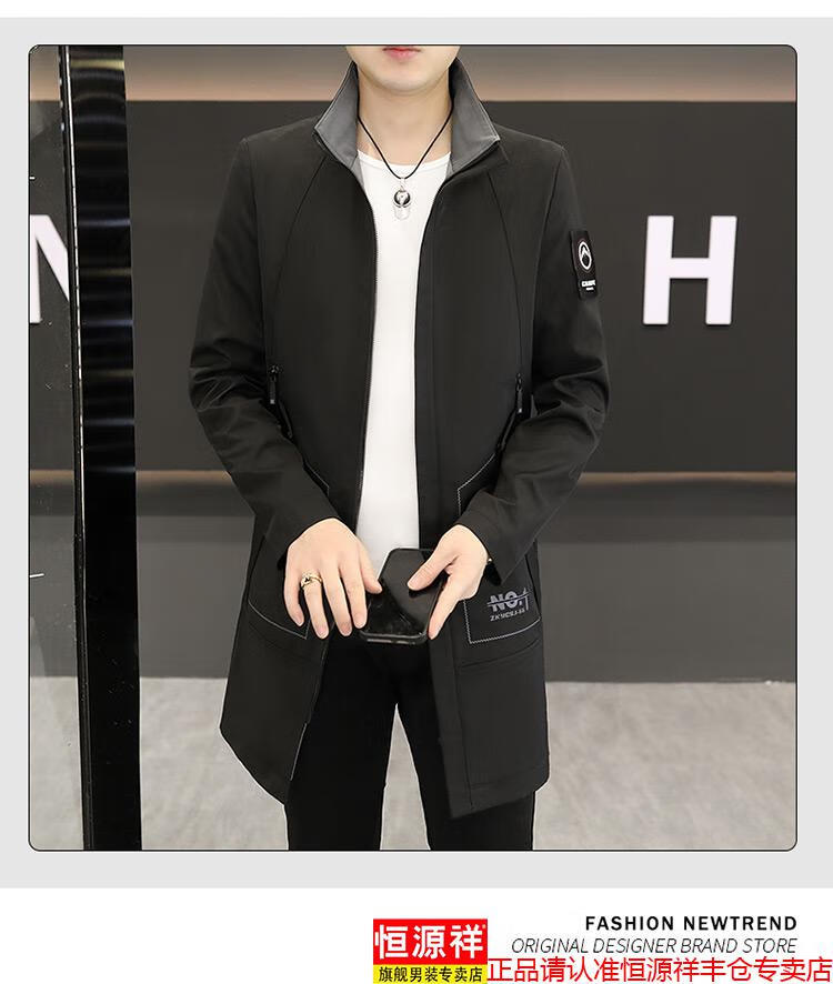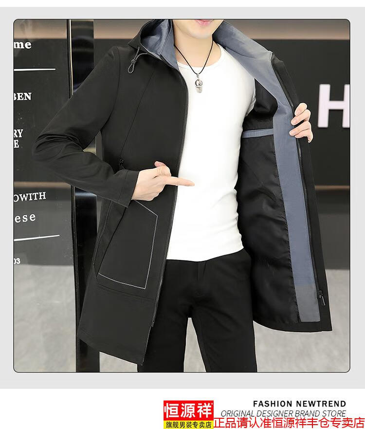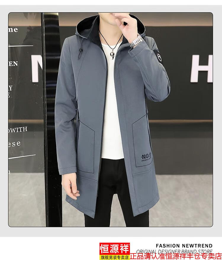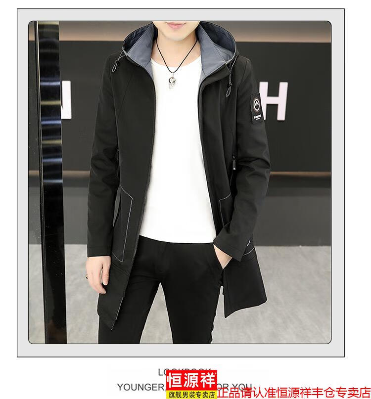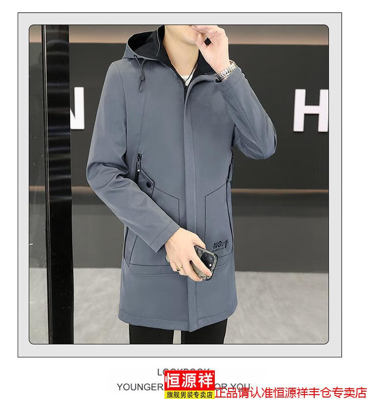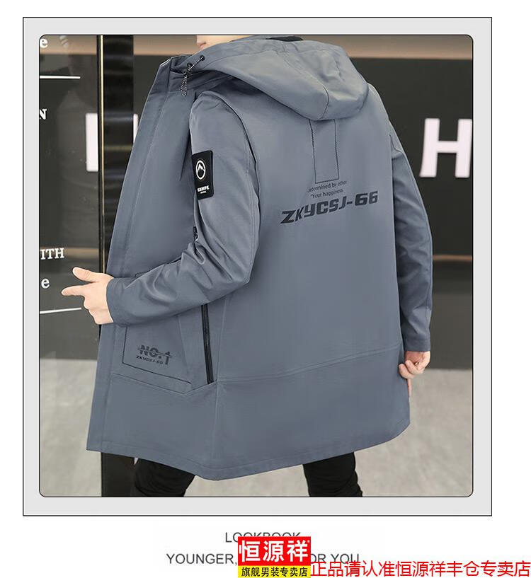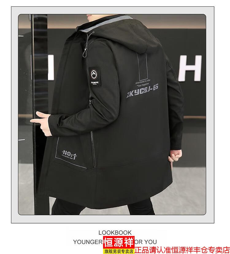 恒源祥春秋季中长款可卸帽风衣男士韩版潮流百搭夹克外套大码男装上衣服 卡其色 M 建议92到103斤