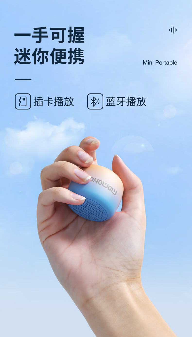 momoho 蓝牙小音响户外大音量迷你便携音箱可插卡小型跑步运动瑜伽白噪音学生学习随身听力播放器 【旗舰版】黑色 官方标配(音箱+挂绳)