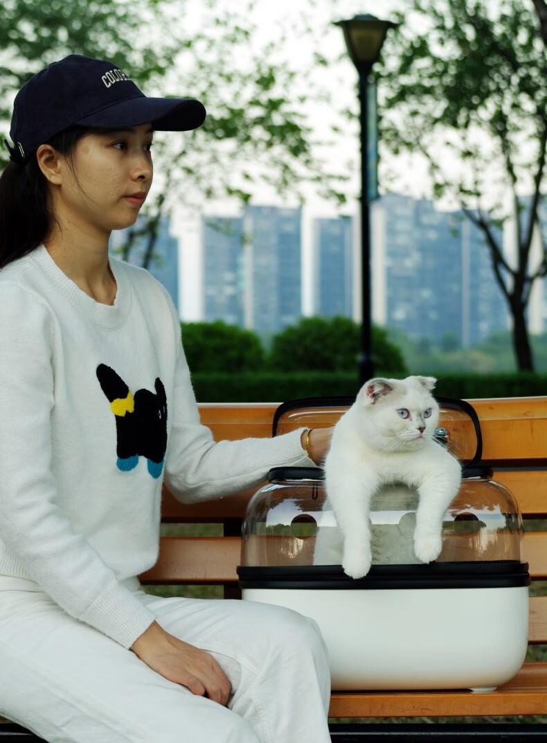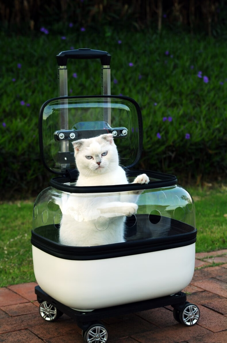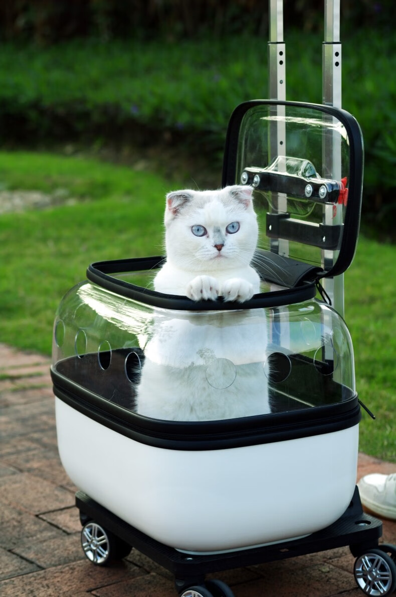迷你龙猫包外出便携宠物拉杆箱双层巴士行李箱两只猫咪大容量透气猫背包 单层拼接白+拉杆(可拆卸) 下层15斤内/上层15斤内/狗6斤内