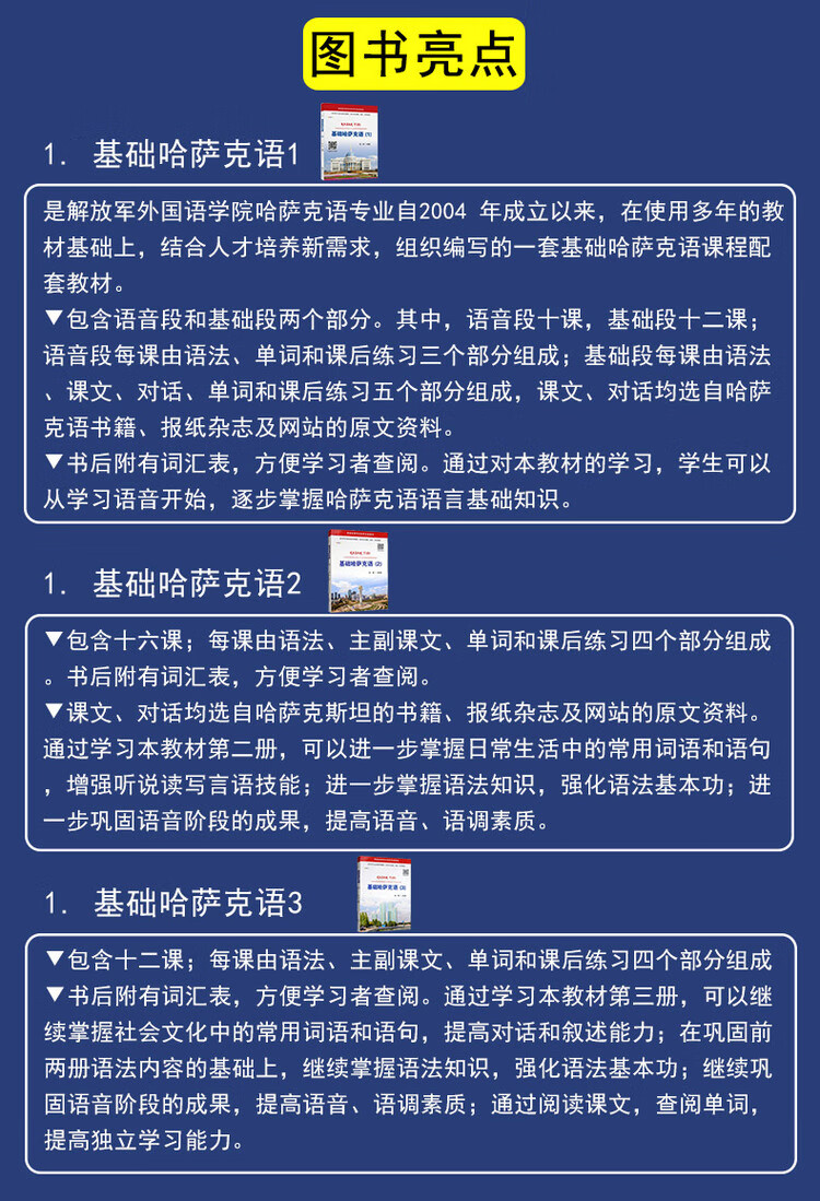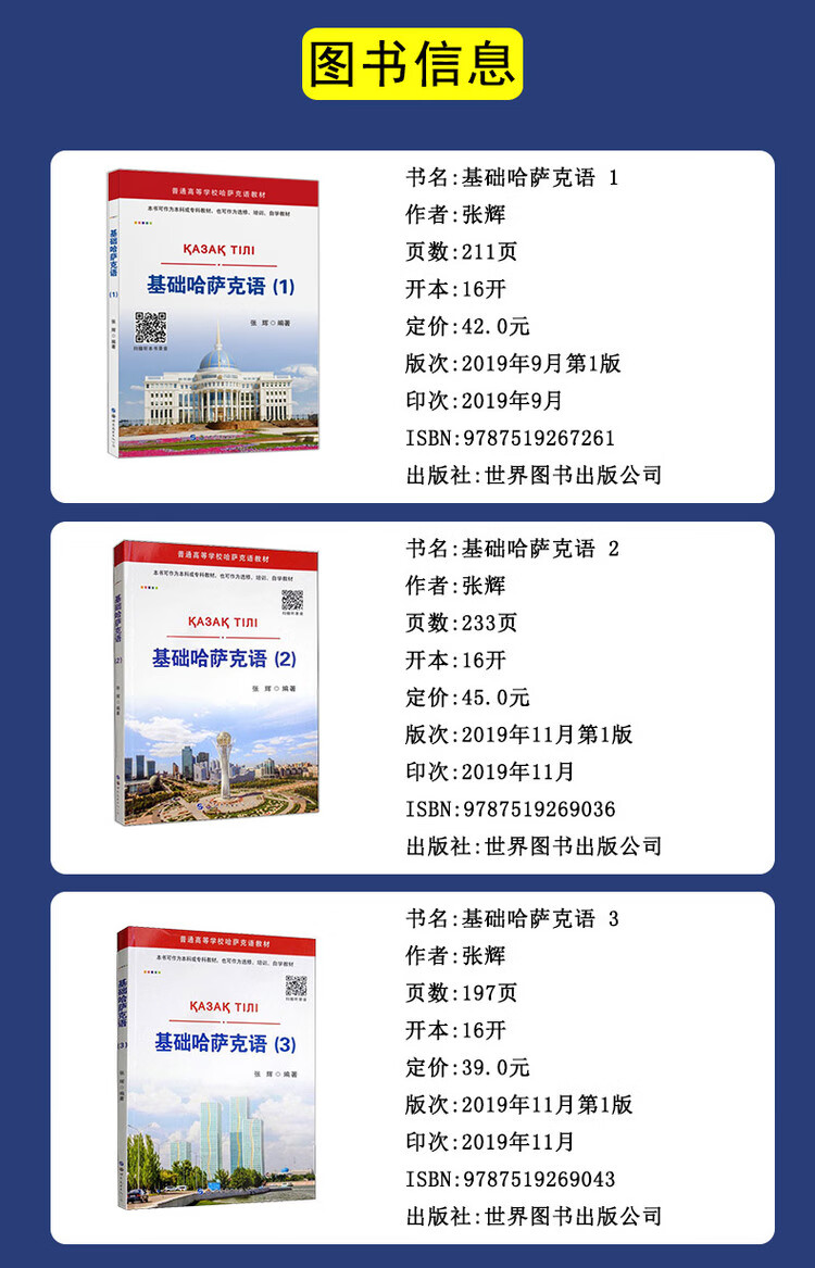 Kazajo básico 123, tres volúmenes con audio de apoyo, Zhang Hui recopiló libros de texto universitarios en kazajo, tutoriales introductorios de autoaprendizaje, capacitación para principiantes de base cero, libros en idiomas extranjeros en idiomas pequeños, genuina World Book Publishing Company, Book Publishing Company