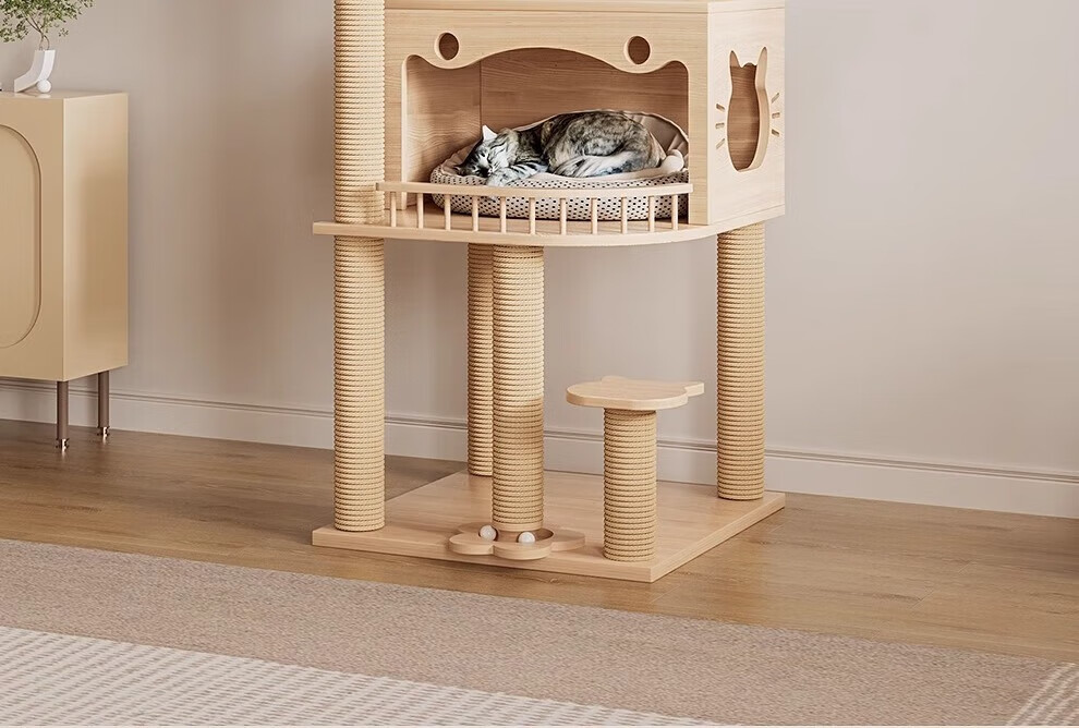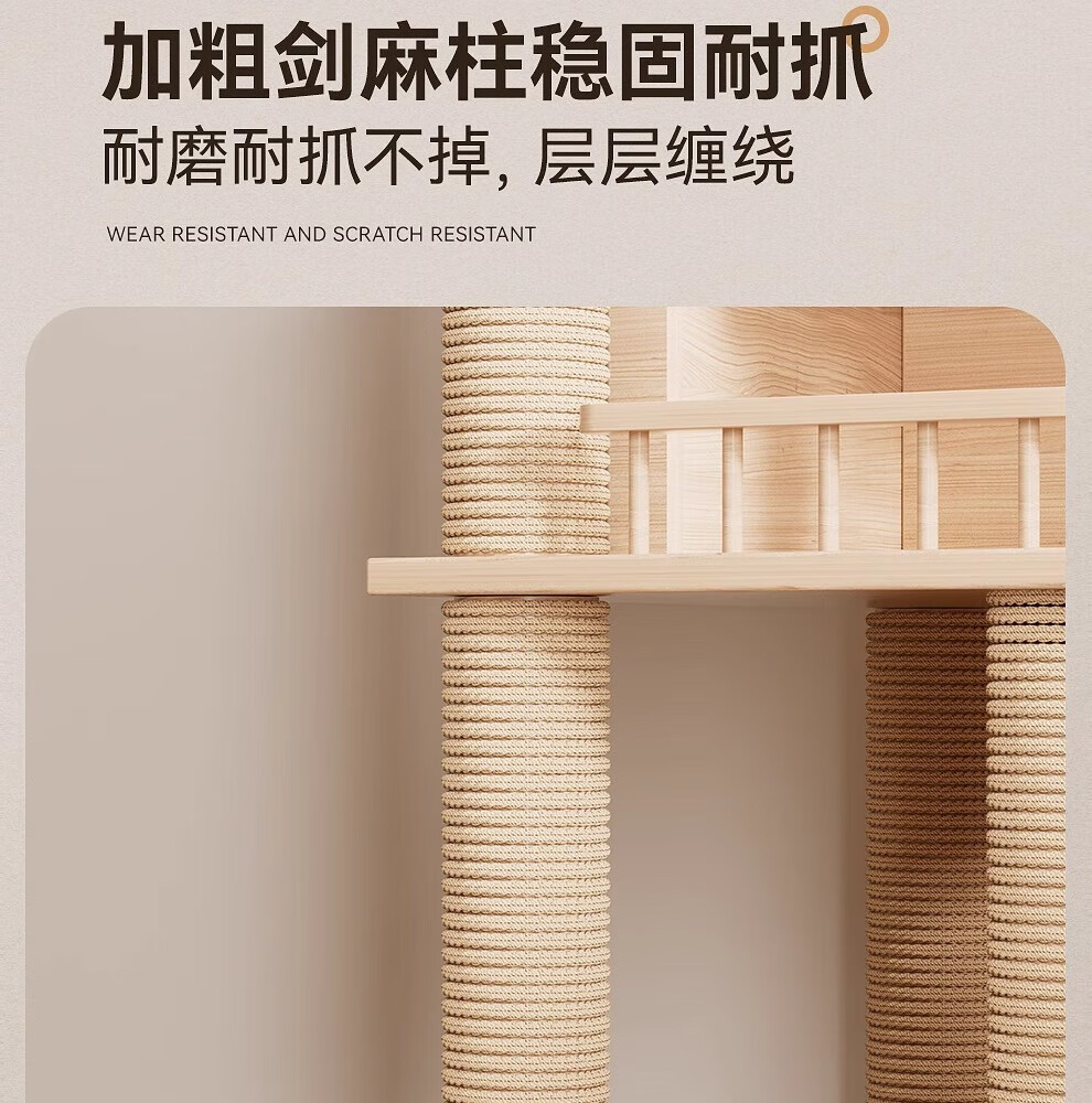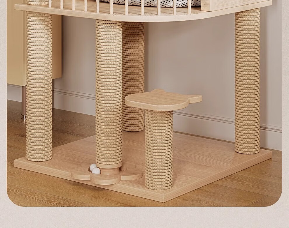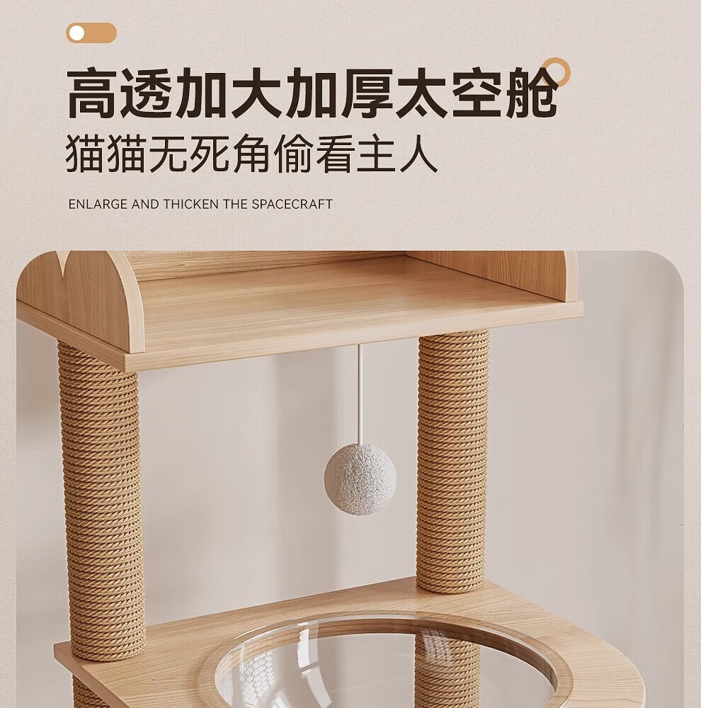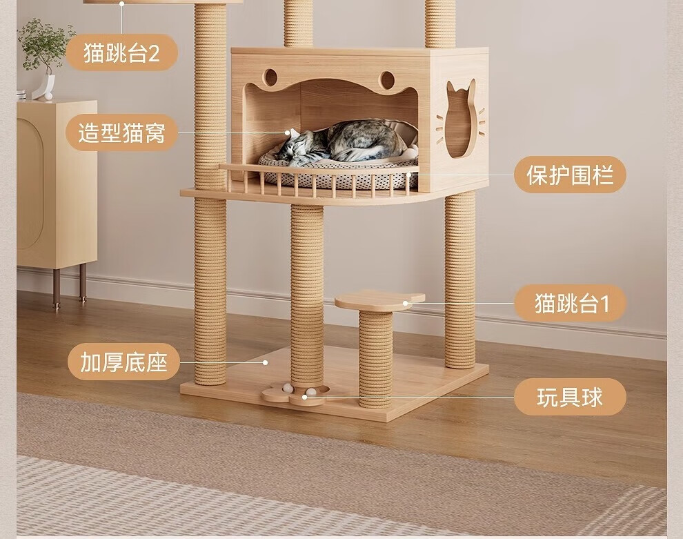 DUTRIEUX Marco de escalada para gatos de madera maciza, nido para gatos, árbol para gatos, estante para gatos, columna tongtian, cápsula espacial grande para el hogar, pequeña, especial para dormir y jugar, tablero de madera maciza 9234, recomendado para múltiples gatos + columna de madera maciza de cáñamo blanco
