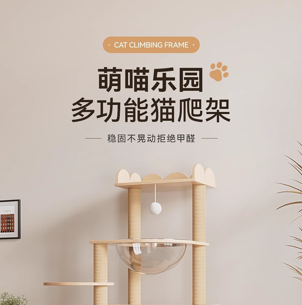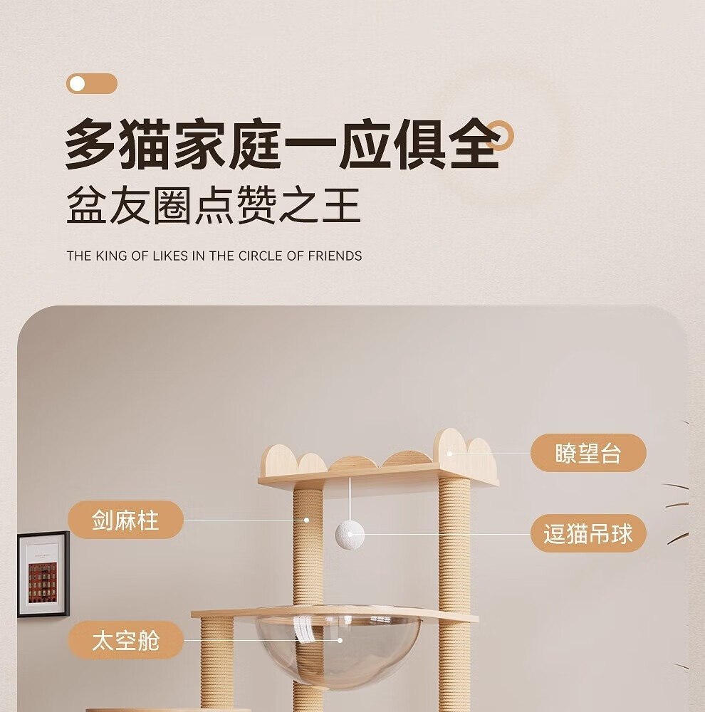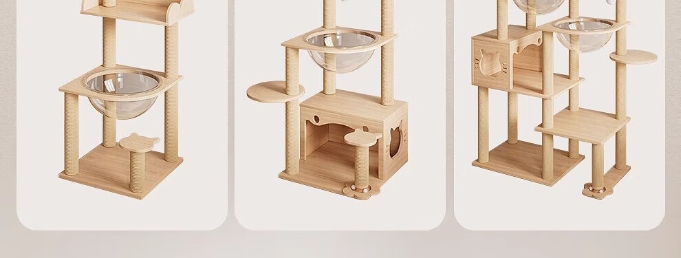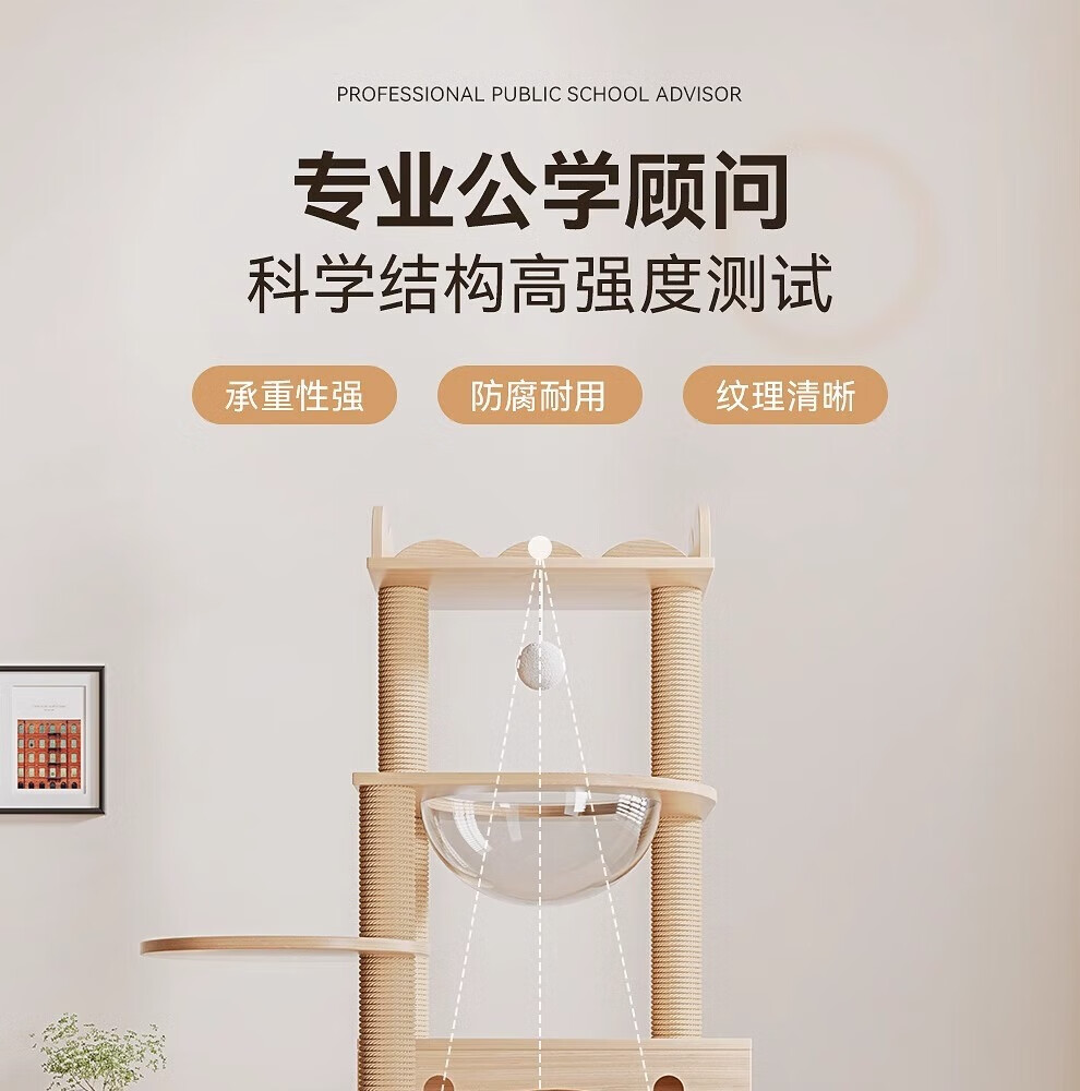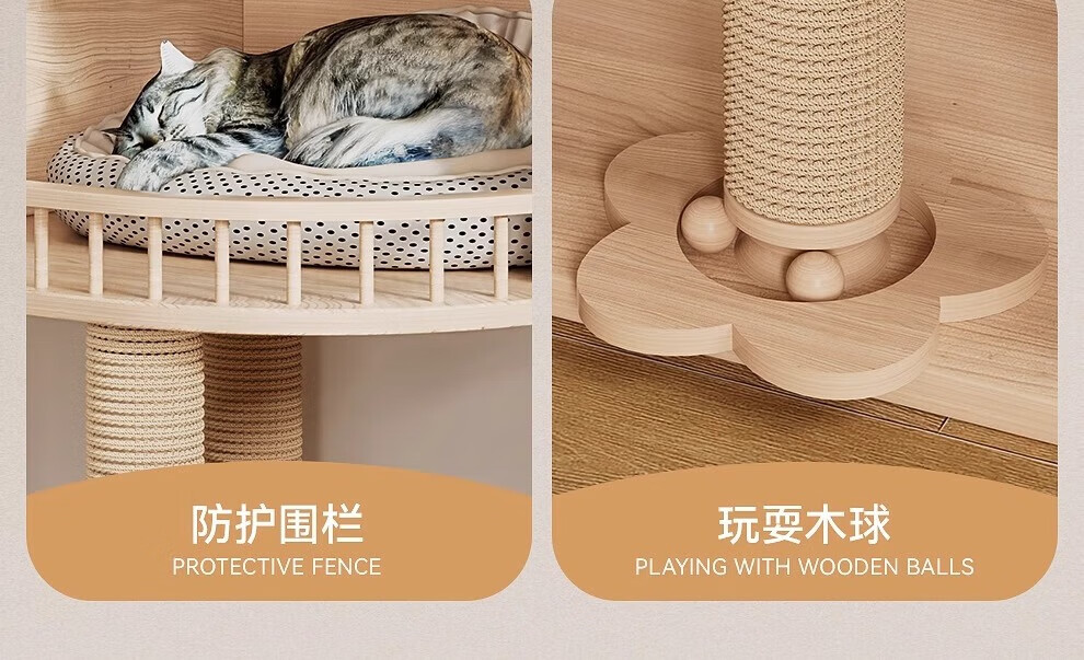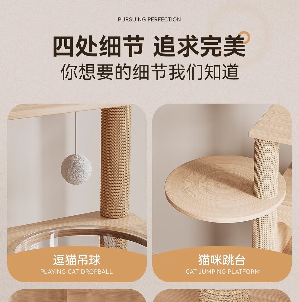 DUTRIEUX Marco de escalada para gatos de madera maciza, nido para gatos, árbol para gatos, estante para gatos, columna tongtian, cápsula espacial grande para el hogar, pequeña, especial para dormir y jugar, tablero de madera maciza 9234, recomendado para múltiples gatos + columna de madera maciza de cáñamo blanco