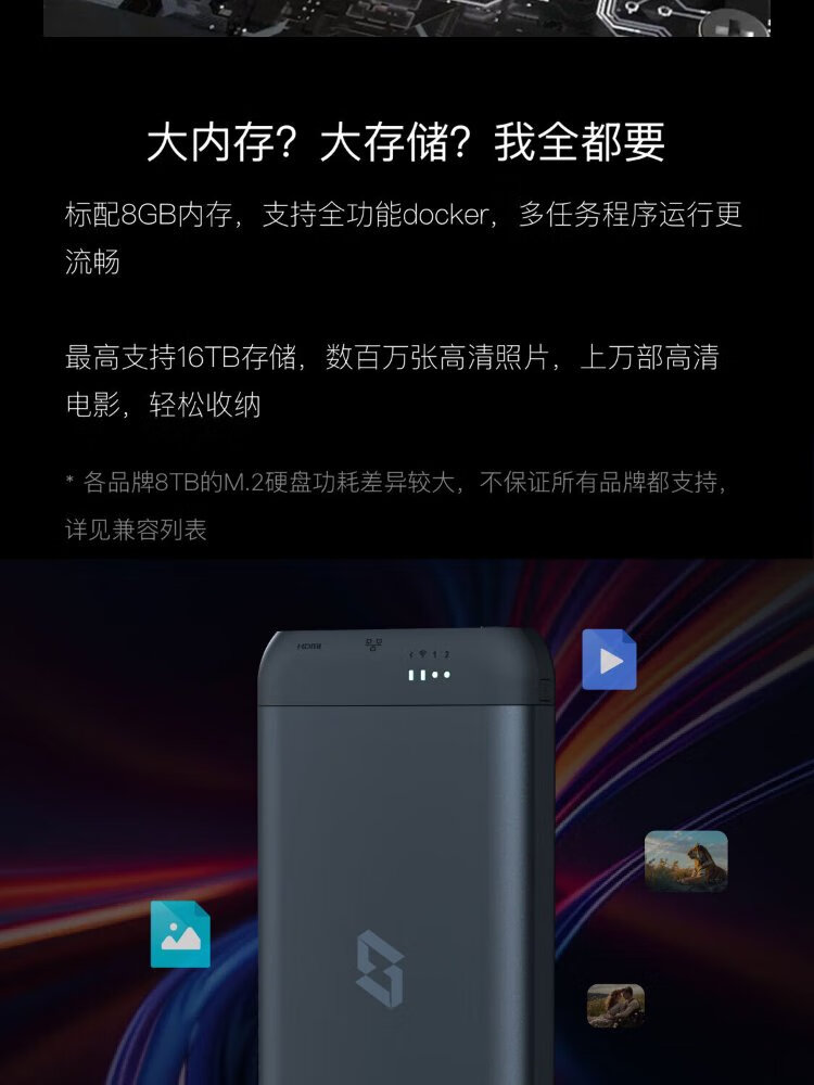 极空间NAS网络存储器智能移动式T2S随身个人私有云固态硬盘便携云存储服务器 随身智能魔盒 T2S