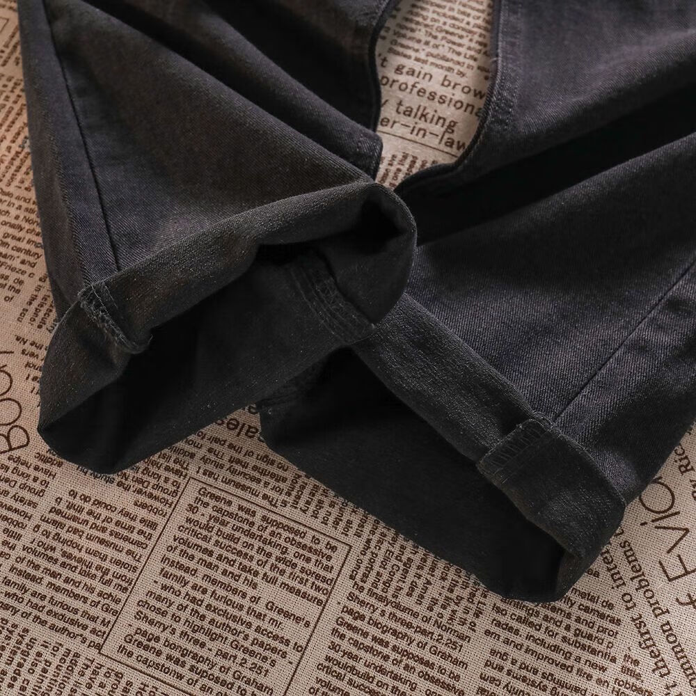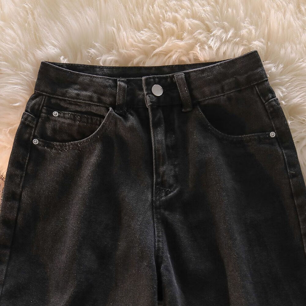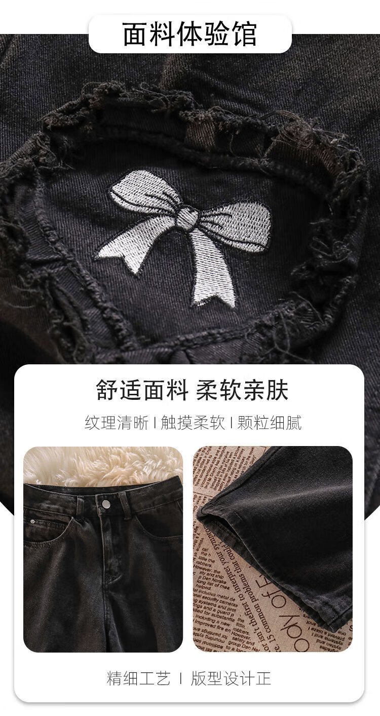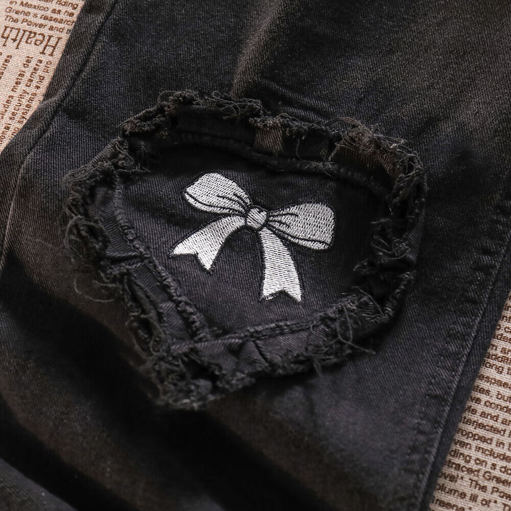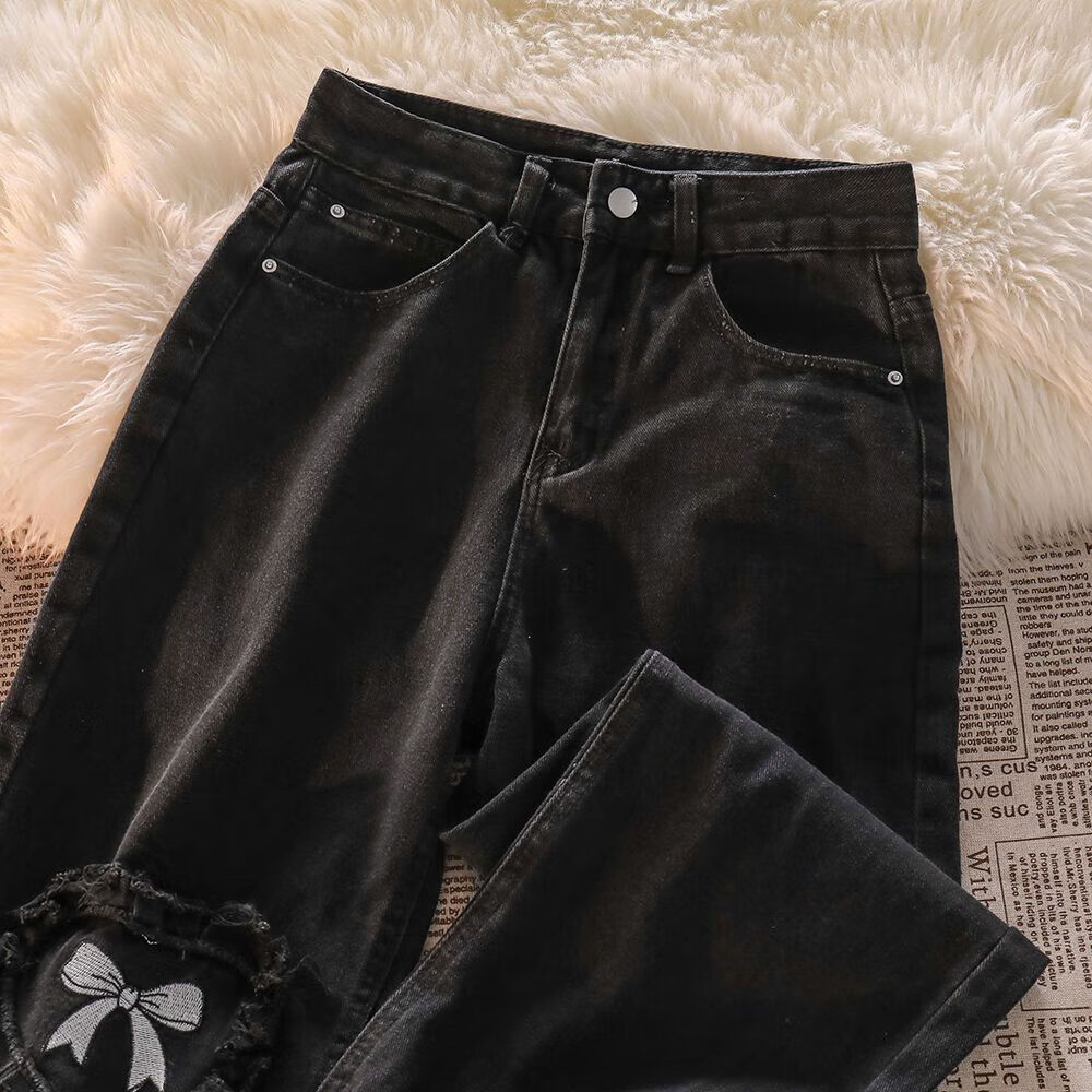 Her style black love bow jeans for women spring and autumn new high waist design straight wide leg long pants trendy ins black pants XS