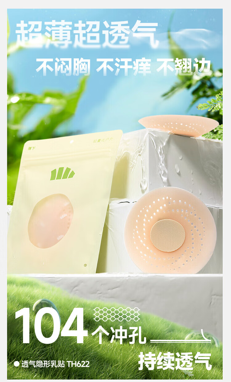 蕉下(beneunder)胸贴透气女婚纱可用夏季防凸点隐形乳头贴免穿内衣硅胶乳贴 自然肤【单对装】