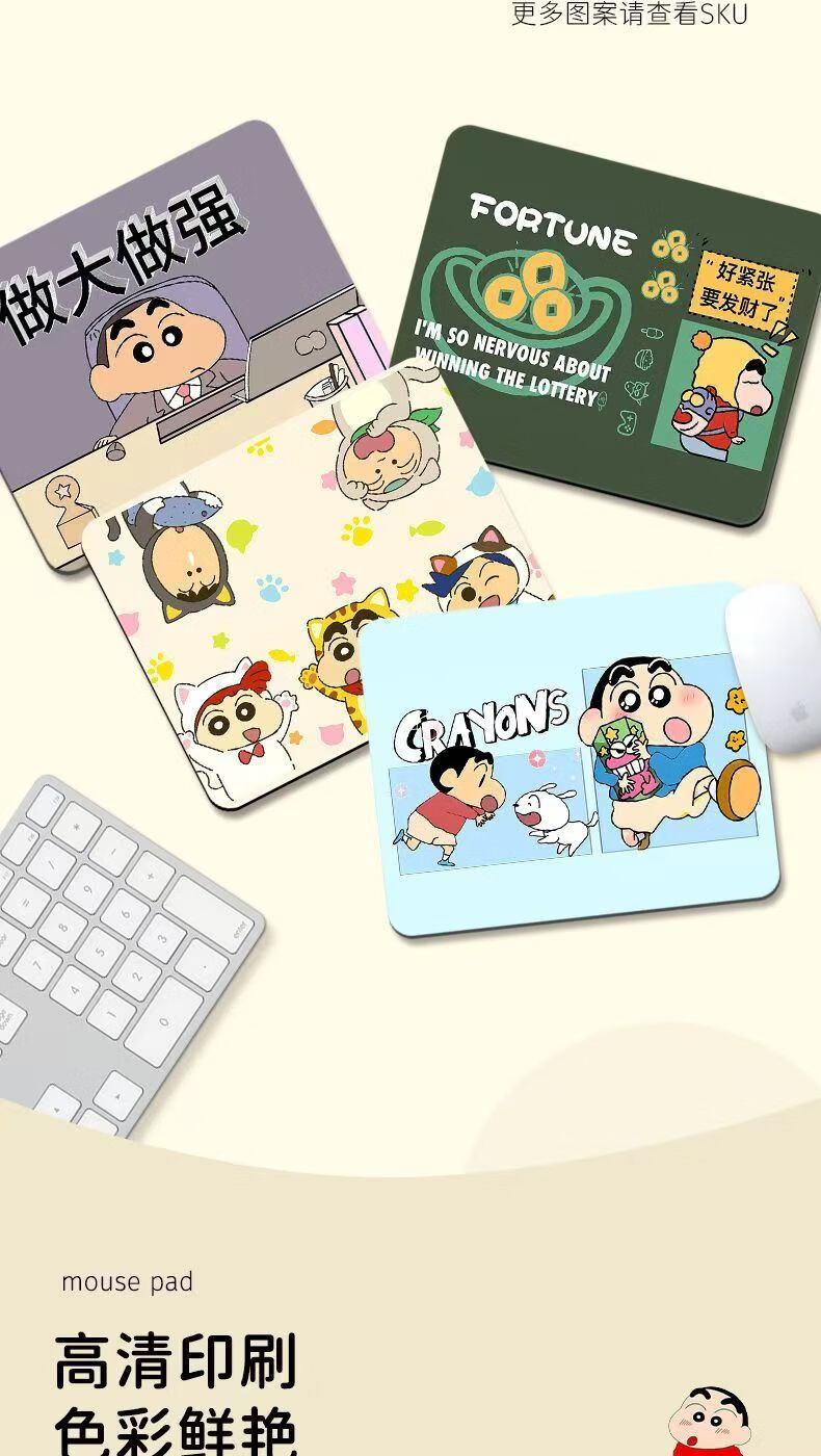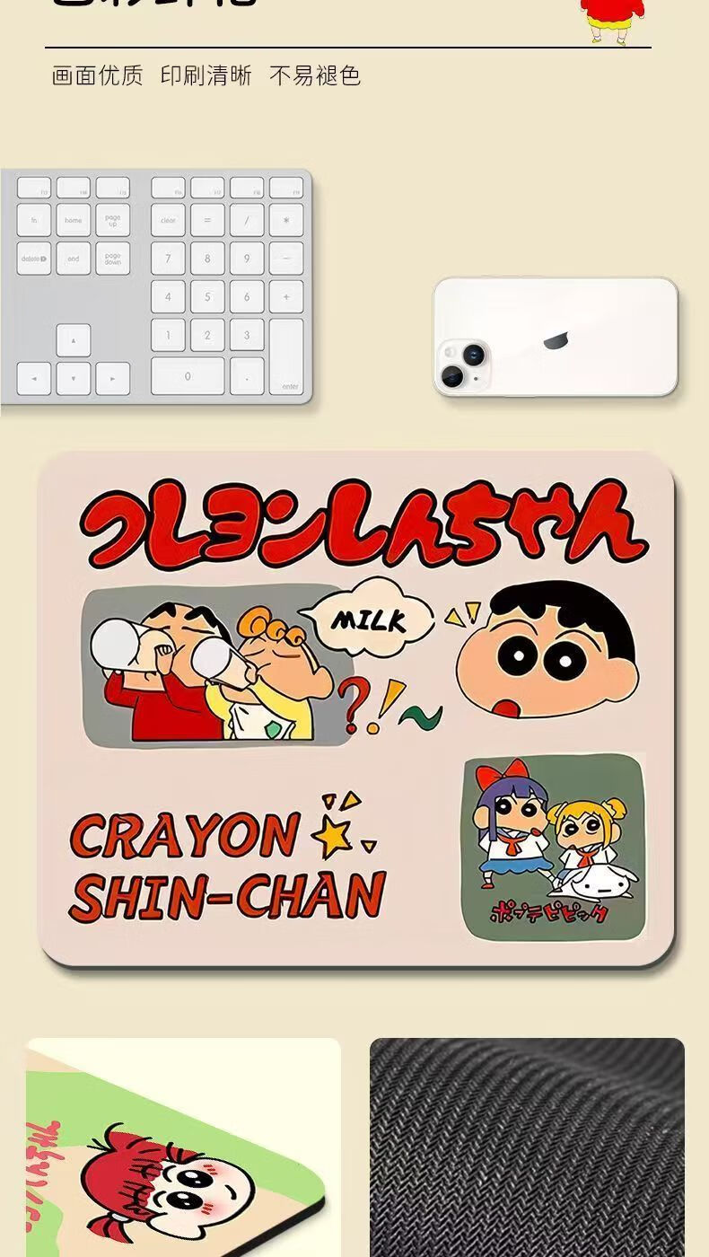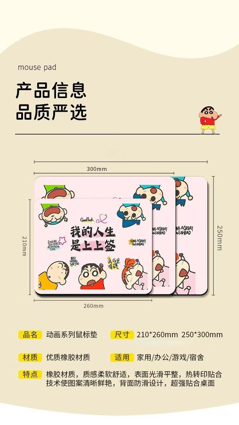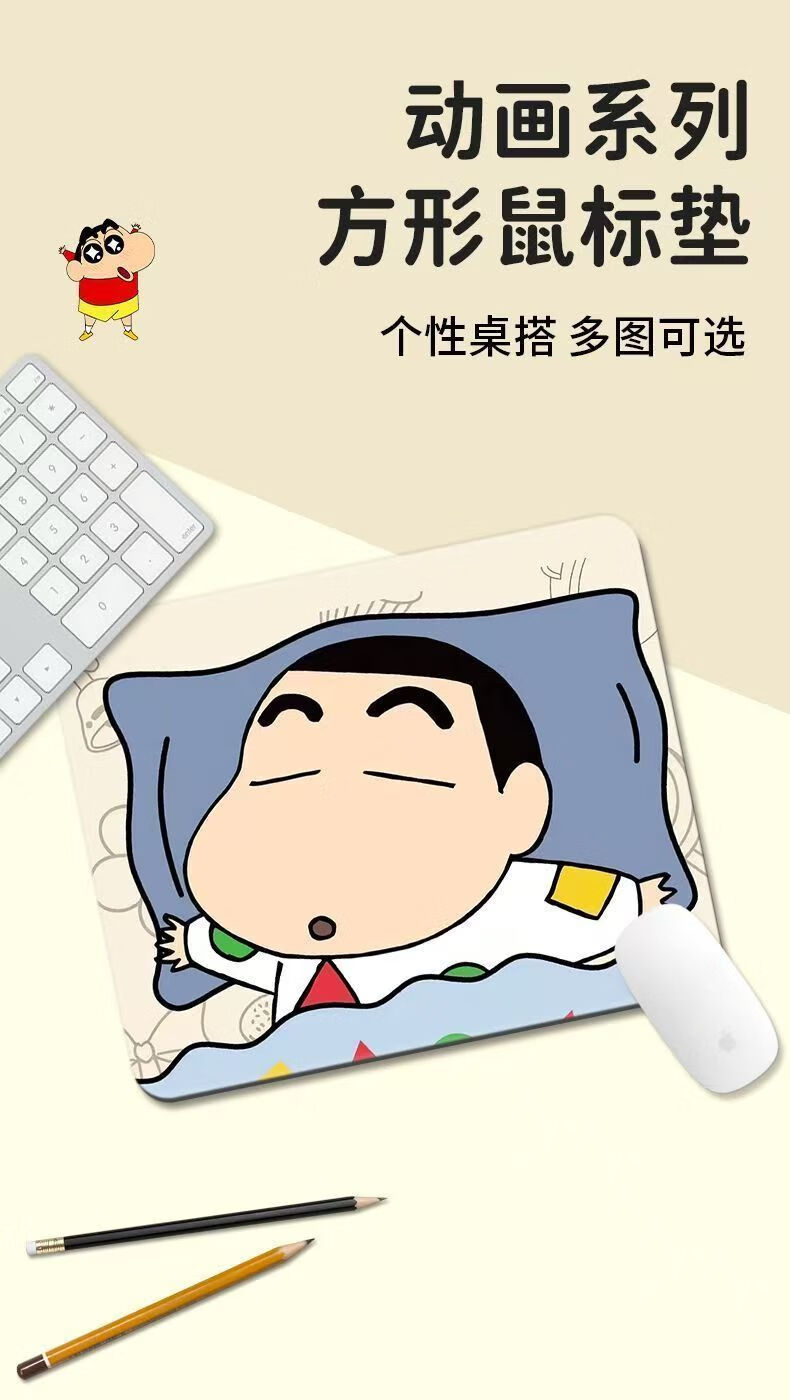 【京东物流】鼠标垫蜡笔小新卡通动漫可爱二次元创意桌面垫新款小号游戏电竞防滑男女生办公桌垫 干饭小新 密锁边260*210*3mm