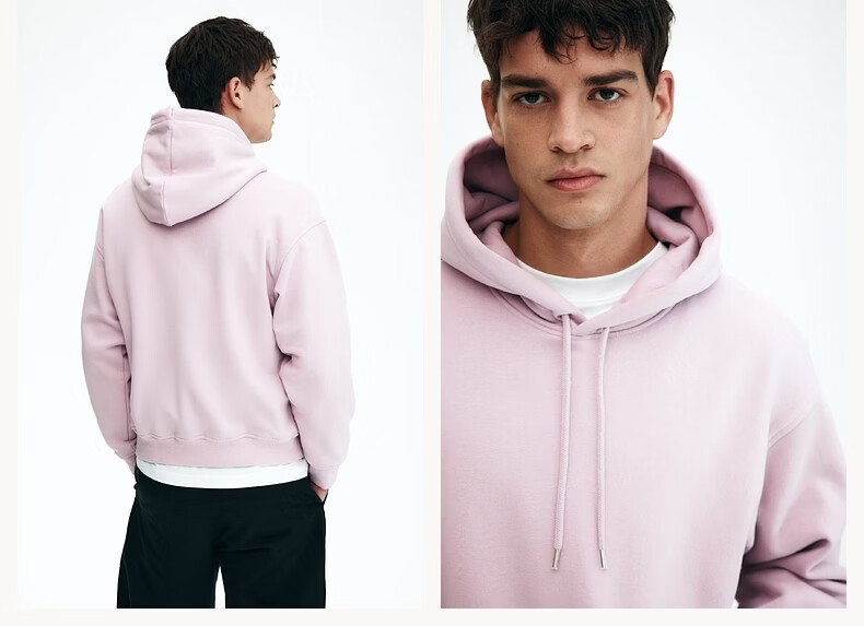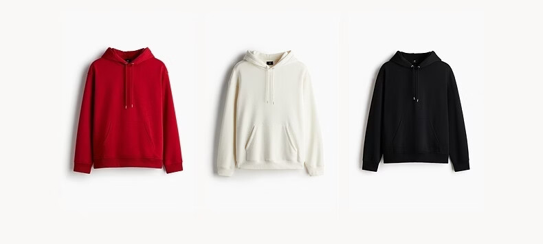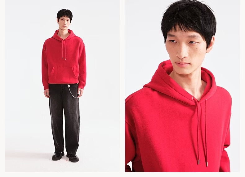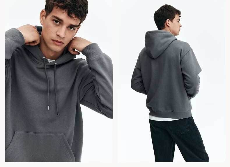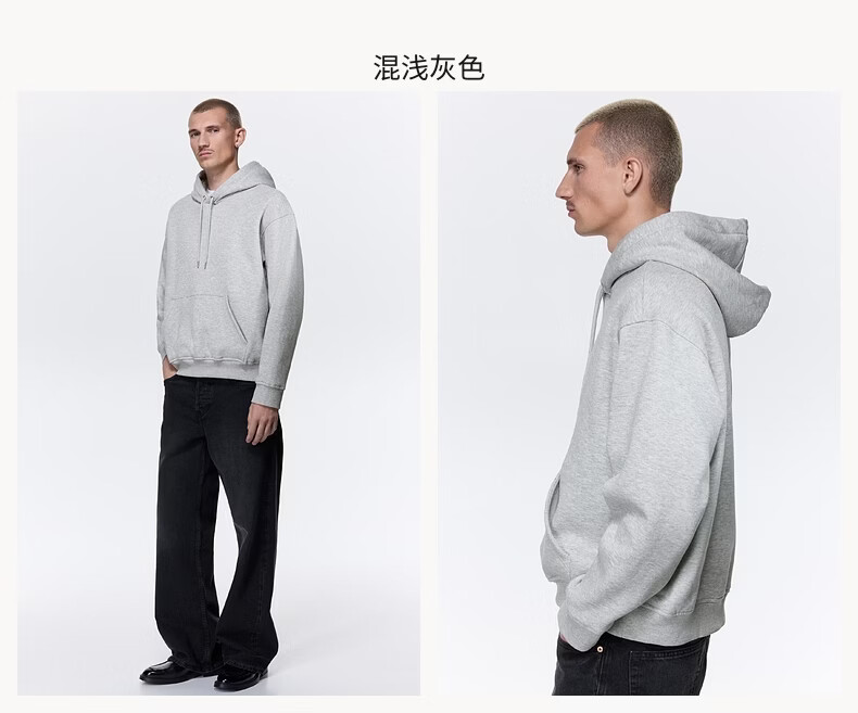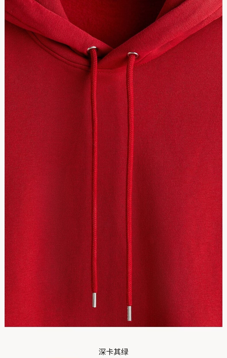 H&M Men's Sweatshirt 2025 Winter Plus Velvet Couple Outdoor Drop Shoulder Loose Red Christmas Hoodie 0970819 Gray S 170/92