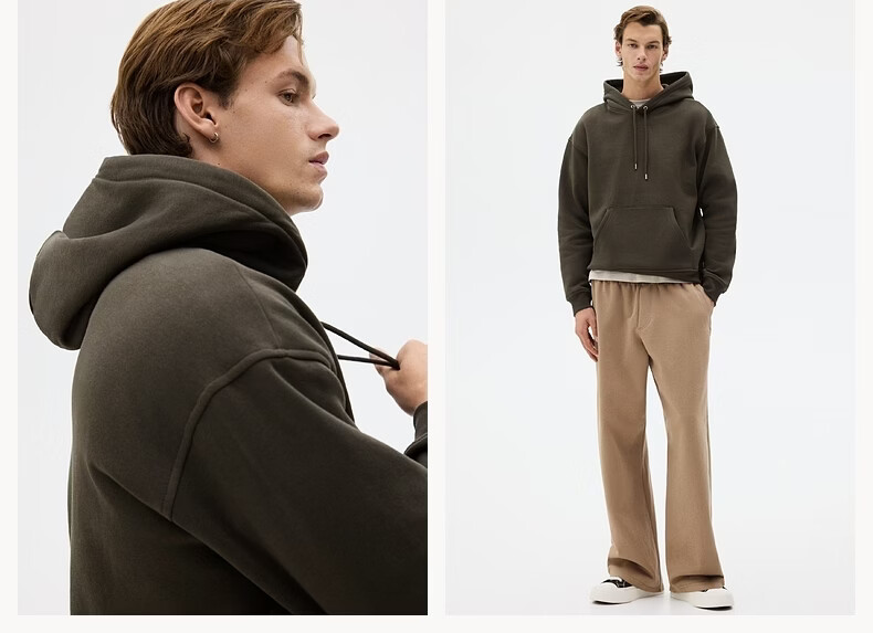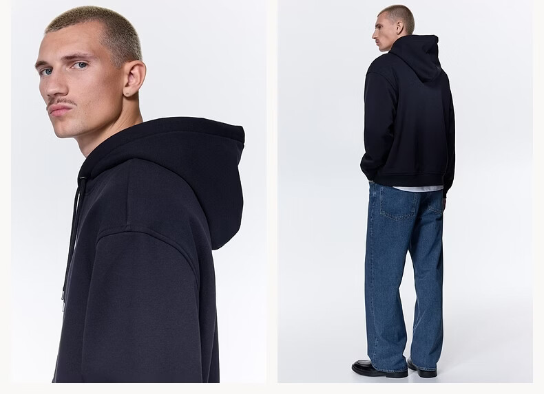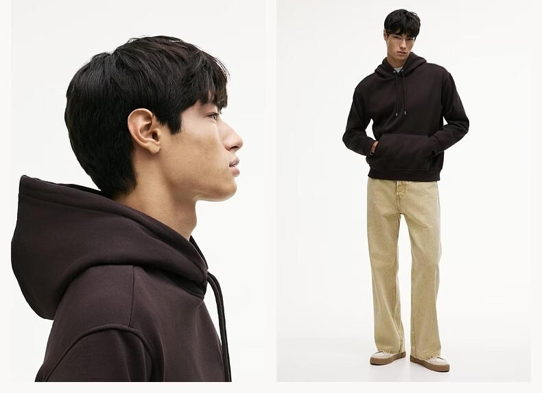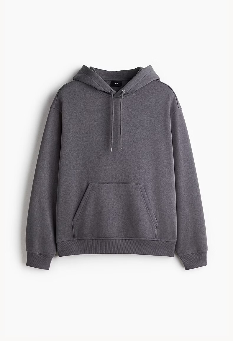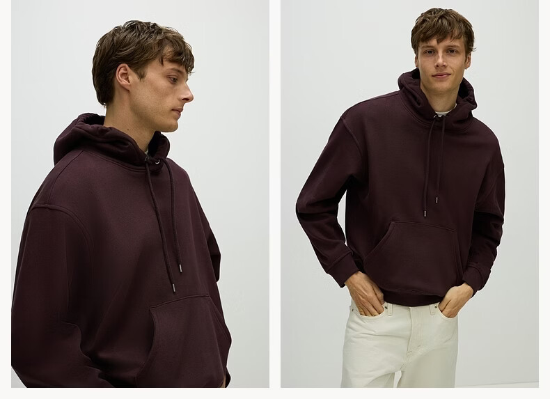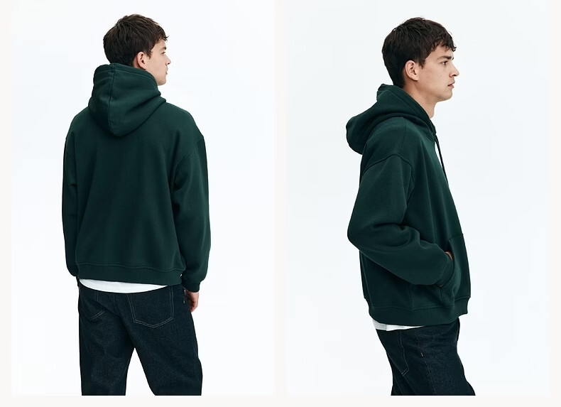 H&M Men's Sweatshirt 2025 Winter Plus Velvet Couple Outdoor Drop Shoulder Loose Red Christmas Hoodie 0970819 Gray S 170/92