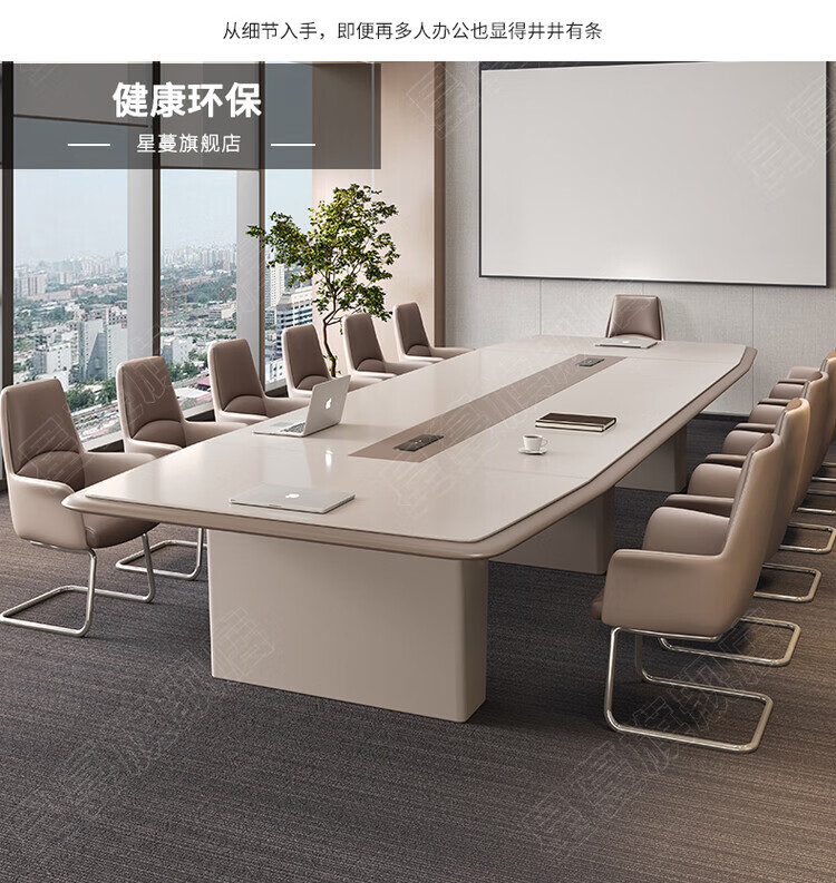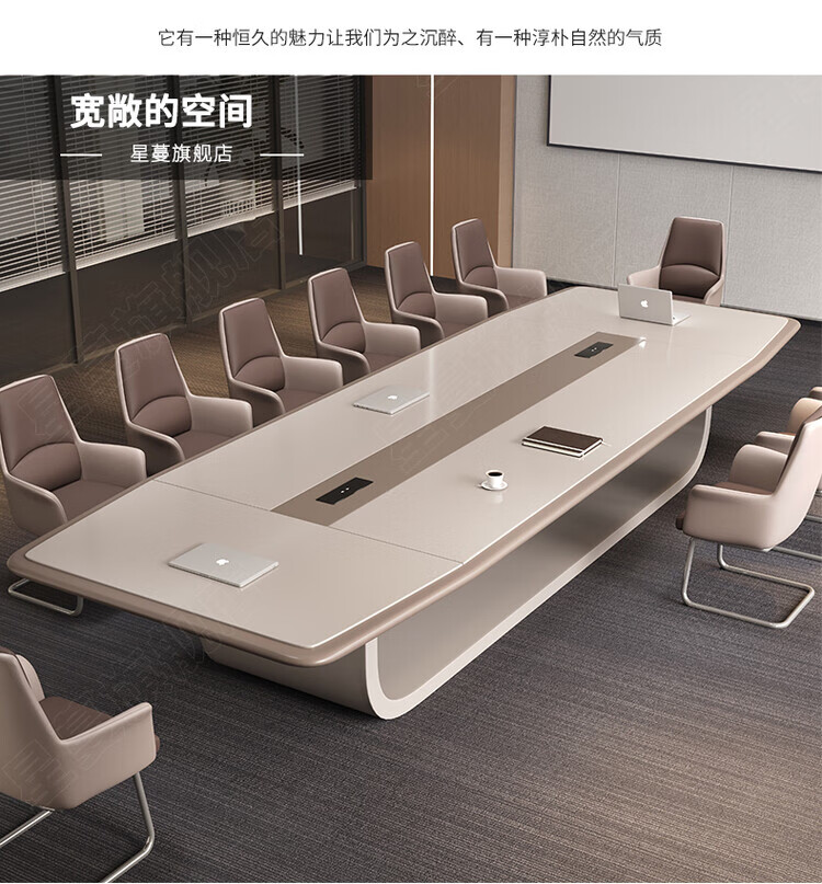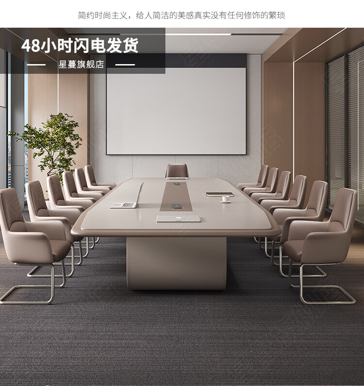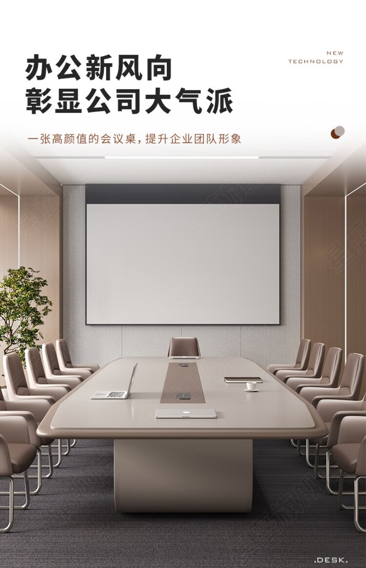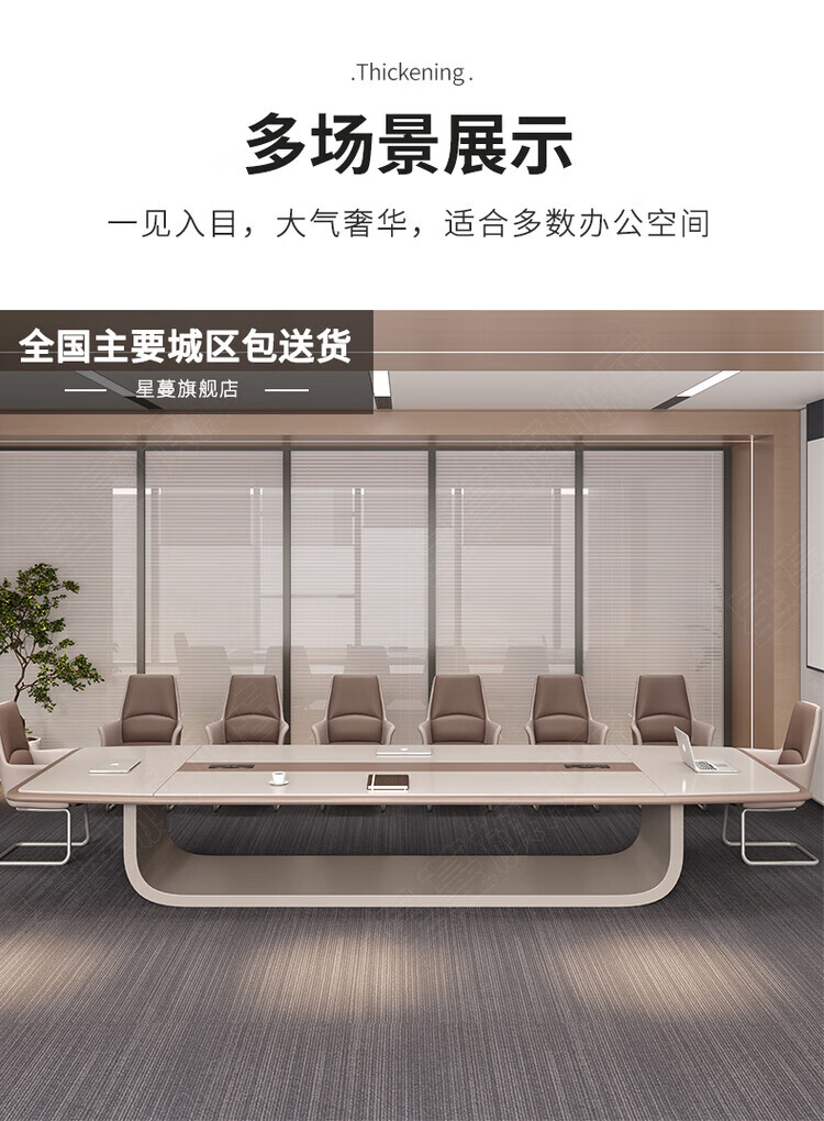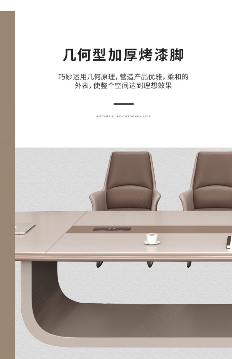 关牧(GUANMU)创意烤漆会议桌长桌 现代大型洽谈桌轻奢大气会议室培训办公桌子 4.5米会议桌+大会议椅14个