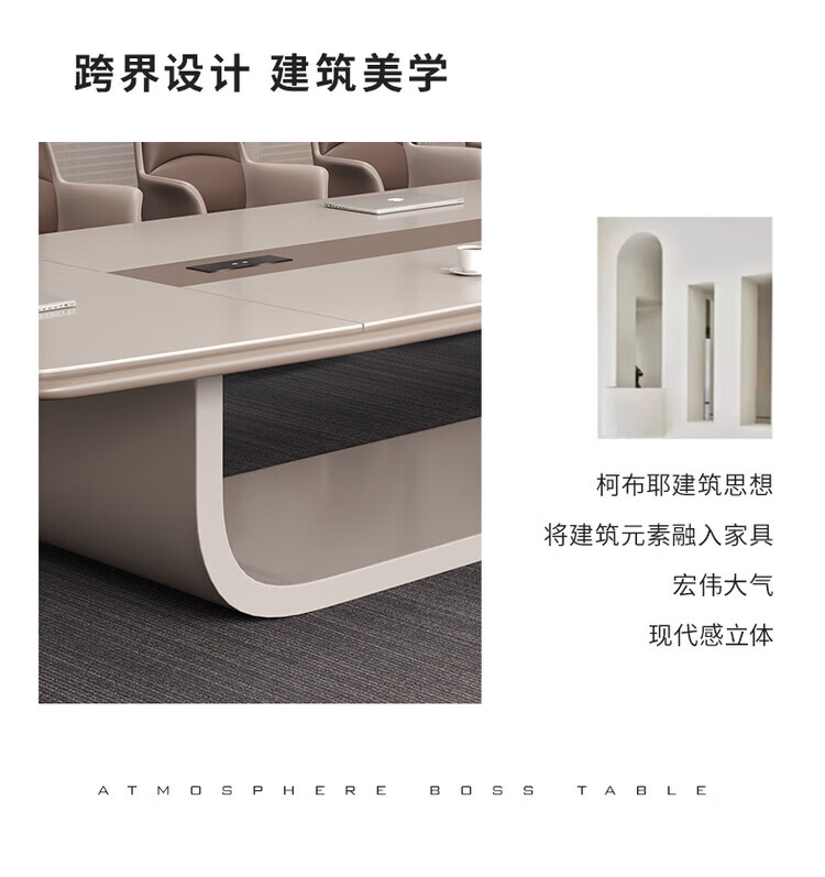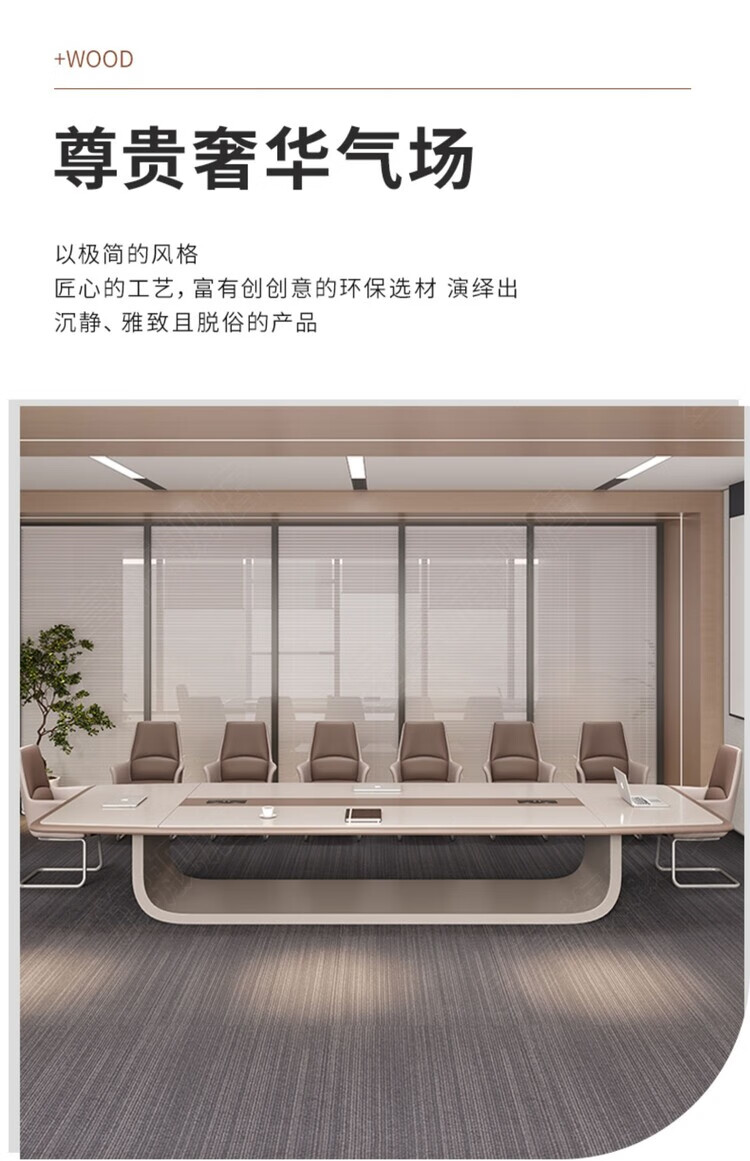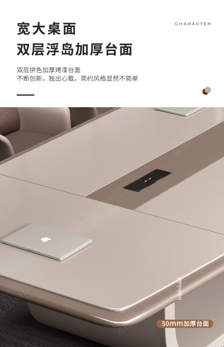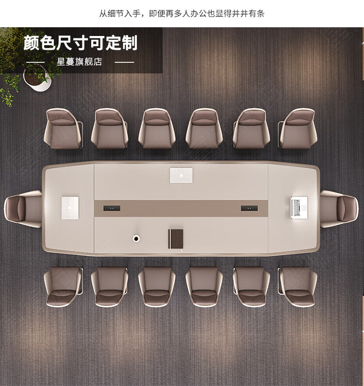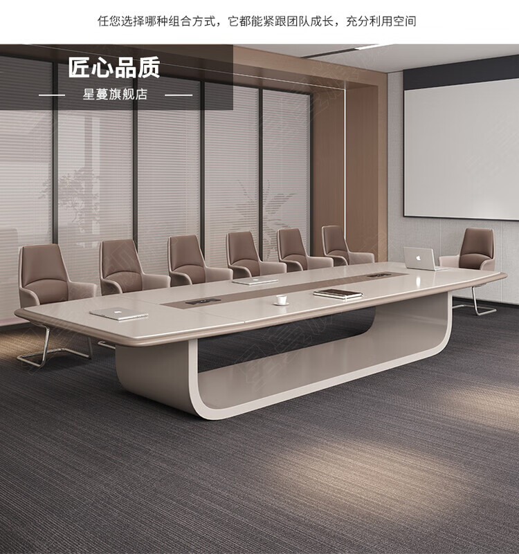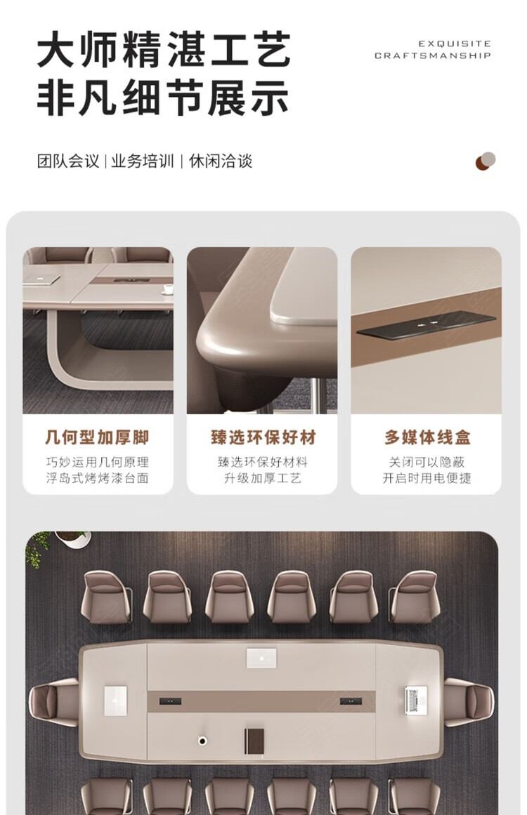 关牧(GUANMU)创意烤漆会议桌长桌 现代大型洽谈桌轻奢大气会议室培训办公桌子 4.5米会议桌+大会议椅14个