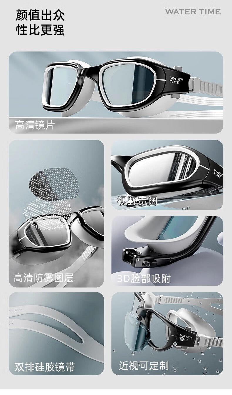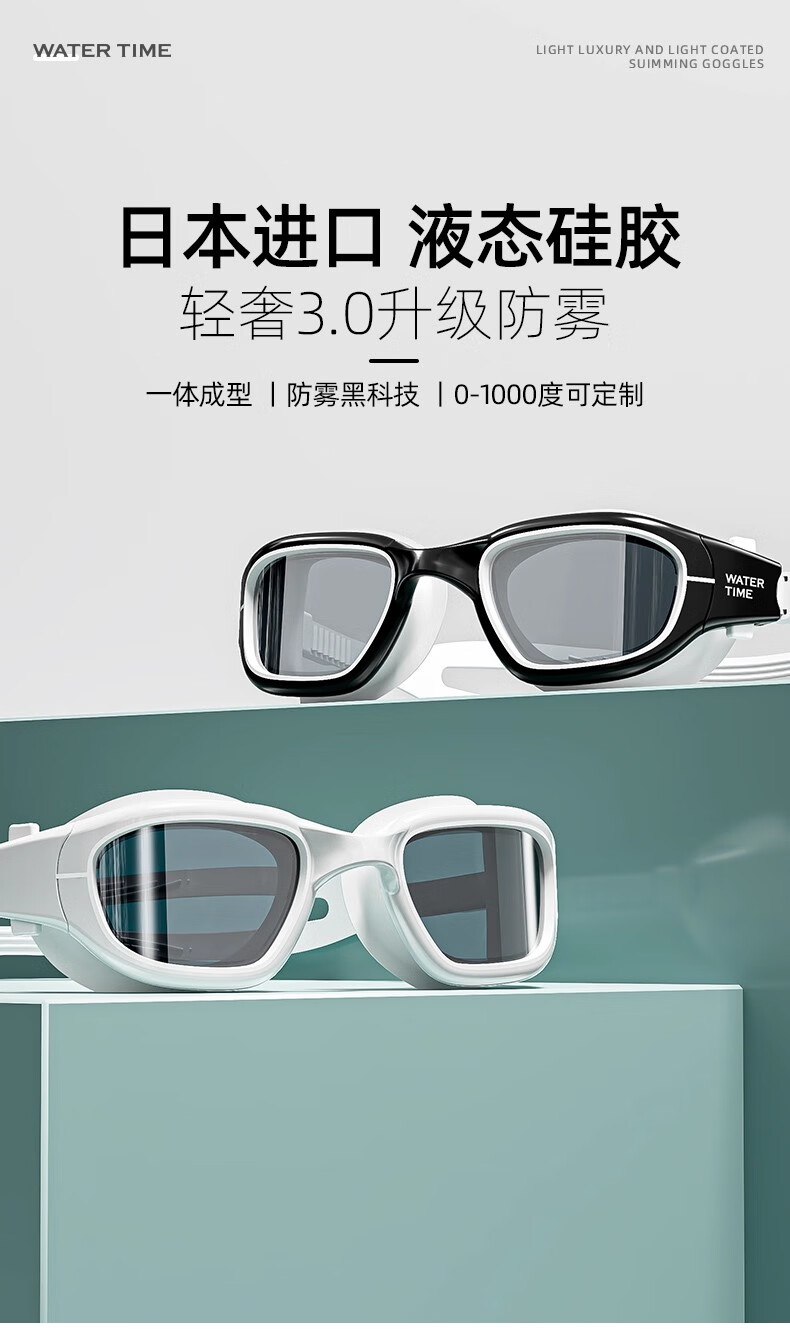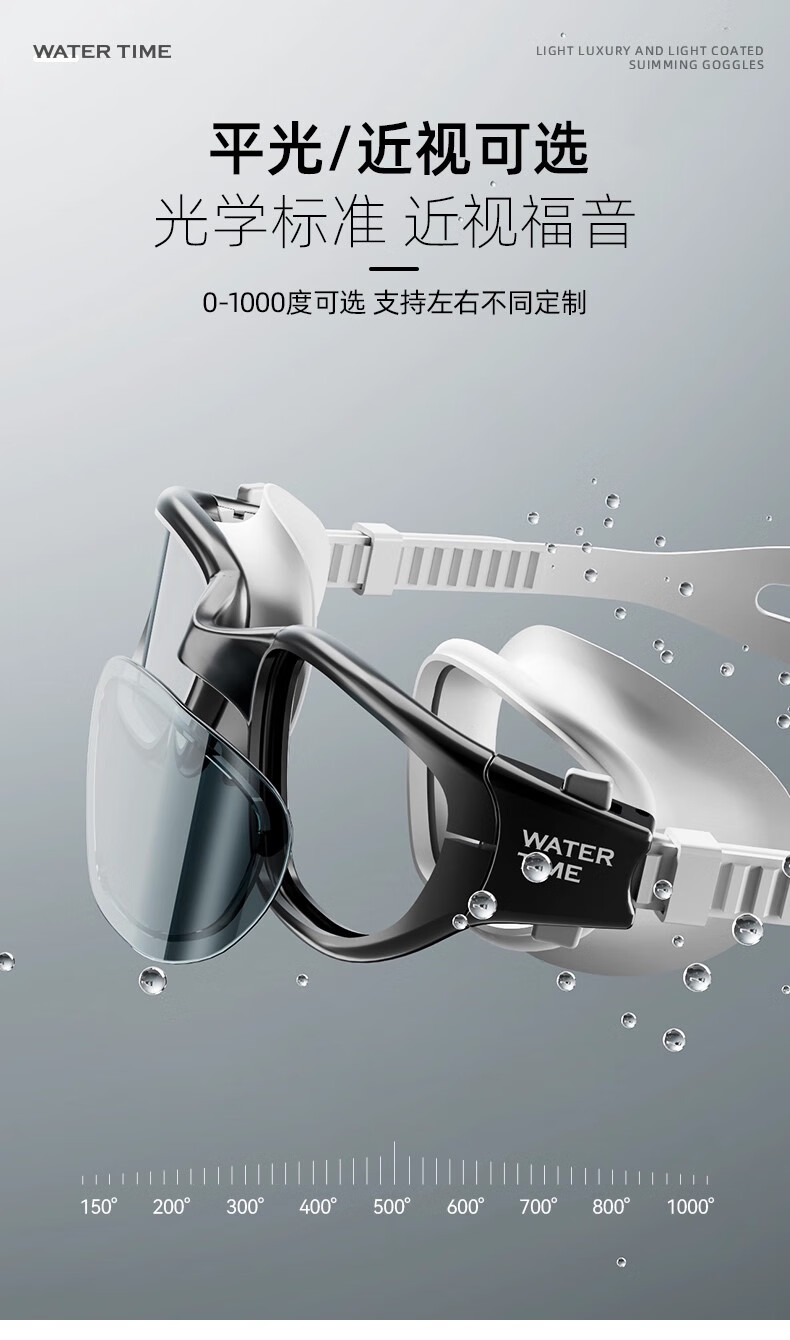 WATERTIME new swimming goggles swimming myopia high-definition anti-fog waterproof professional competition custom-made prescription glasses ice ink flat light/myopia 0-1000 degrees optional flat light