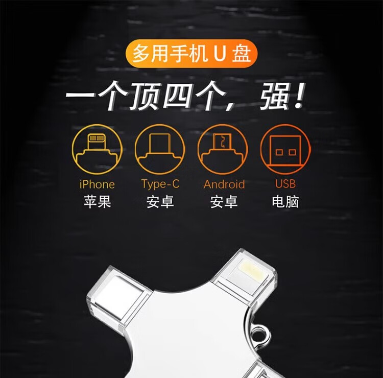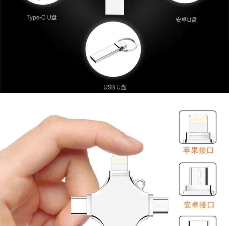 正品高速2TB大容量手机u盘2000GB苹果安卓type-c电脑等四合一512g 杏色 旋转型合一太空银2000G