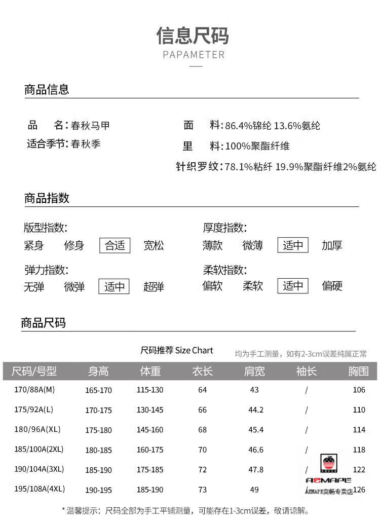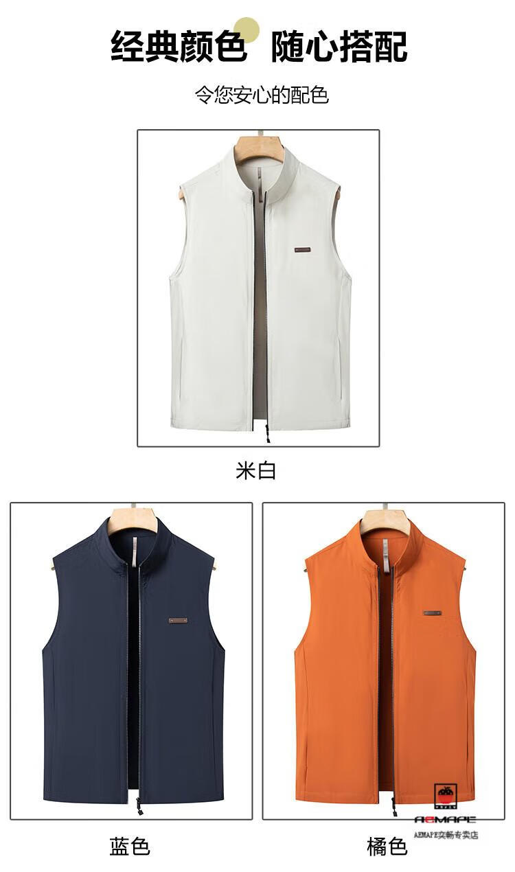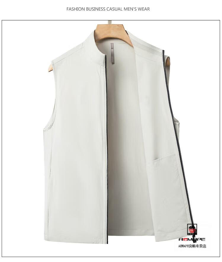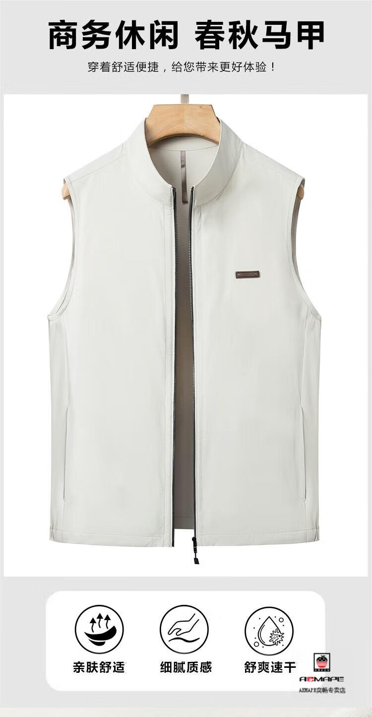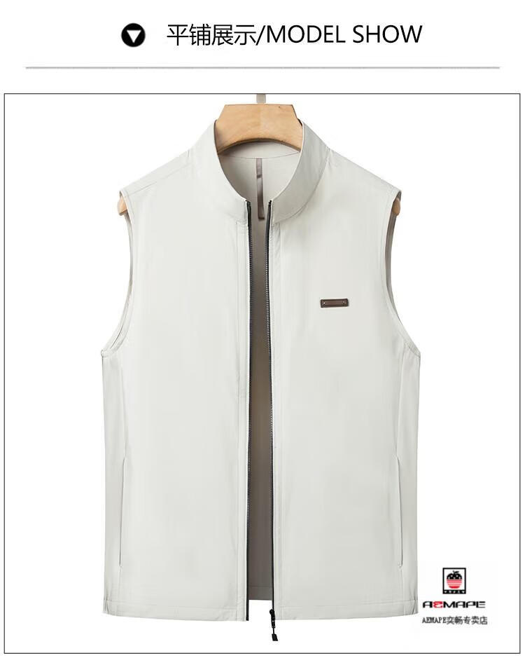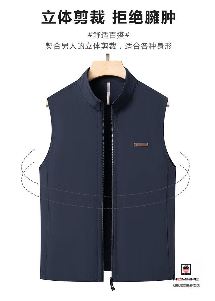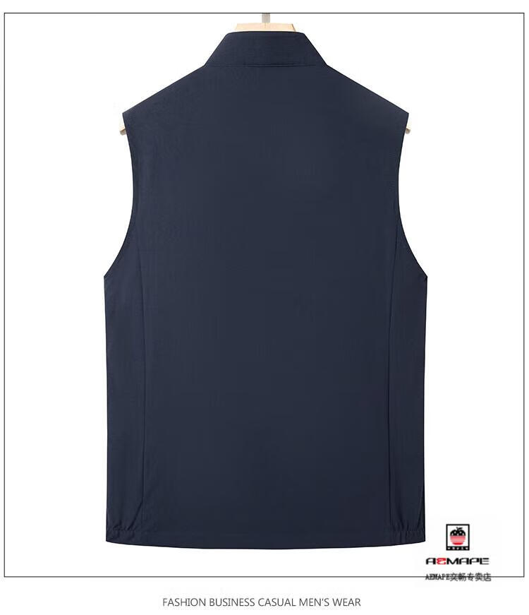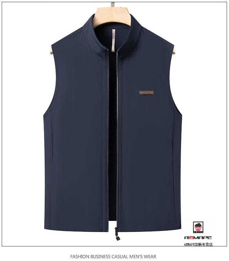 AEMAPE品牌男装2025春秋季薄款男士立领马甲休闲爸爸装背心无袖坎肩外套 蓝色 XL 180 建议 135-155斤
