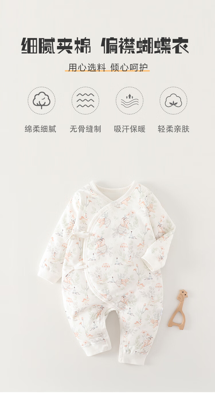 【冬季爬服】新生儿衣服婴儿连体衣秋冬加厚夹棉初生宝宝蝴蝶衣 森林物语夹棉60克蝴蝶衣 59cm