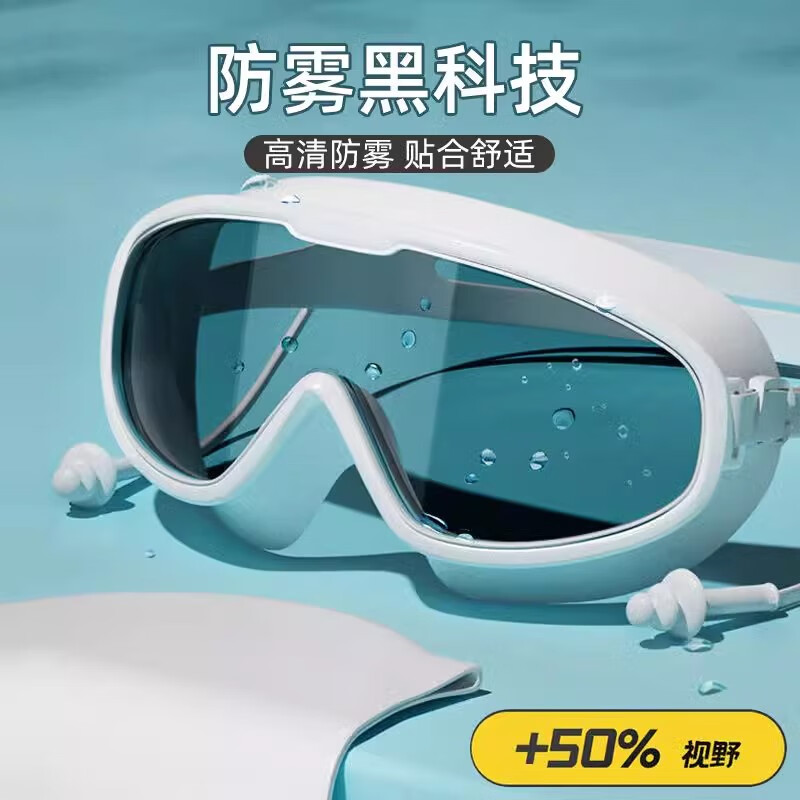 NAOISKEY 脑斯基2025新款大框泳镜防水防雾高清男女士专业成人潜水游泳眼镜装备 白色透明-盒装
