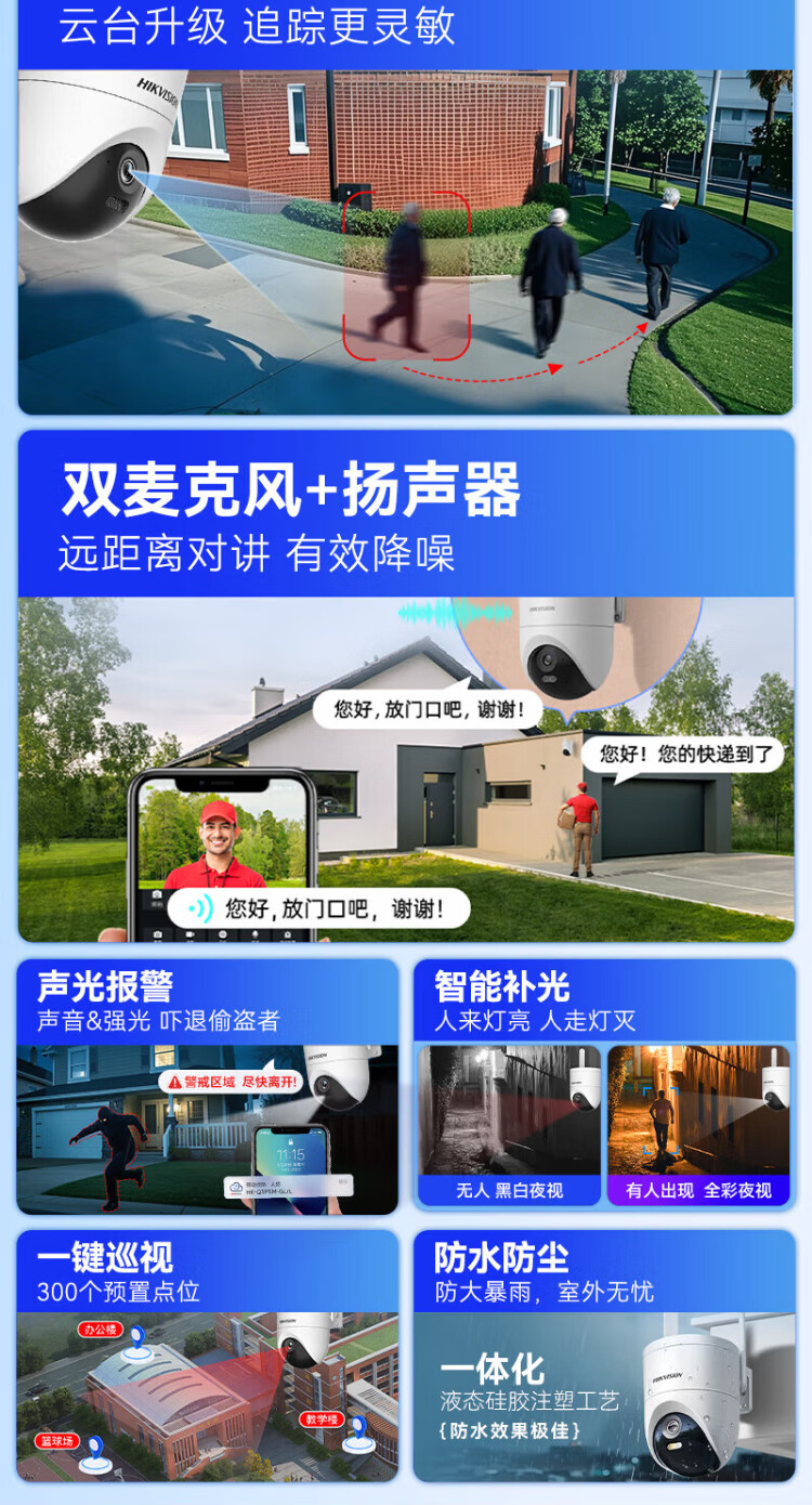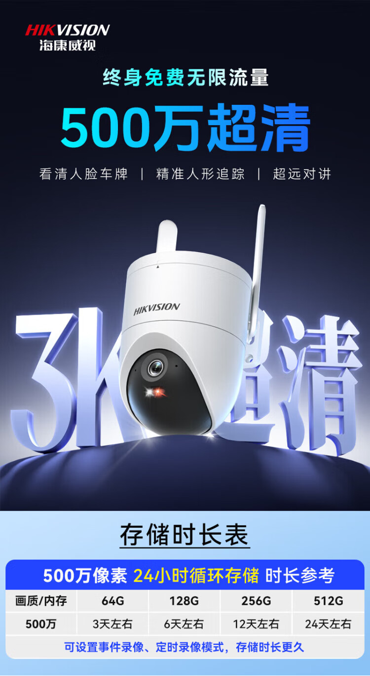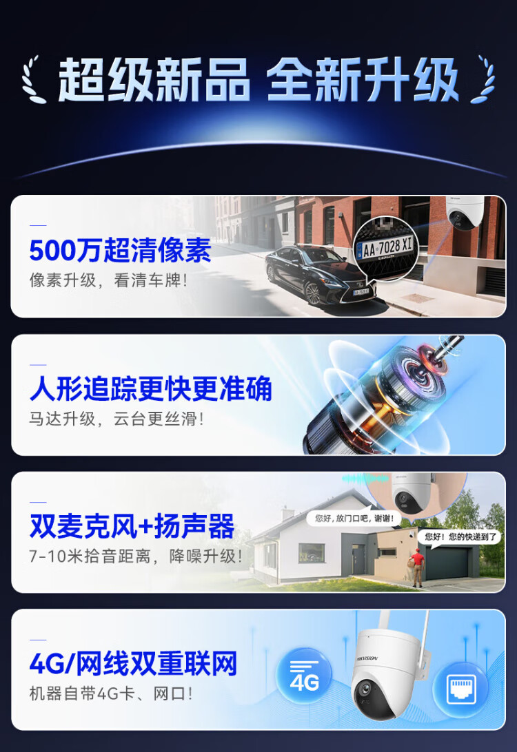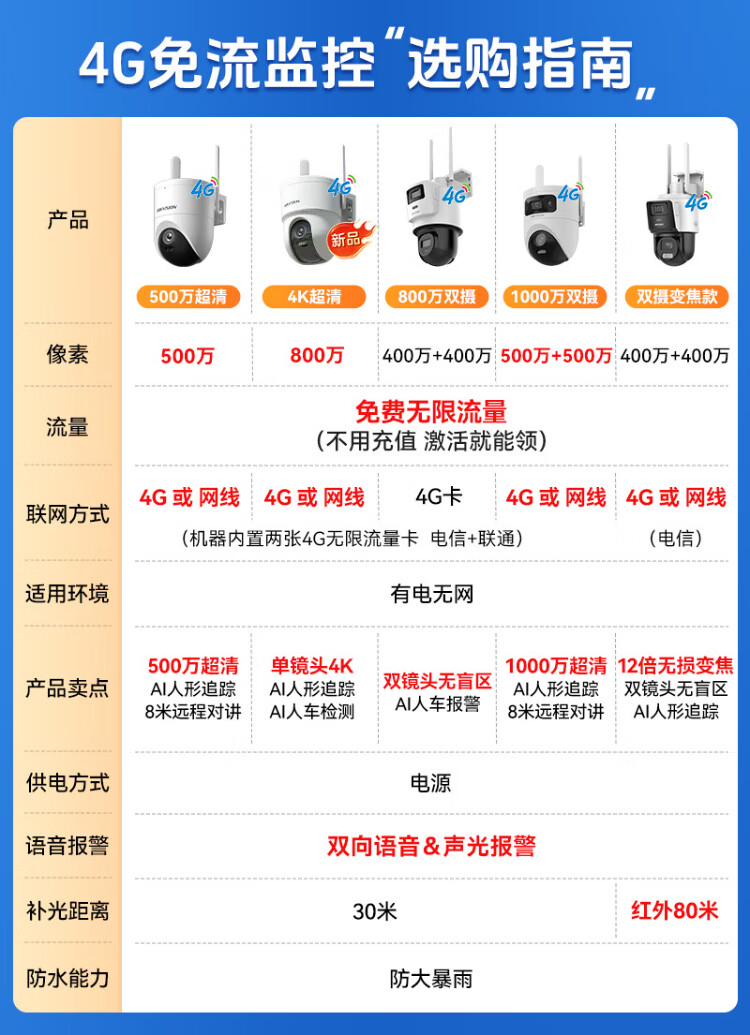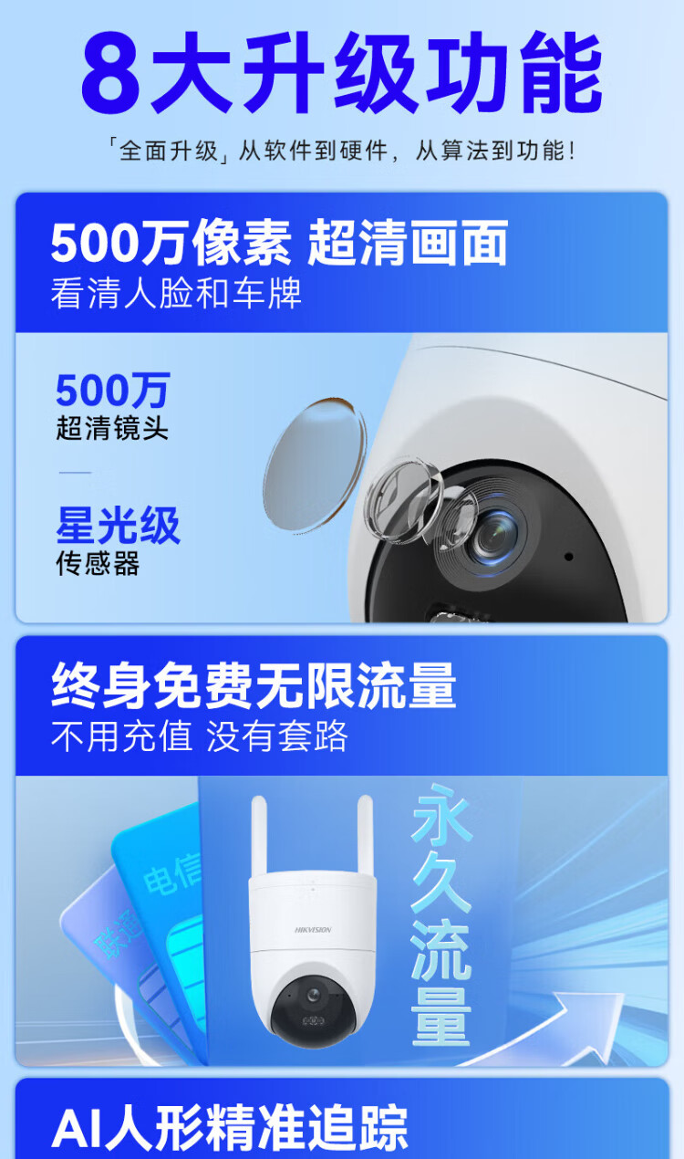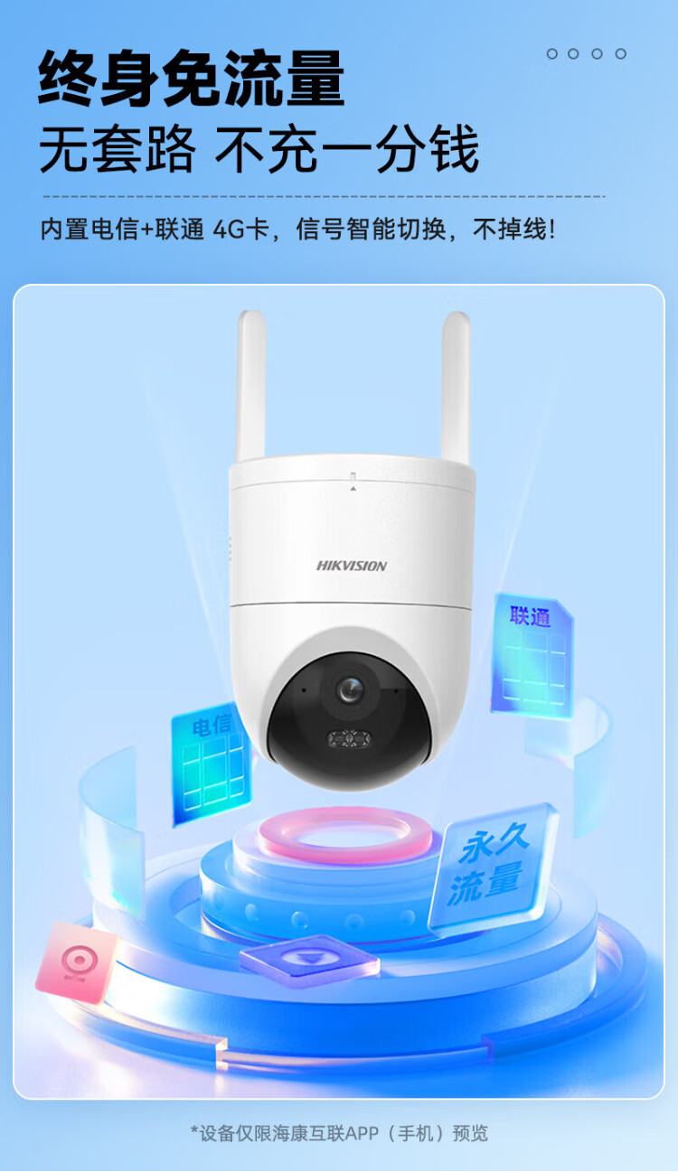 海康威视4G终身免流量监控器摄像头全彩夜视家用室内外农村鱼塘360度全景手机看高清云台旋转语音对讲防水 【终身免流】800万双镜头丨12倍变焦 送64G存储卡