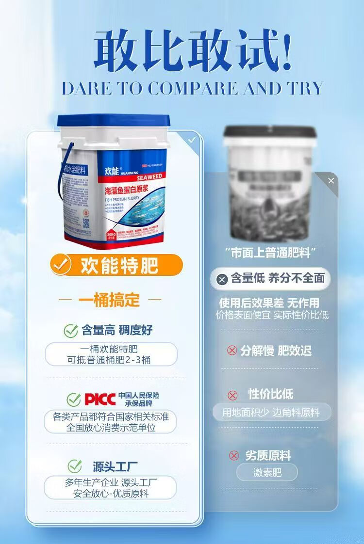 Huaneng seaweed and fish protein puree fertilizer for rooting and seedlings amino acid barrel fertilization genuine organic fertilizer water-soluble fertilizer seaweed and fish protein puree 20kg*1 barrel