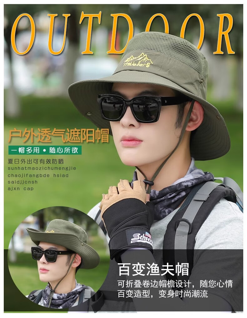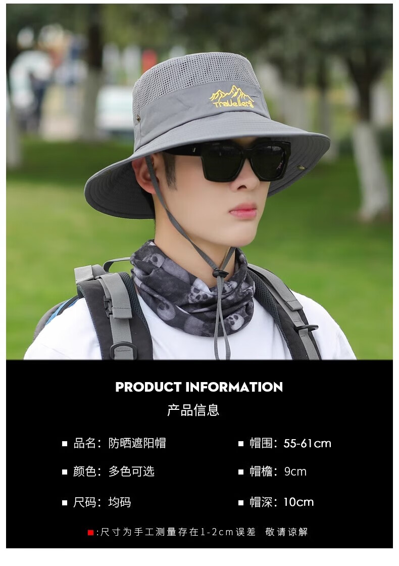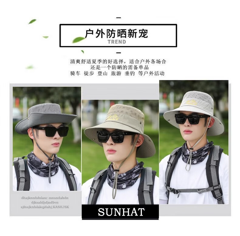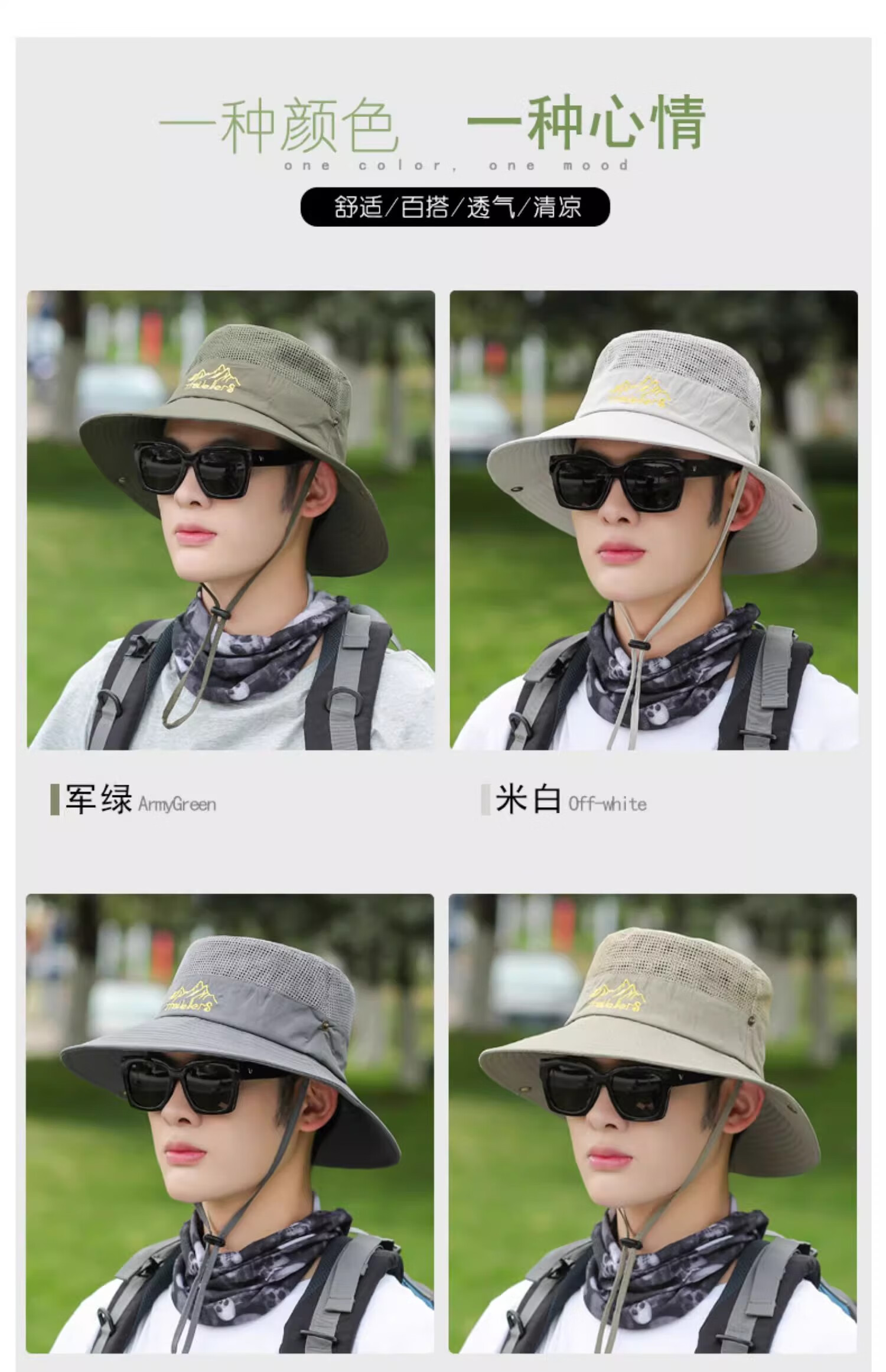 Huishishang Sun Hat Men's Sun Hat Men's Summer Breathable Large Brim Sun Hat Outdoor Mountaineering Men's Cycling Fishing Fisherman's Hat (Gray) Adjustable (With Windproof Rope)