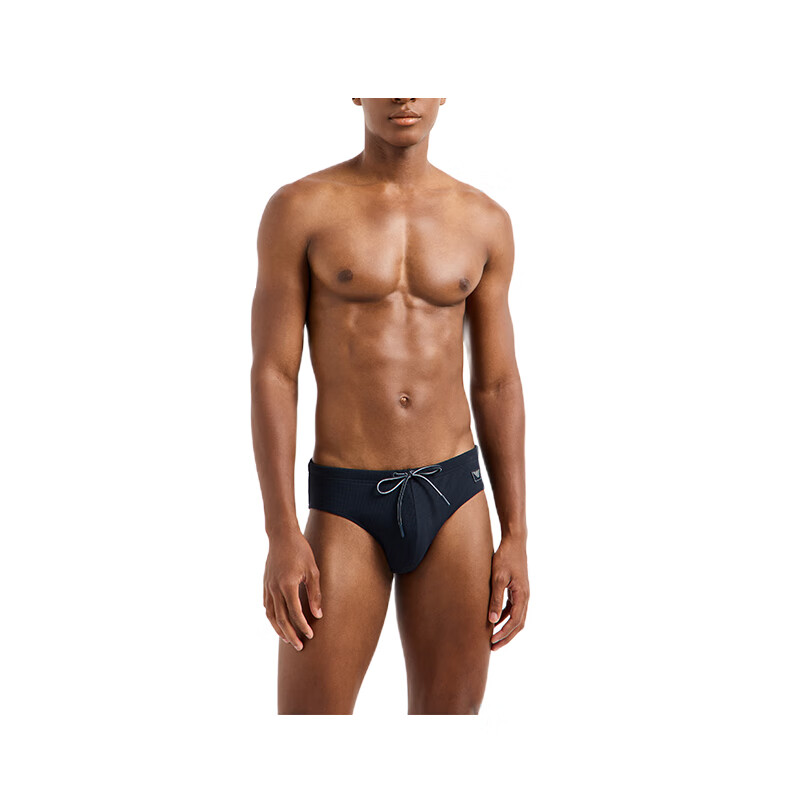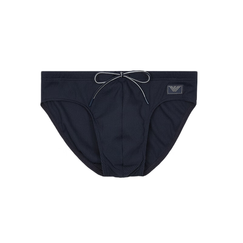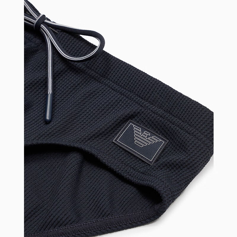 阿玛尼EA男装三角内裤老鹰徽标贴片弹力珠地布松紧腰系带沙滩泳裤25新款 海军蓝 S