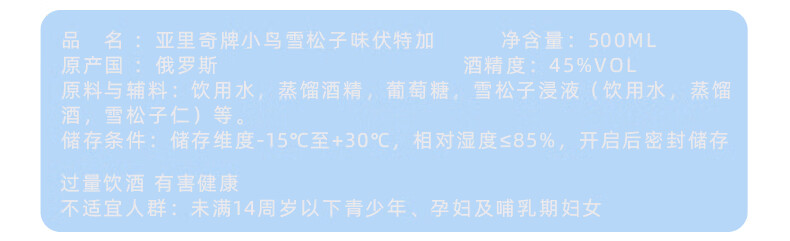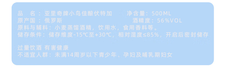 Yarich Russian original national pavilion imported bird vodka spirits foreign wine white wine original wine 500mL original wine 56 500mL 4 bottles