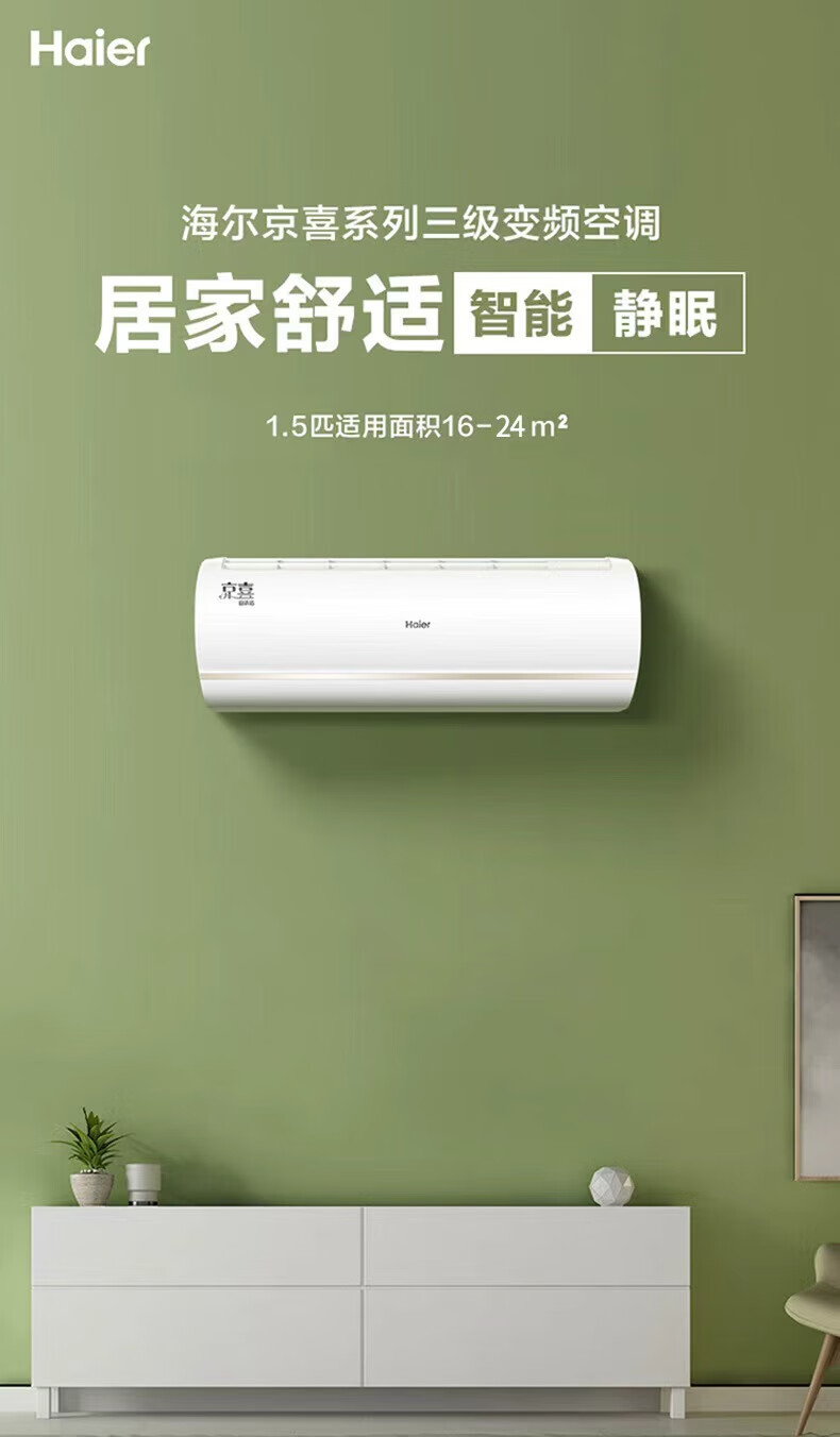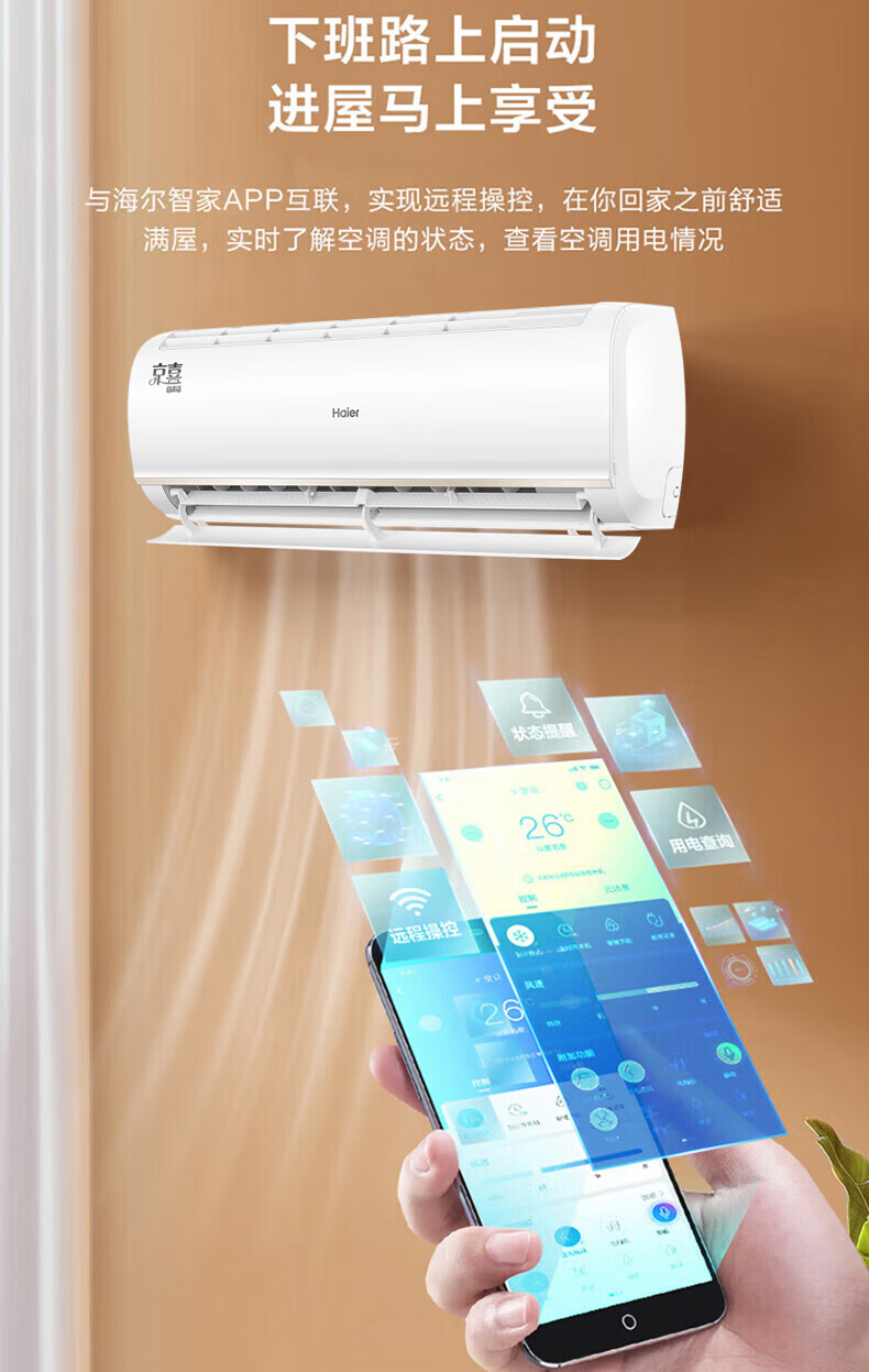 Climatiseur Haier 1,5 HP fréquence variable autonettoyant chauffage et refroidissement domestique grand volume d'air chauffage et refroidissement de la chambre climatiseur mural indépendant déshumidification réduction silencieuse du bruit échange intelligent 1,5 HP efficacité énergétique à trois niveaux capteur de lumière intelligent protection du sommeil + contrôle intelligent WiFi