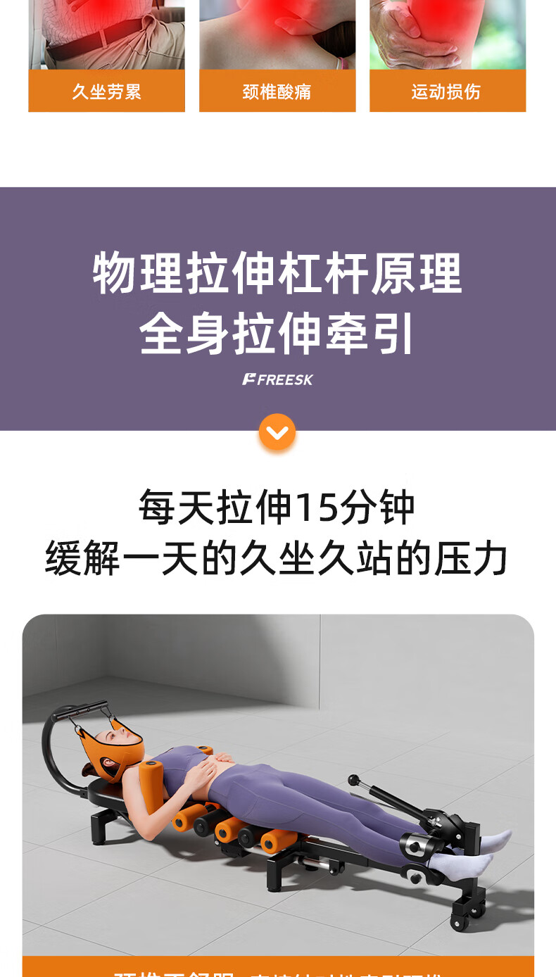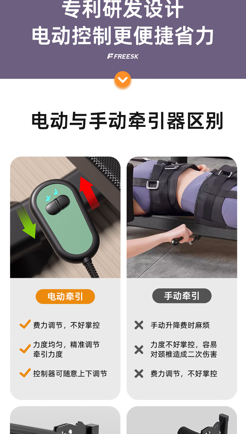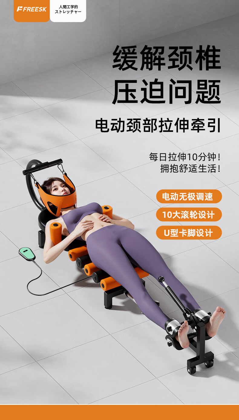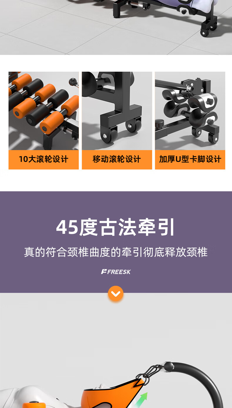 FREESKFREESK neck and waist stretcher electric traction machine leg stretching artifact medical home height relief bed electric standard model (roller design + 4U clamping feet)