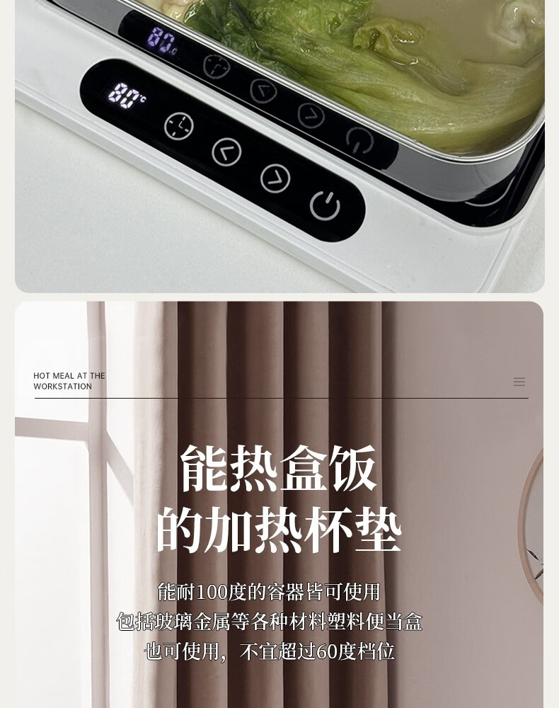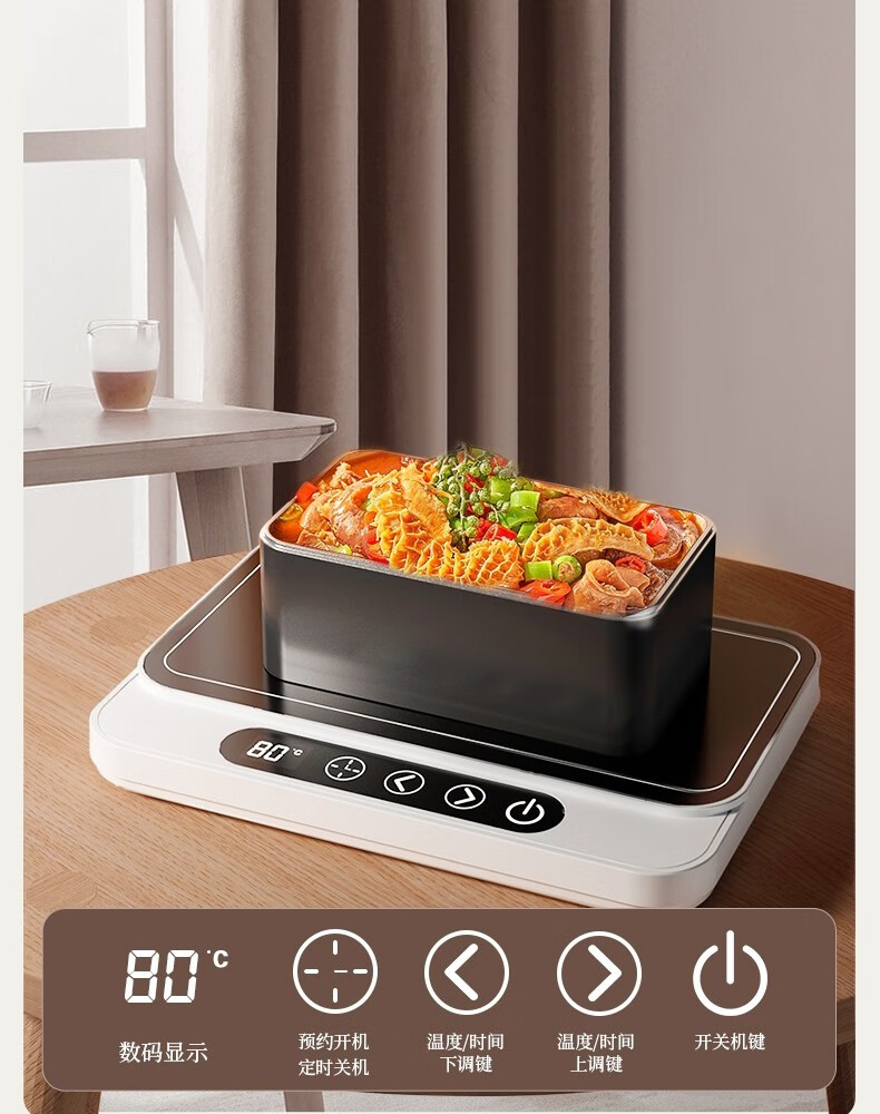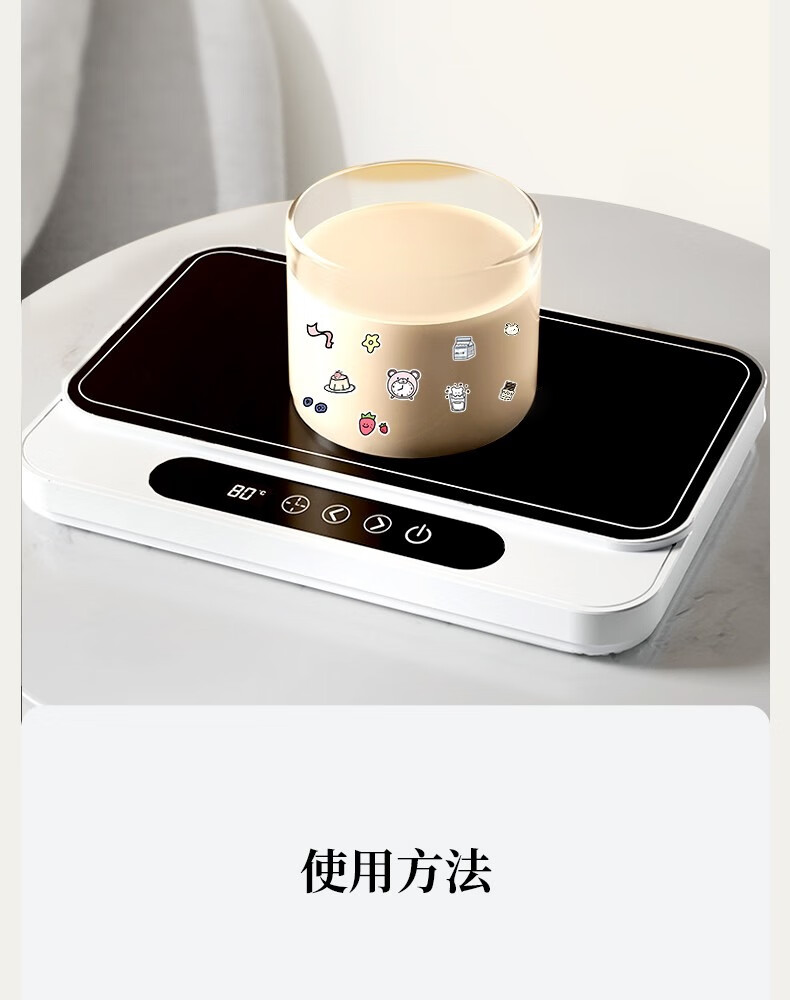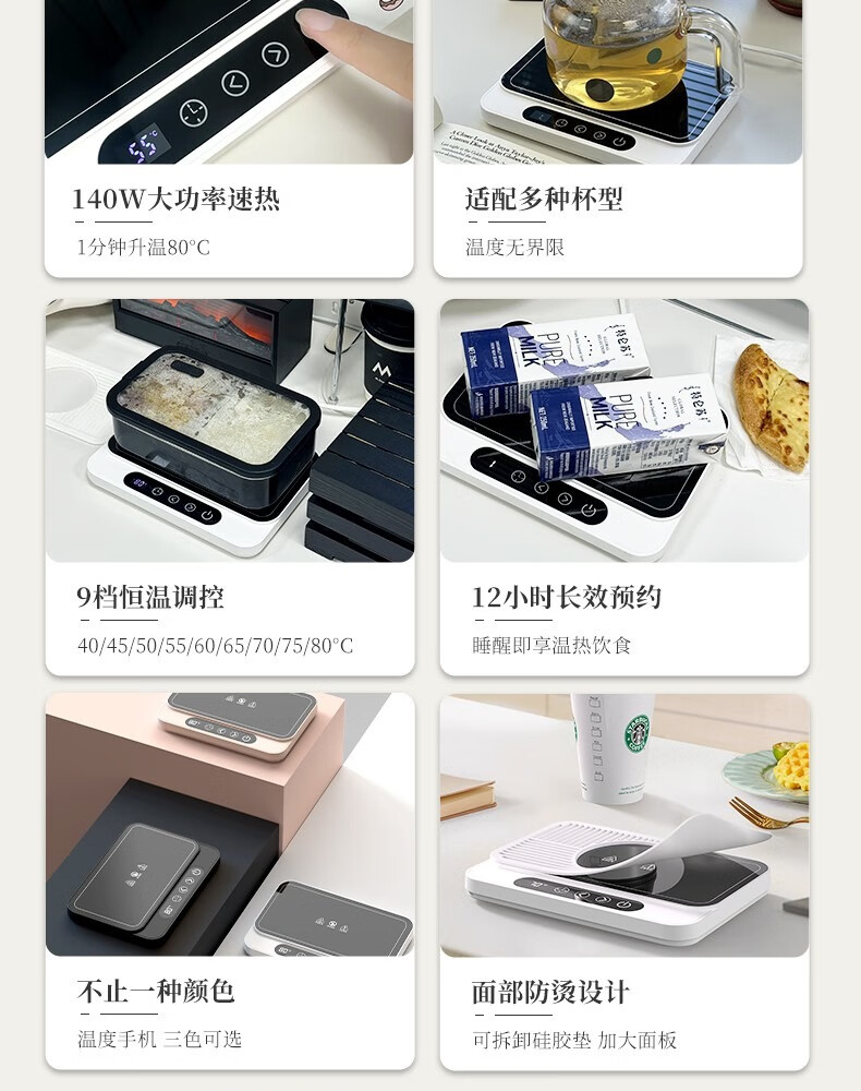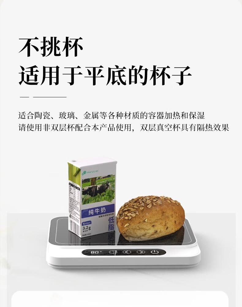 普芝大面板加热杯垫恒温55度杯垫可调温宿舍家用上班族热牛奶神器加热饭盒养生暖杯小型暖菜热饭神器 BD33白色【9档调温+预约开关机】1L