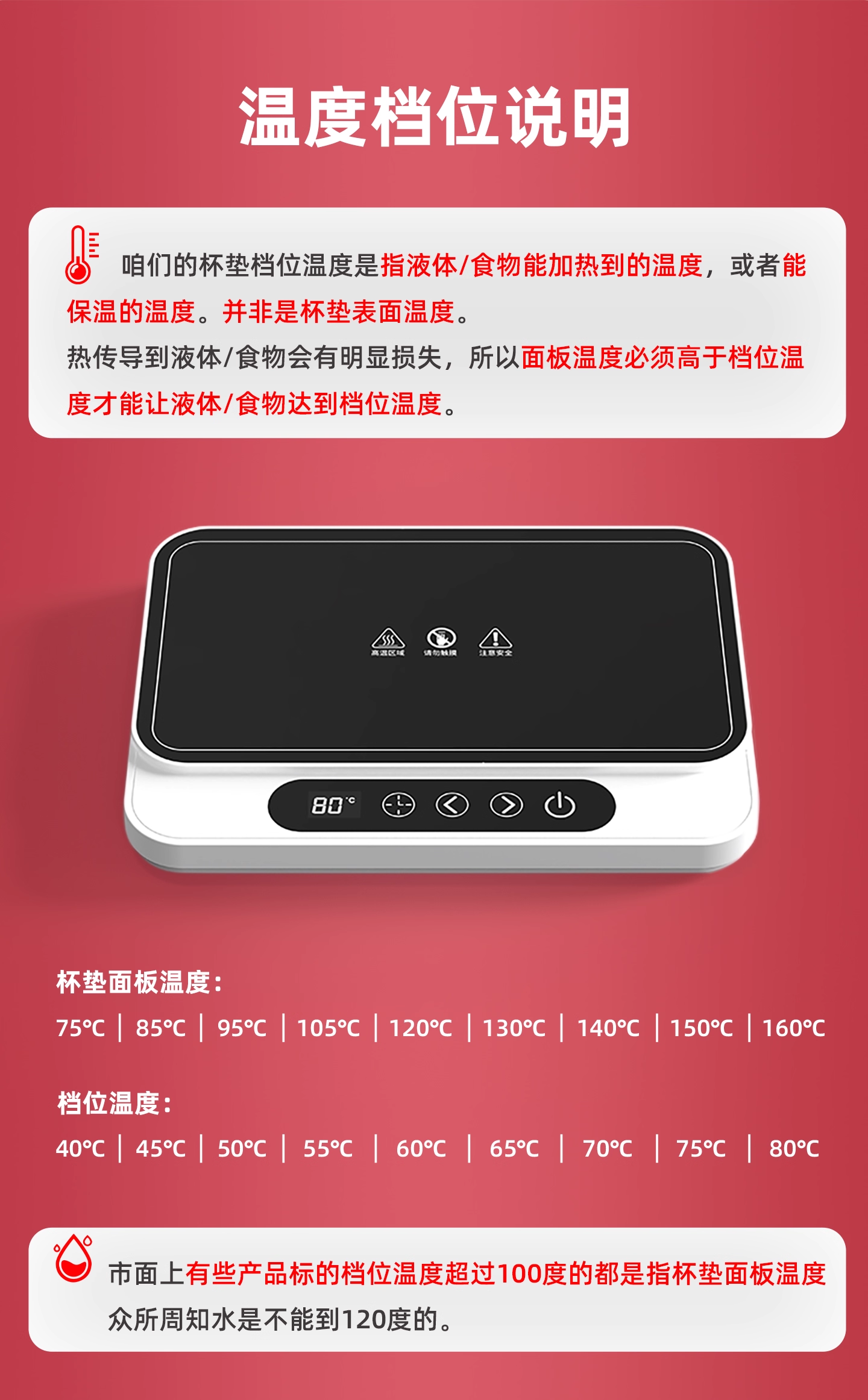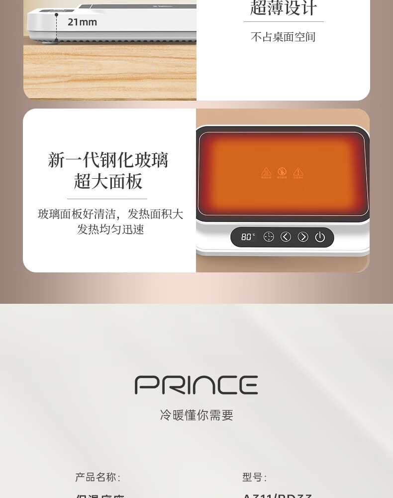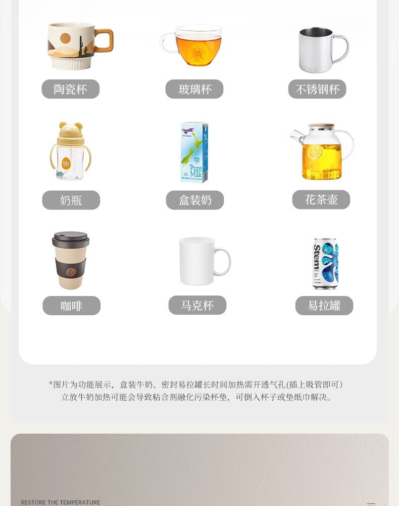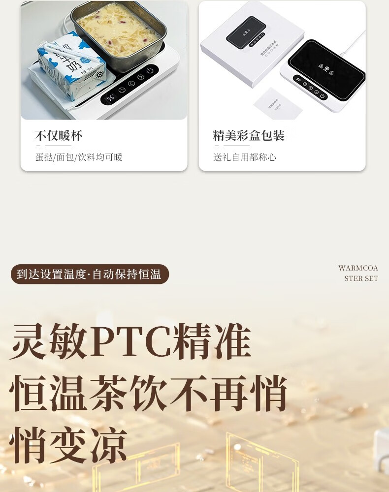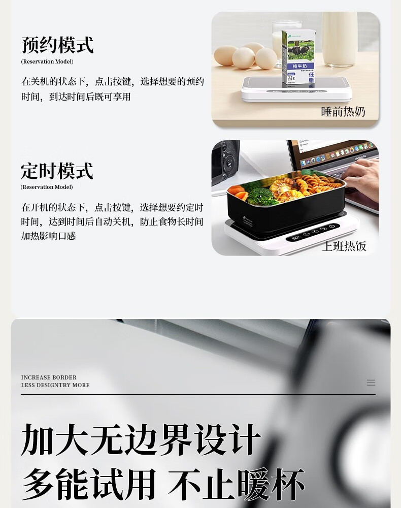 普芝大面板加热杯垫恒温55度杯垫可调温宿舍家用上班族热牛奶神器加热饭盒养生暖杯小型暖菜热饭神器 BD33白色【9档调温+预约开关机】1L