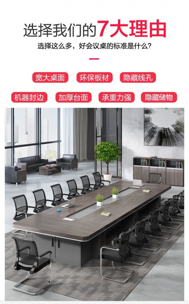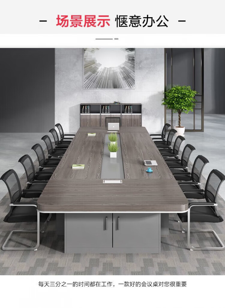 New office conference table long table modern simple conference room table and chair combination long table negotiation employee training table 2.4*1.2 meters home installation (multiple colors available)