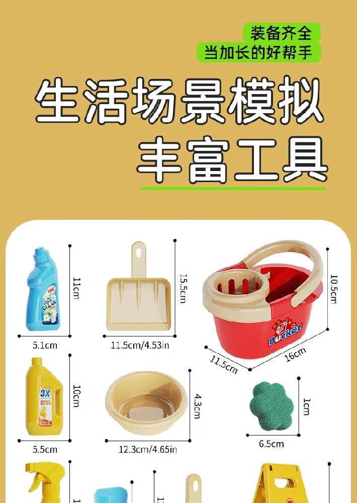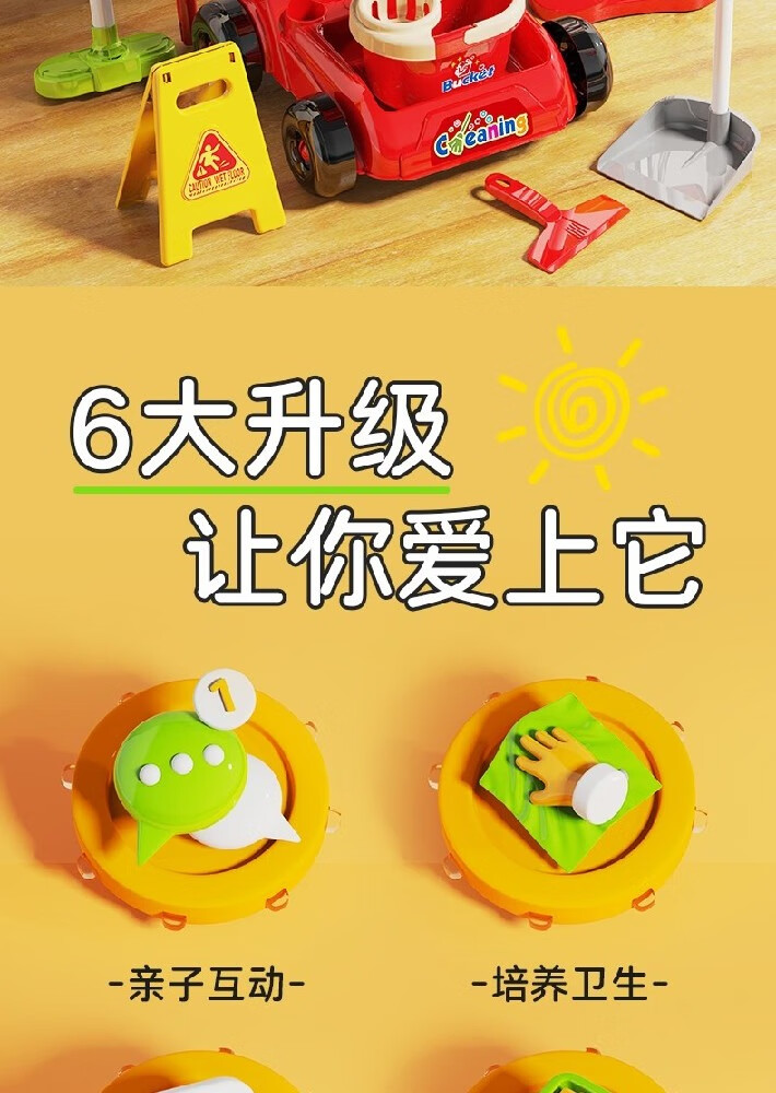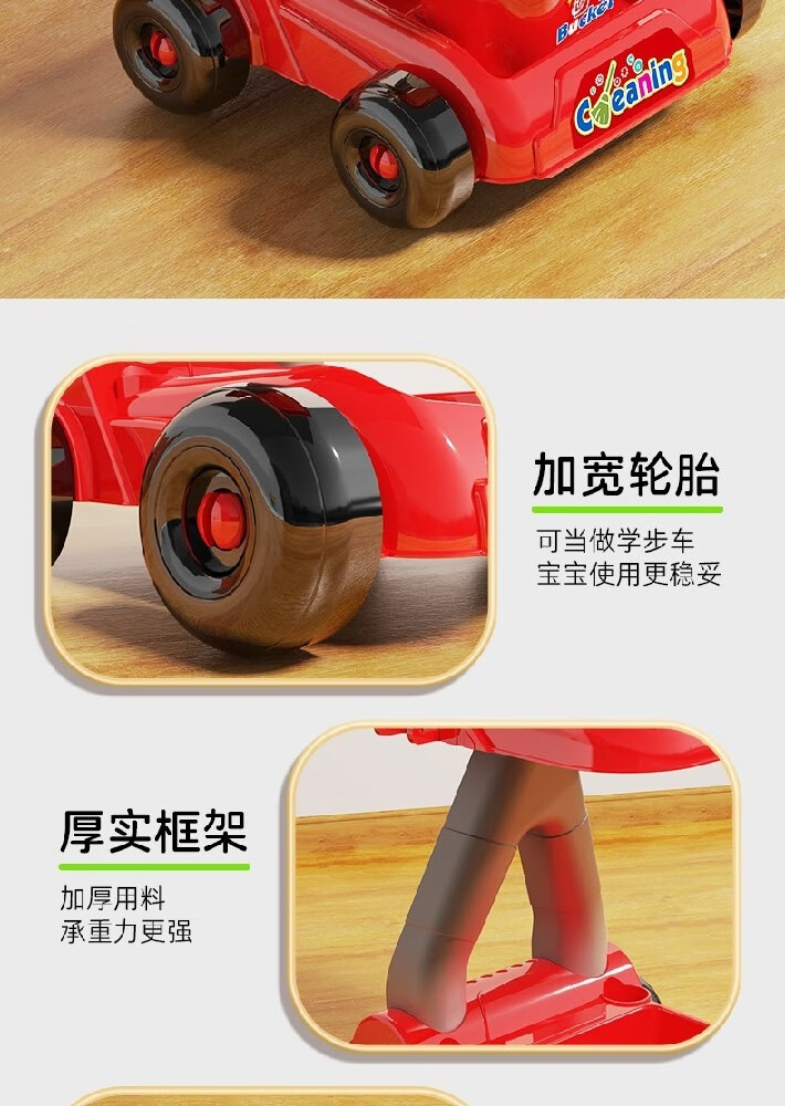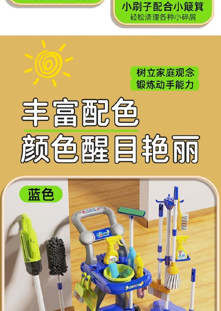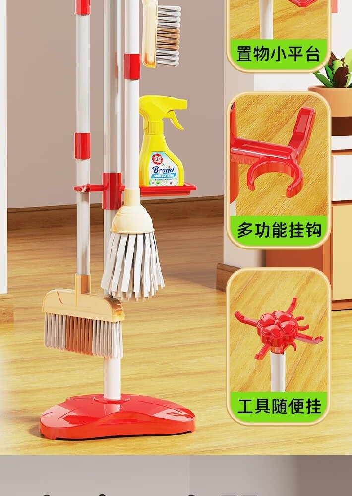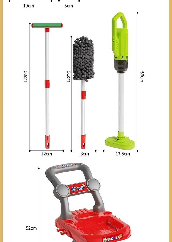 儿童过家家早教拖把扫把簸箕套装宝宝家用小拖布迷你扫帚扫地工具 清洁推车19件+电动吸尘器 礼盒红 六一儿童节礼物