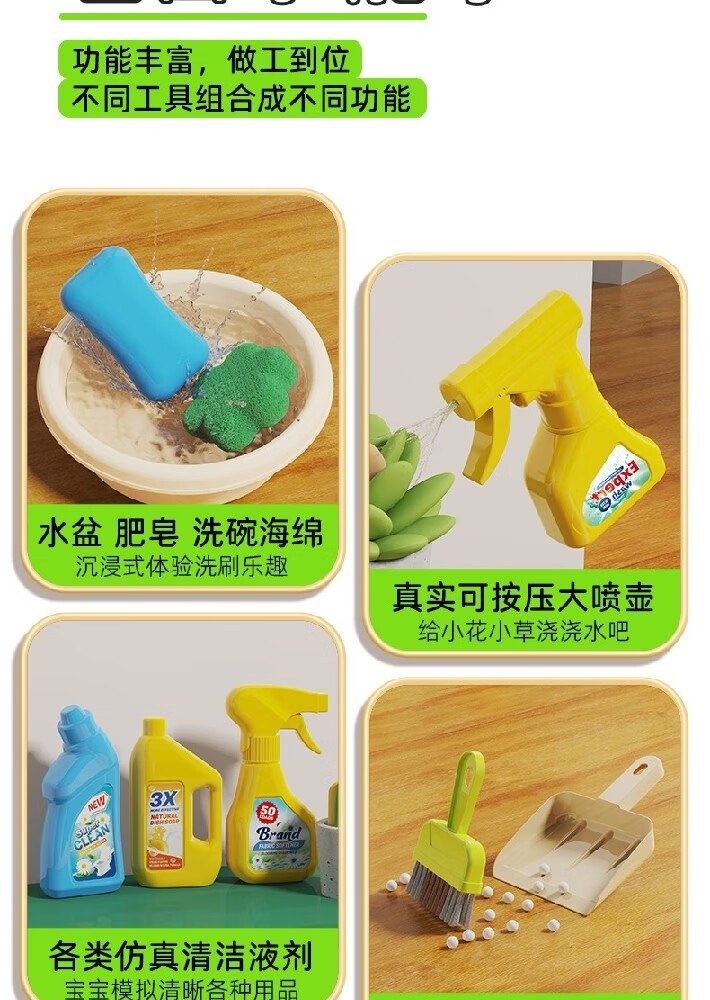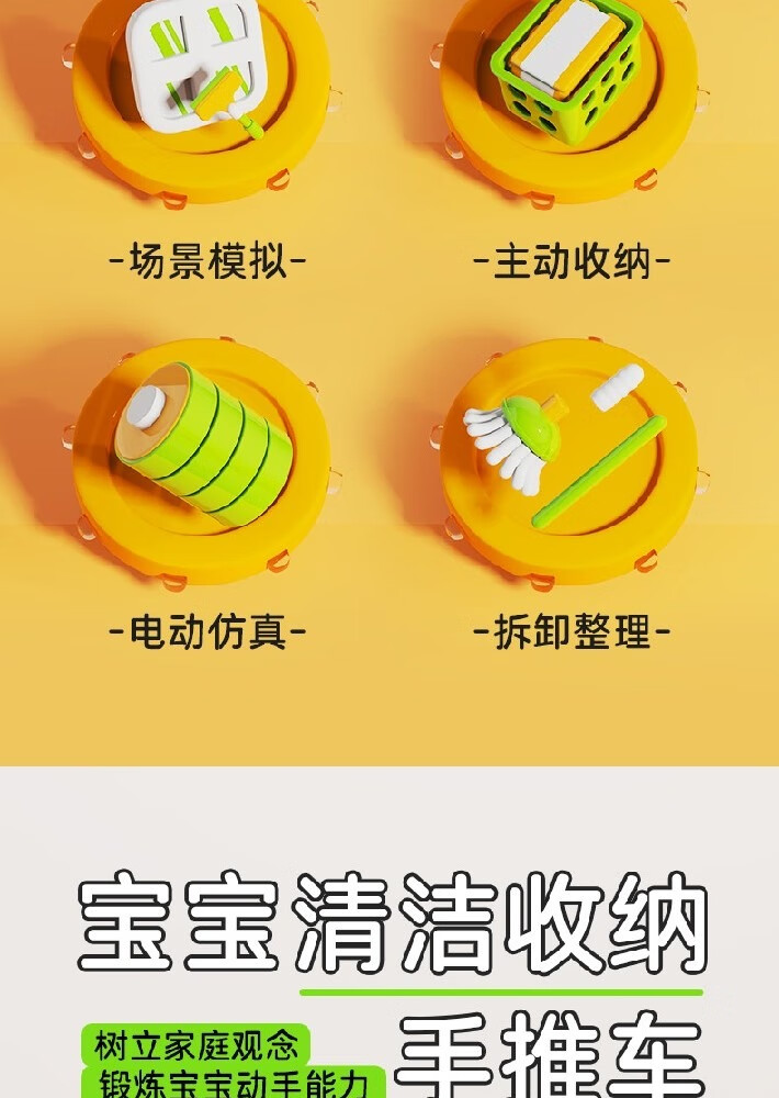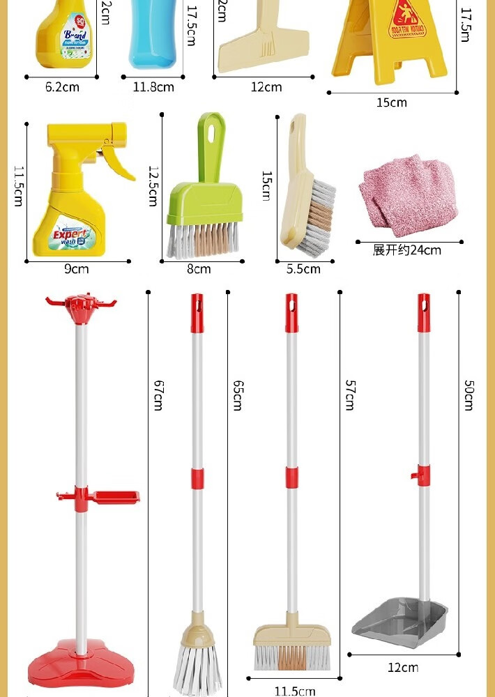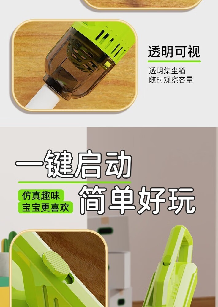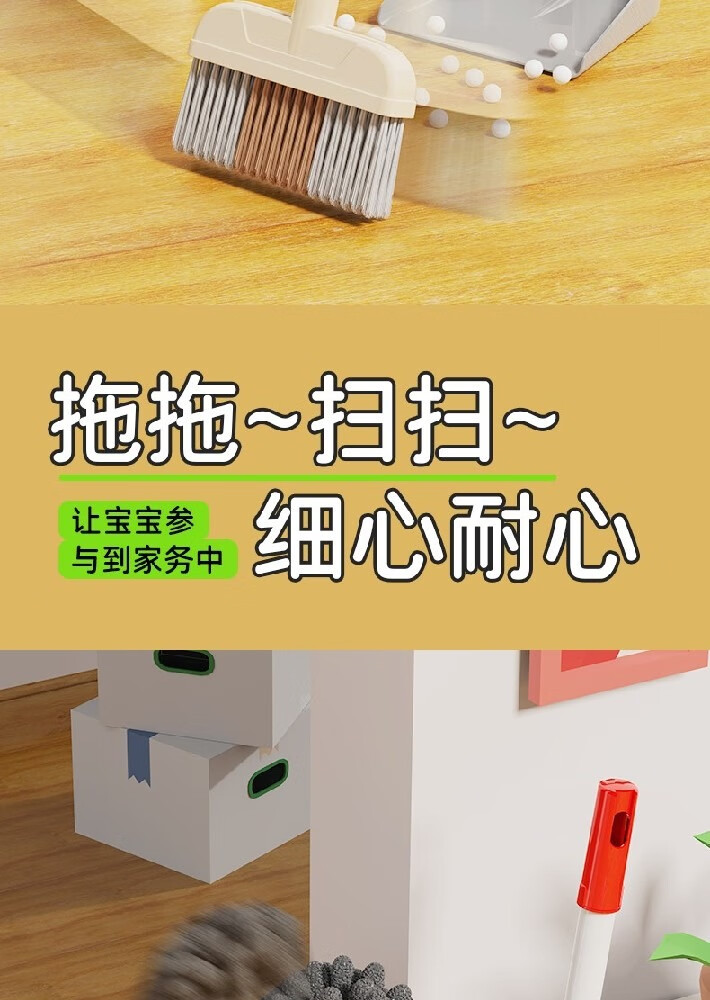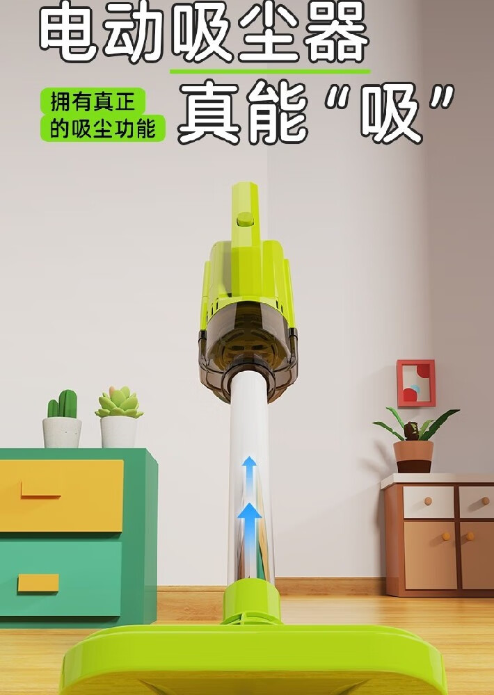 儿童过家家早教拖把扫把簸箕套装宝宝家用小拖布迷你扫帚扫地工具 清洁推车19件+电动吸尘器 礼盒红 六一儿童节礼物