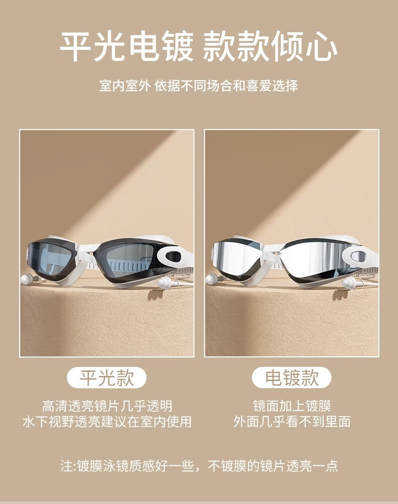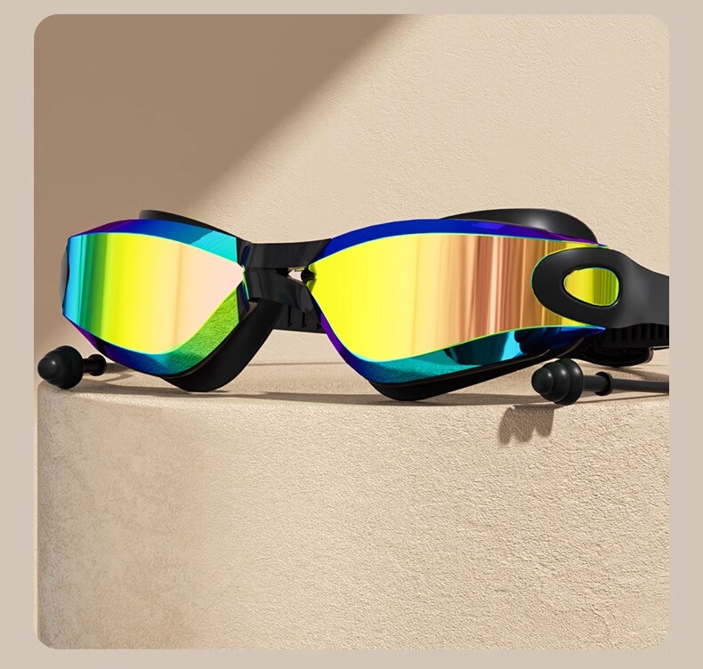 DEATKN德国泳镜高清防水防雾男士成人潜水游泳眼镜泳帽套装潜水装备 曜石黑-【升级电镀款】 平光