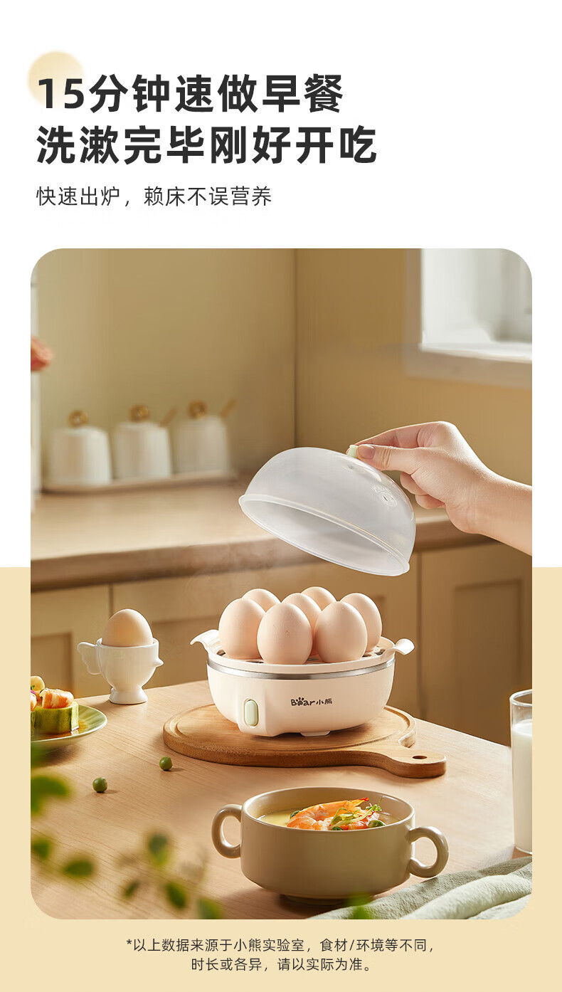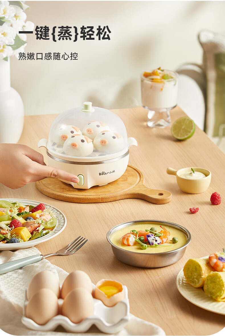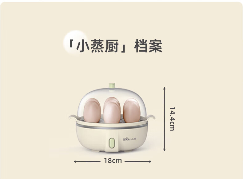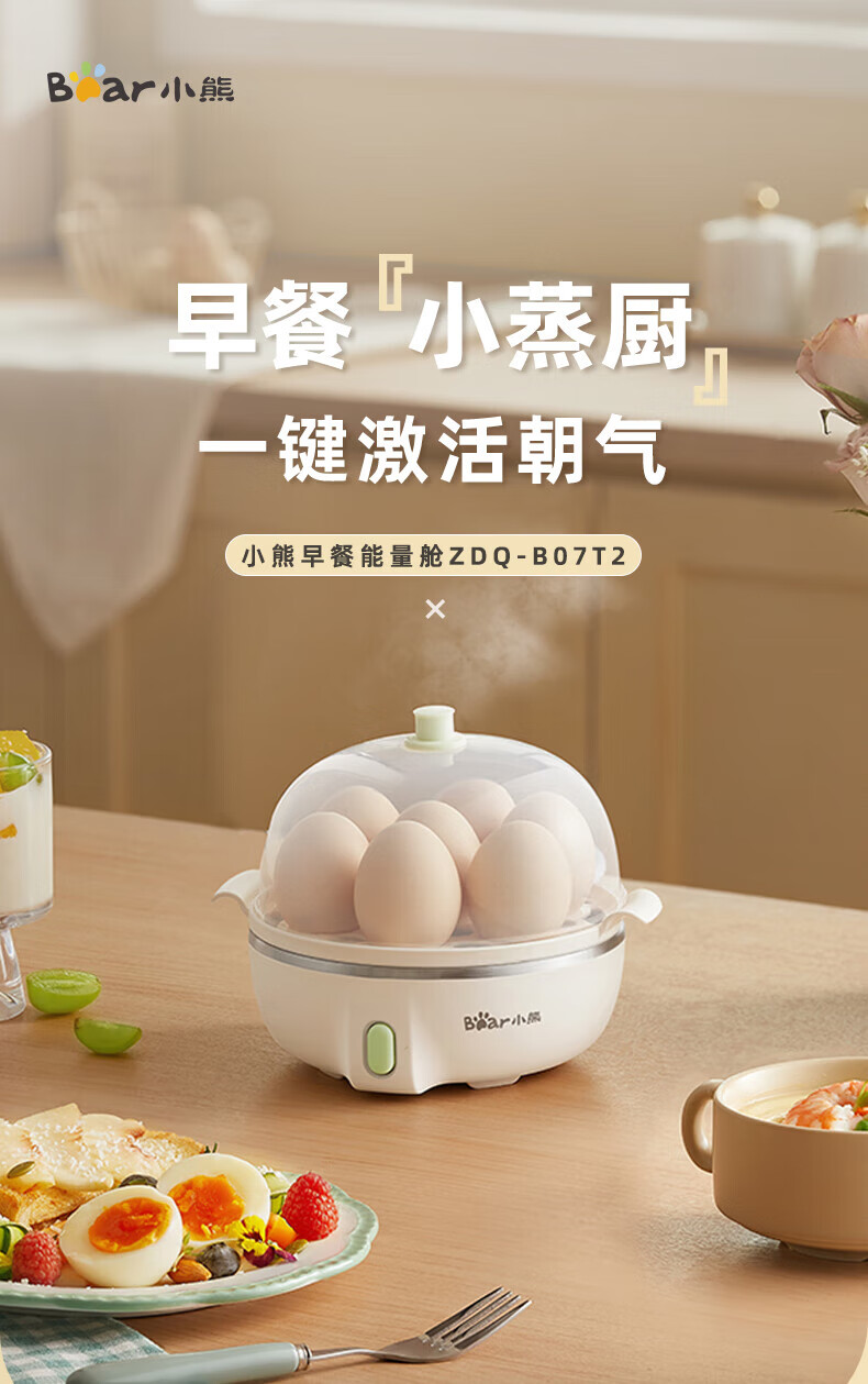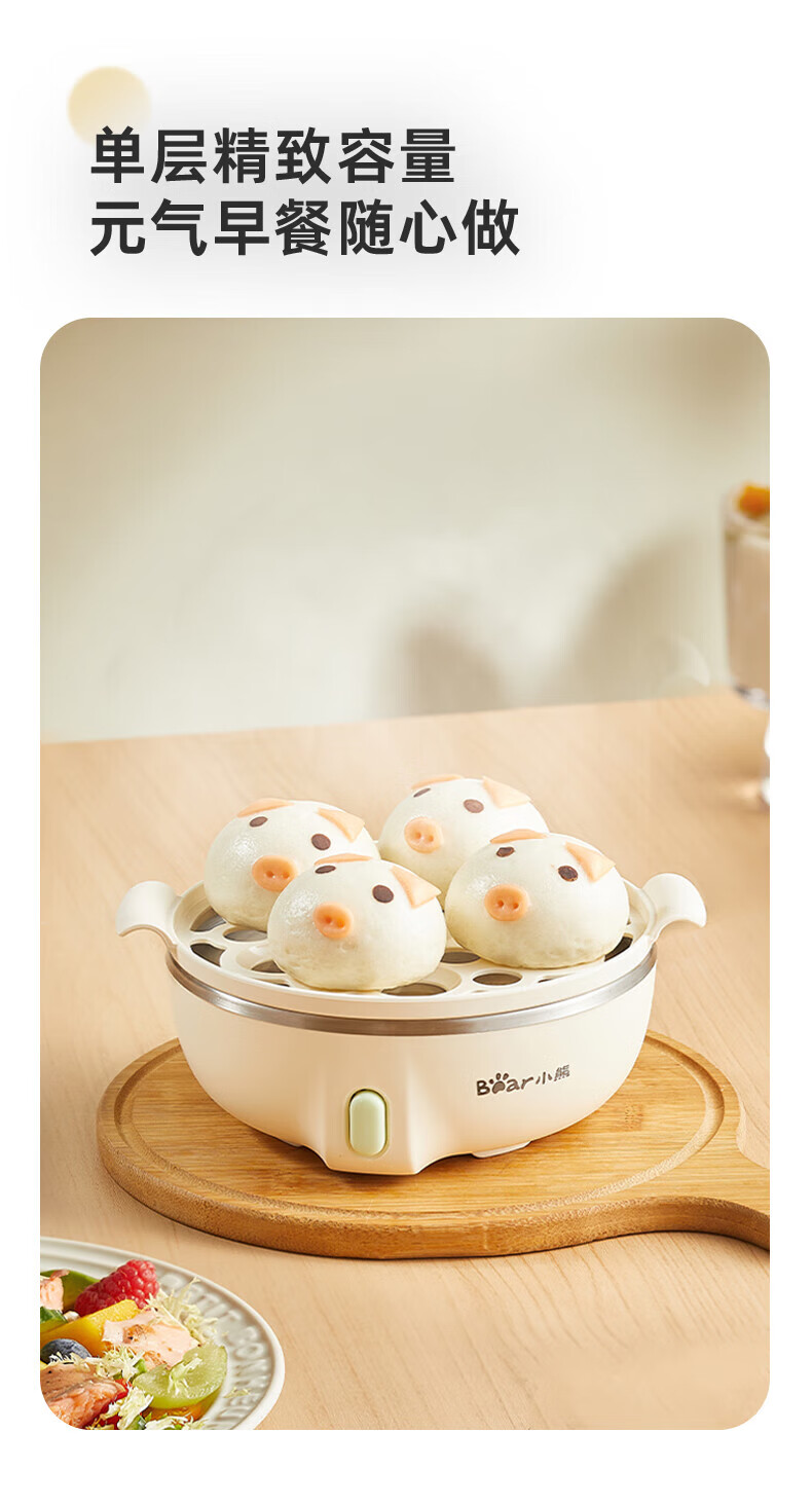 Bear egg cooker, household multifunctional mini breakfast appliance, egg custard steamer, egg steamer, egg cooker, steamed egg pot, single layer, with bowl ZDQ-B07T2