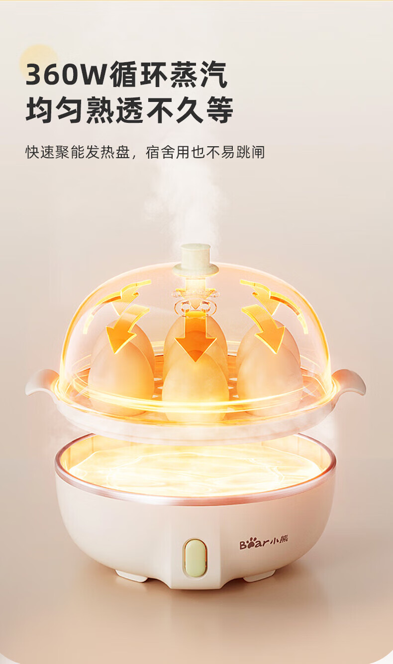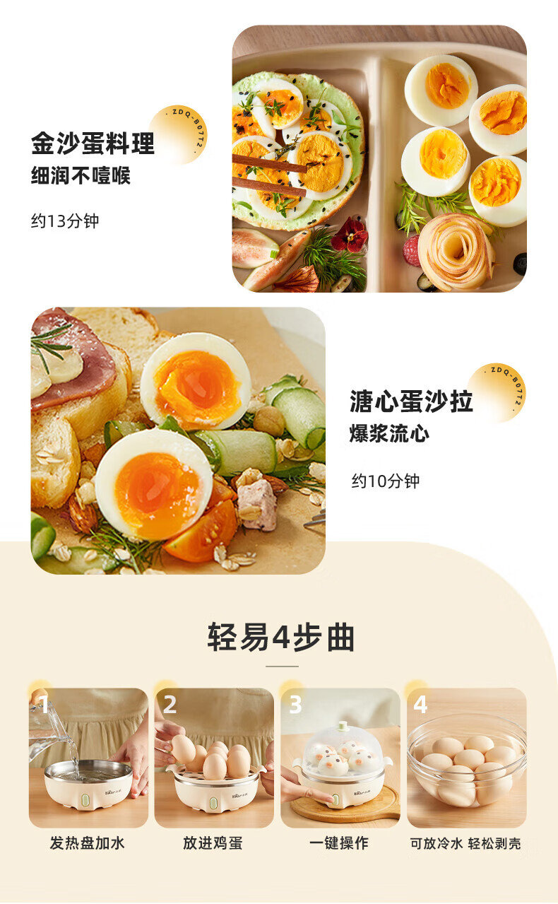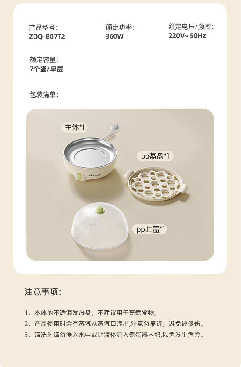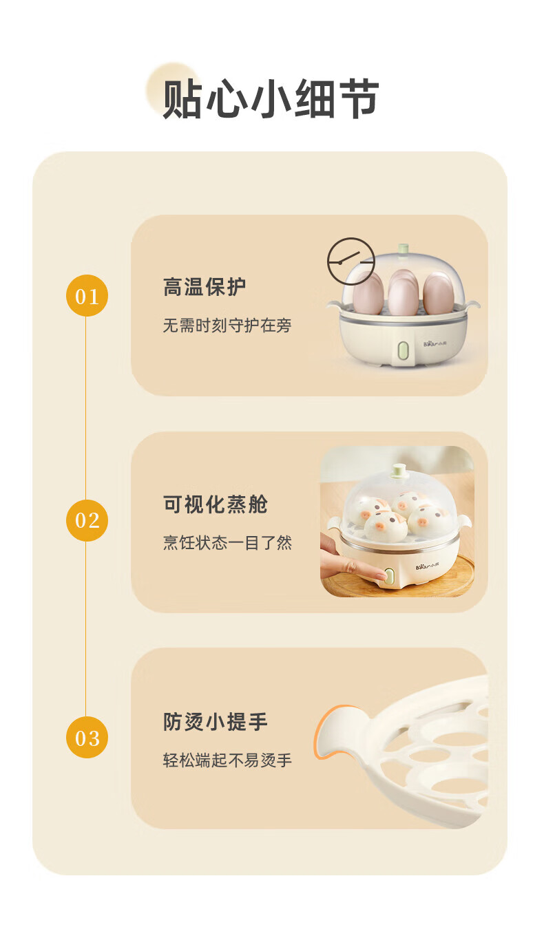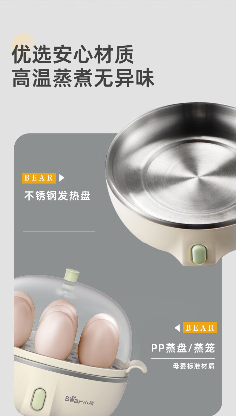 Bear egg cooker, household multifunctional mini breakfast appliance, egg custard steamer, egg steamer, egg cooker, steamed egg pot, single layer, with bowl ZDQ-B07T2