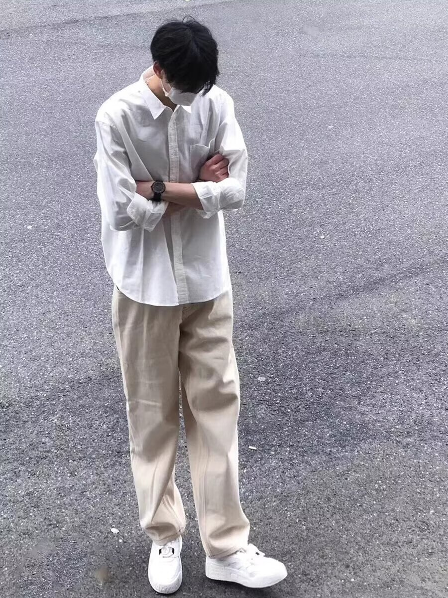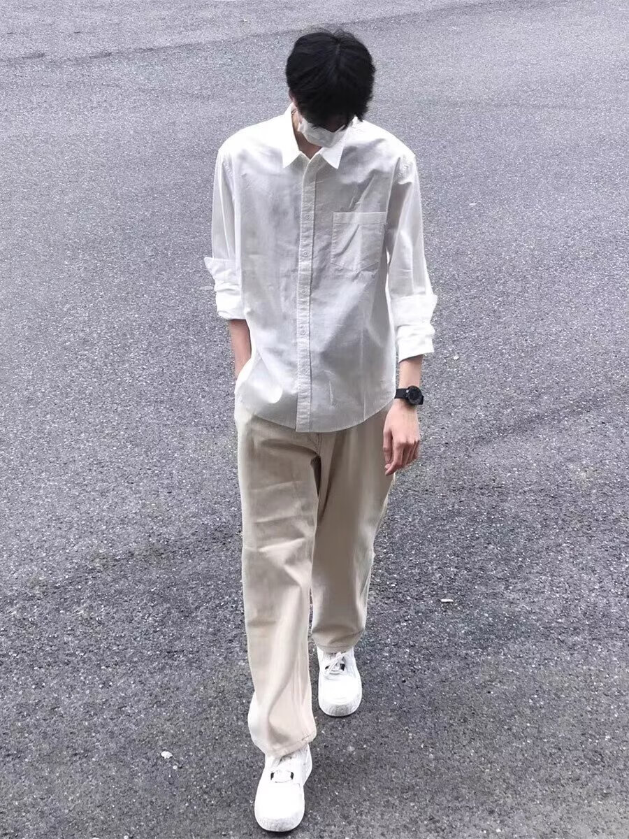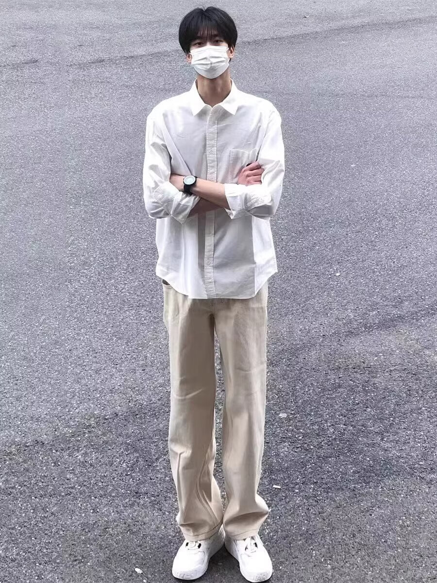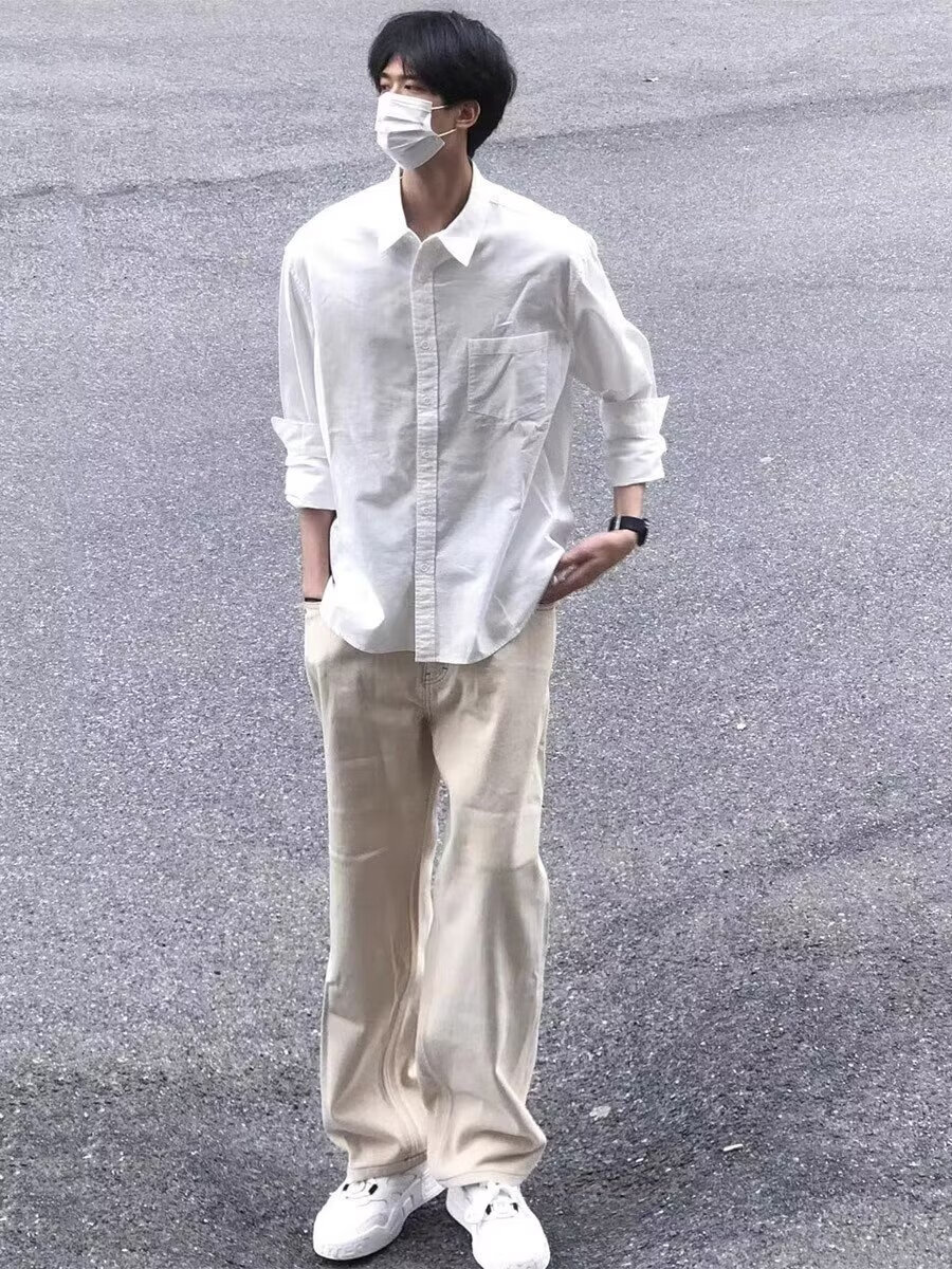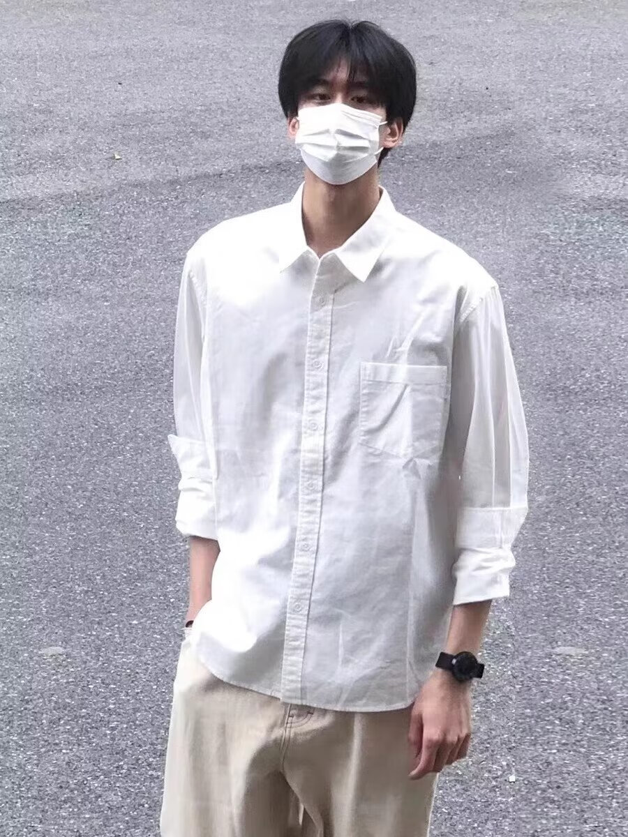 Мужская рубашка с длинными рукавами Digada на весну и осень, однотонная, свободная и универсальная, американская простая красивая повседневная рубашка-рубашка, низ топа ORH-C12, белый 2XL (размер слишком мал, рекомендуется увеличить его на один размер)