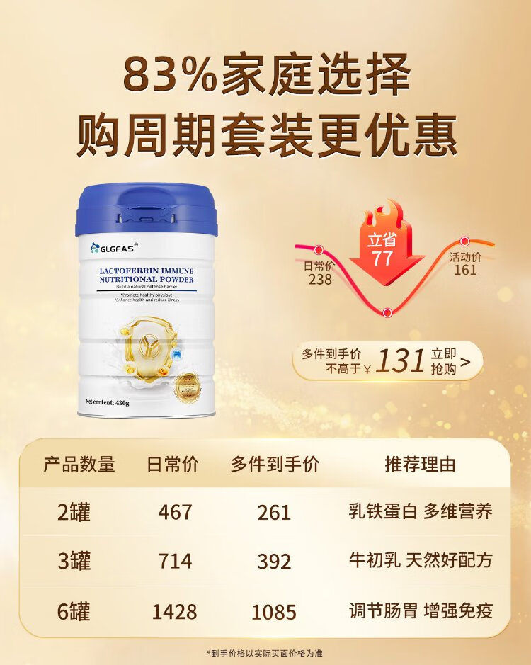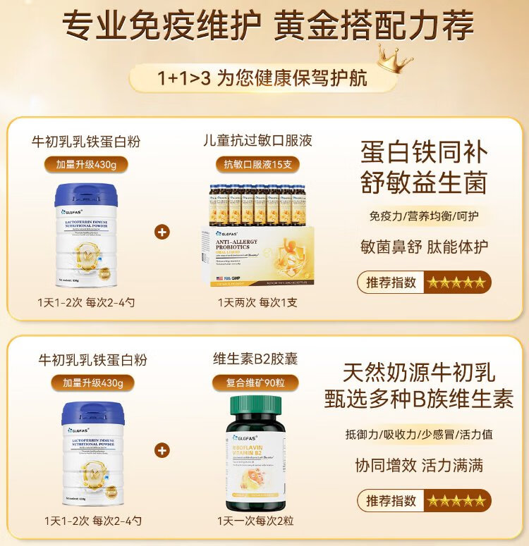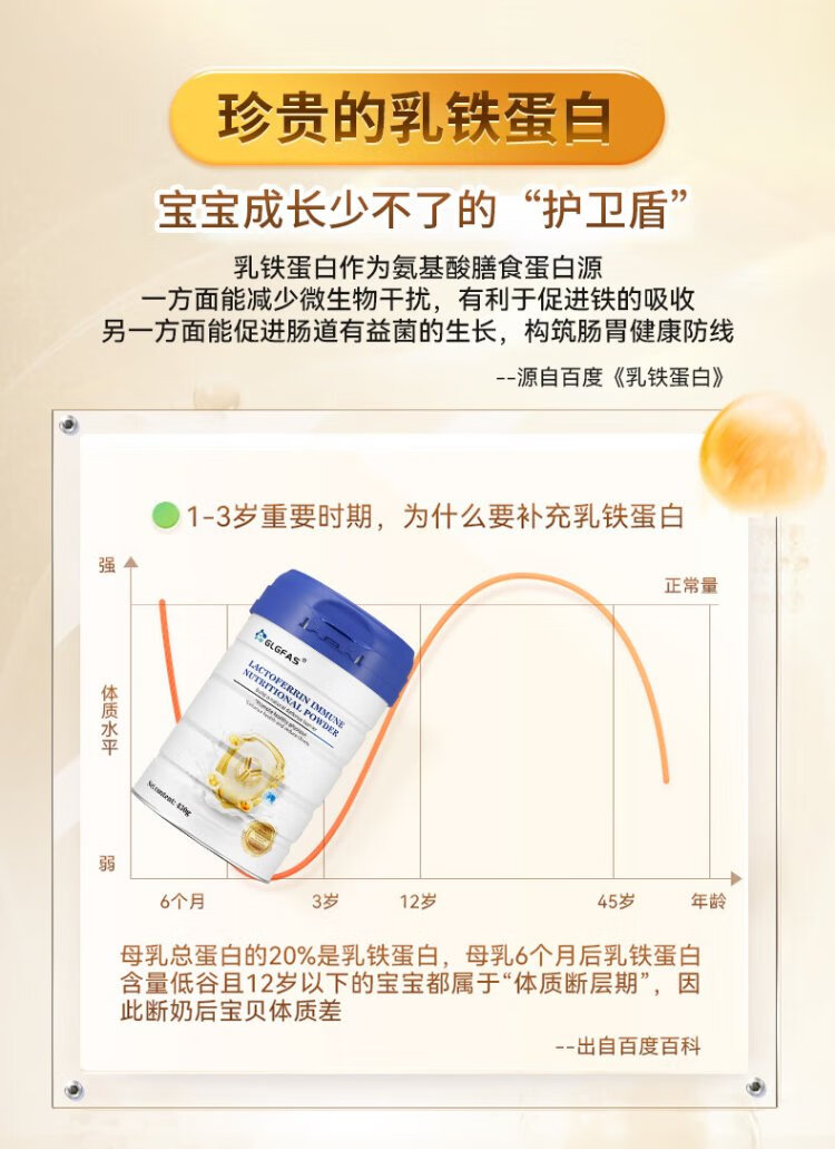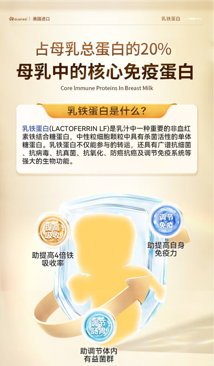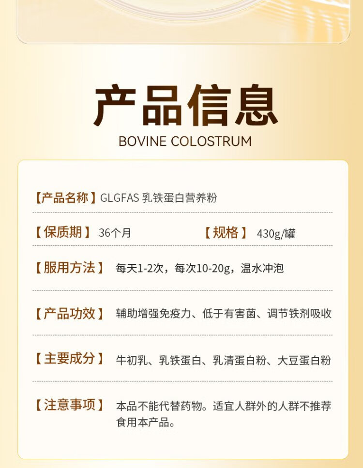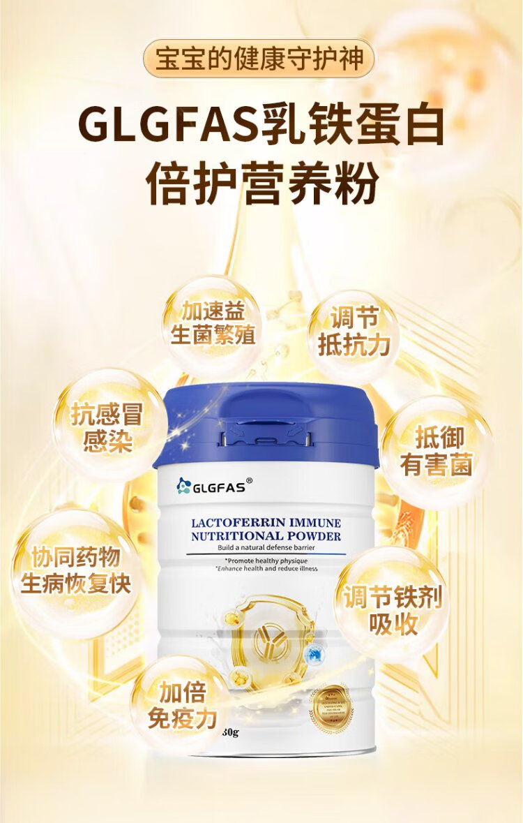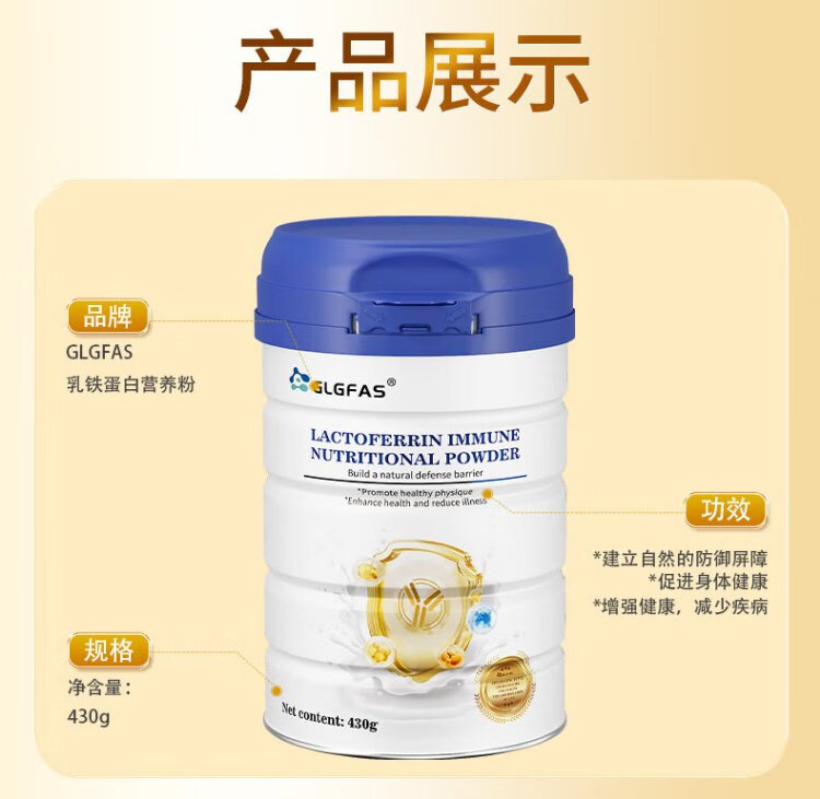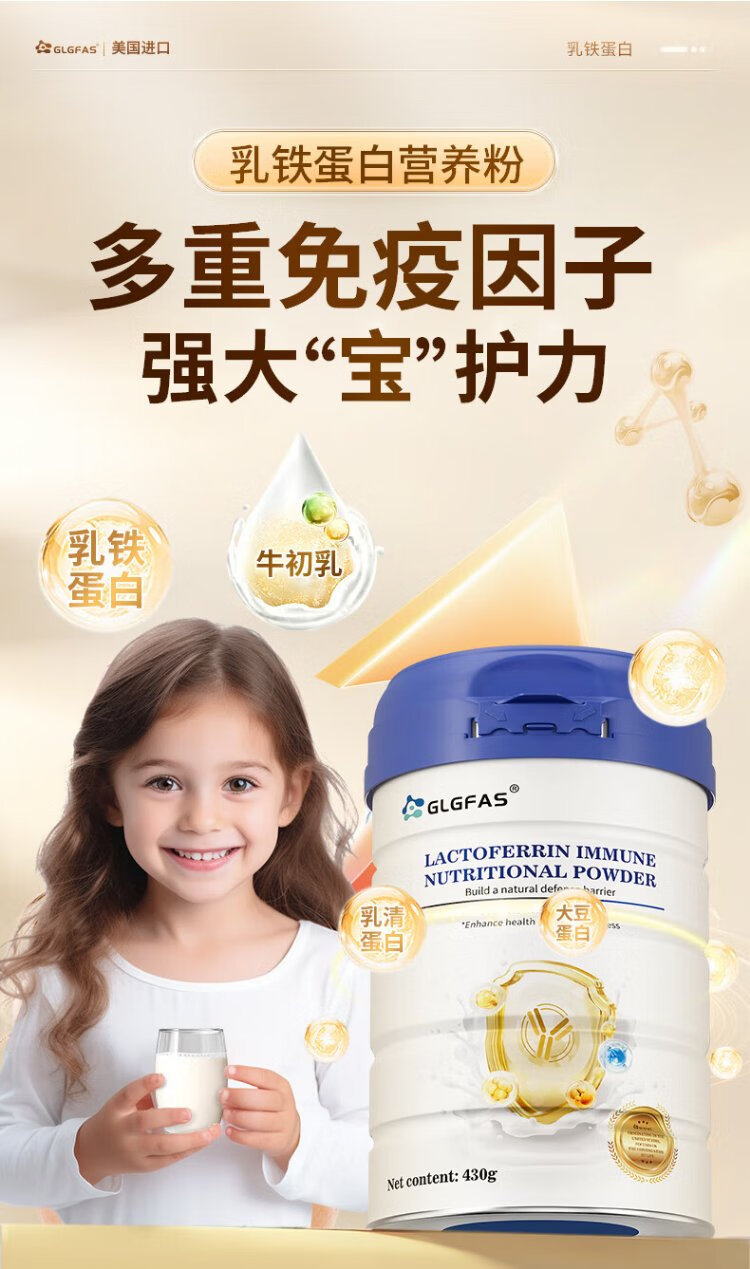 GLGFAS Bovine Colostrum Immunity Lactoferrin Whey Protein Children Adults Elderly Enhanced Immunity Resistance Medical Grade Nutrients Lactoferrin Immune Gold Shield Lactoferrin Powder 430g*1 Can