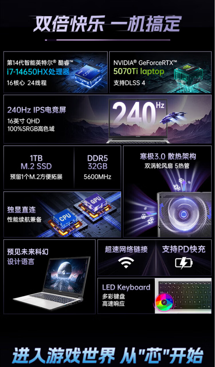 Colorful Hidden Star p16pro 25 flagship computer notebook 16-inch 5070Ti laptop high-performance gaming notebook student design thin and light notebook P16 Pro i7-14650HX/5070Ti/32G+1T 16-inch 240Hz high brush