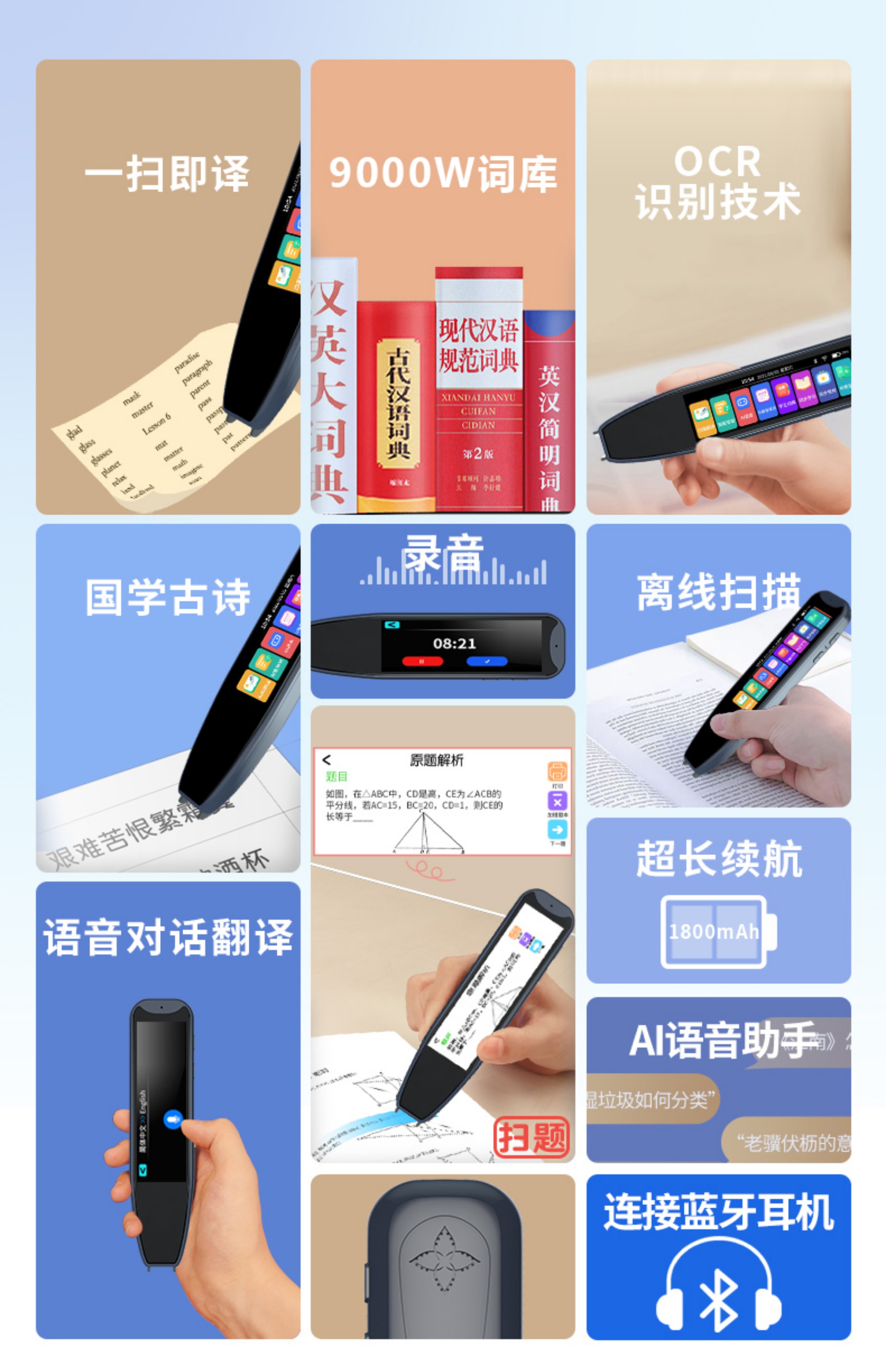 学王状元郎【热销爆款】2025新款大屏全科学习点读笔英语词典笔学习机翻译笔早教机点读机复读机家教机翻译机 学霸款/黑色32G+全科同步学+扫题解析+视频讲解