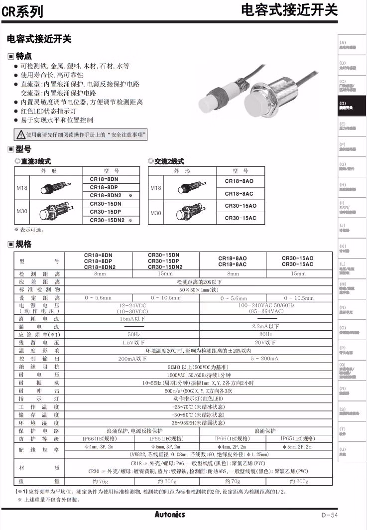 Autonics original capacitive proximity switch CR18-8DN/8DP2/CR30-15DN/15AO/AC CR30-15DN