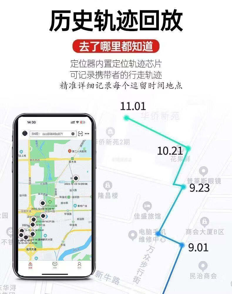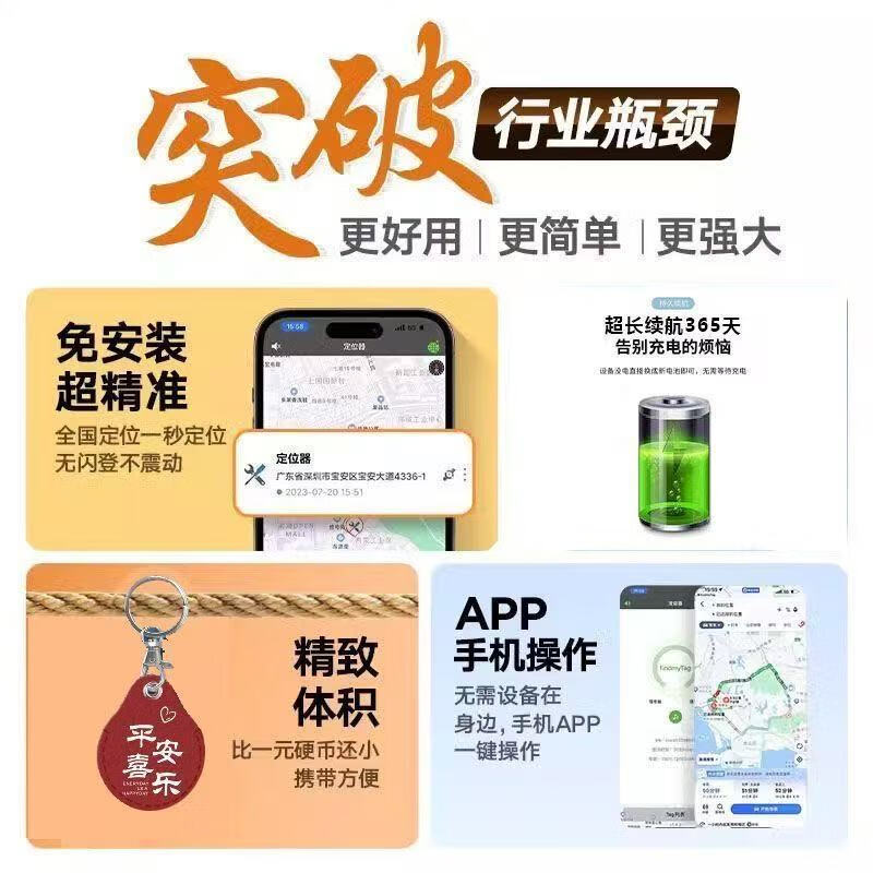 HKMW华为机适用定位器gps挂件吊坠钥匙扣儿童老人防走丢黑科技追跟踪订位器 安卓IOS华为通用【财源滚滚】定位丨轨迹查询